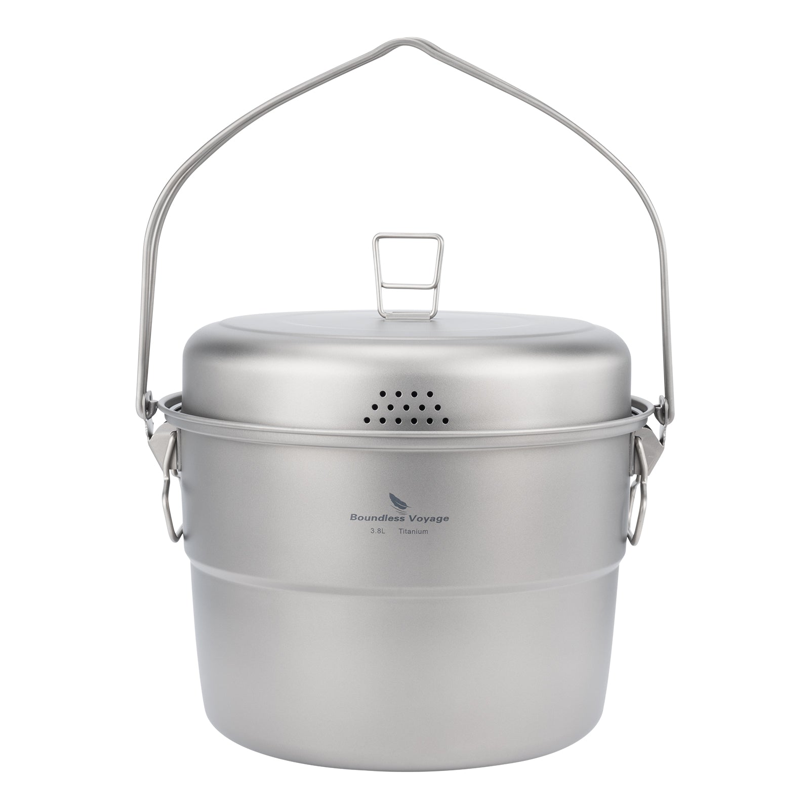 Boundless Voyage 3.8L Titanium Hanging Pot with Steamer Rack – Ultralight Campfire Cooking Stockpot Set, Large Capacity Outdoor Cookware for Camping, Hiking & Group Cooking