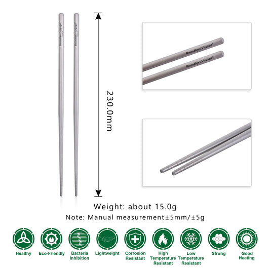 Boundless Voyage Titanium Round Chopsticks 23cm – Ultralight Reusable Eco-Friendly Cutlery for Home, Camping & Travel