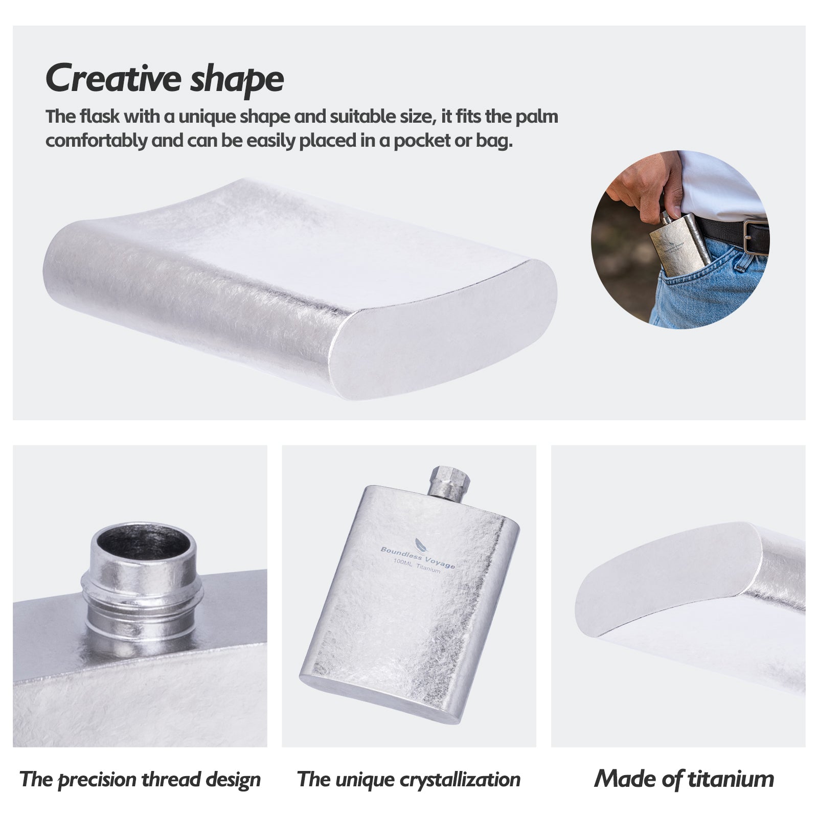 Boundless Voyage 100ml Titanium Flask – Ultralight Mini Ti Bottle for Whiskey, Wine, Water & Travel