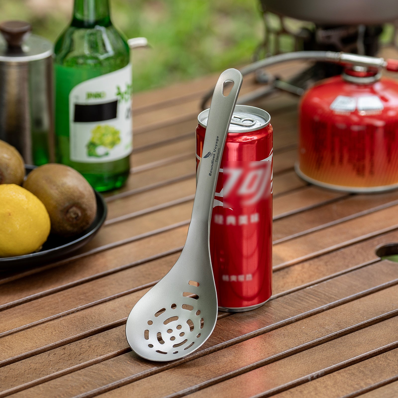 Boundless Voyage Pure titanium soup colander skimmer colander ultralight long handle portable tableware cooking fried food filter kitchen tools