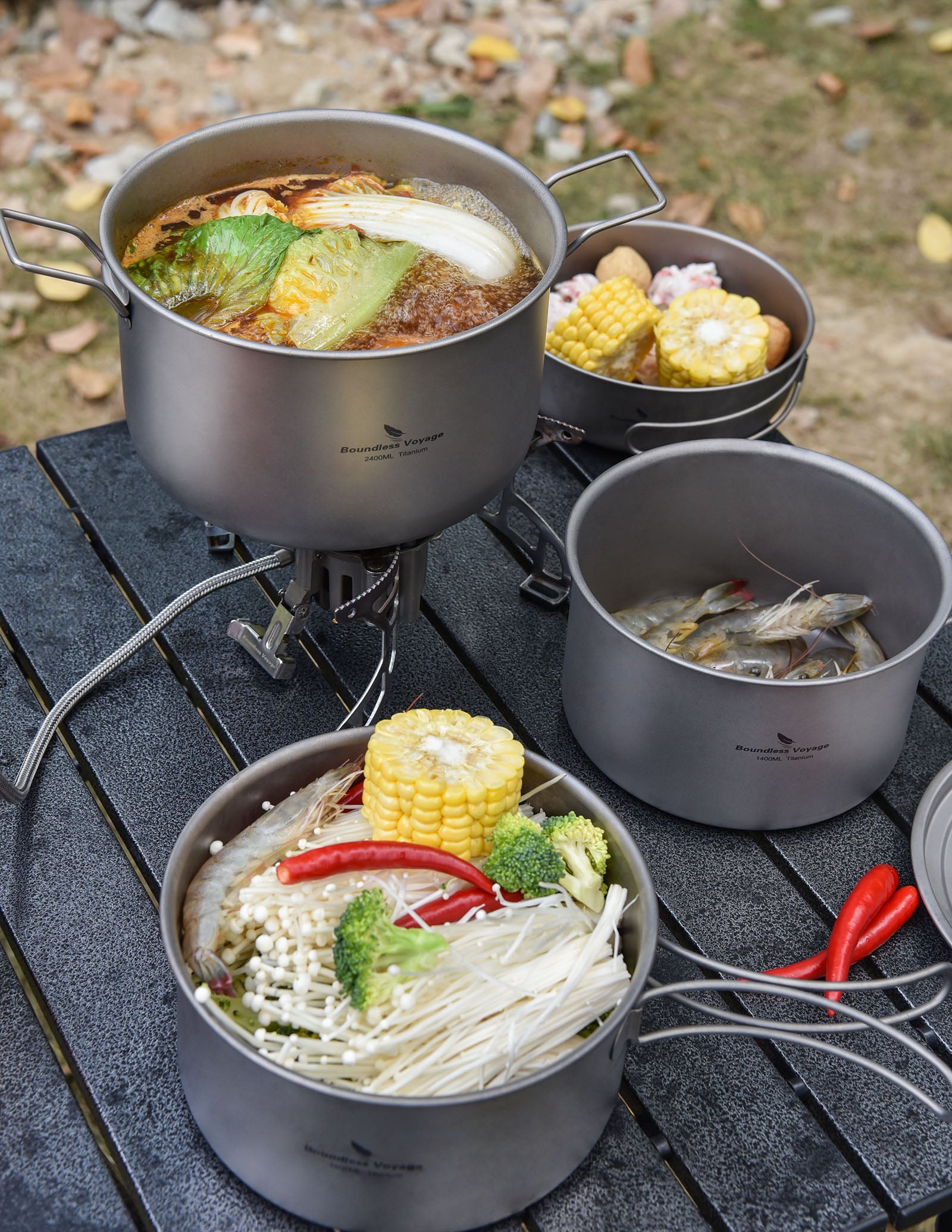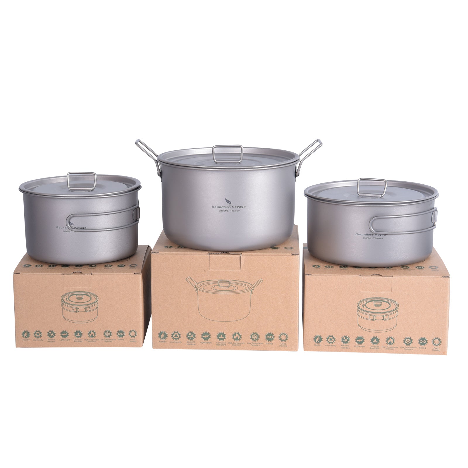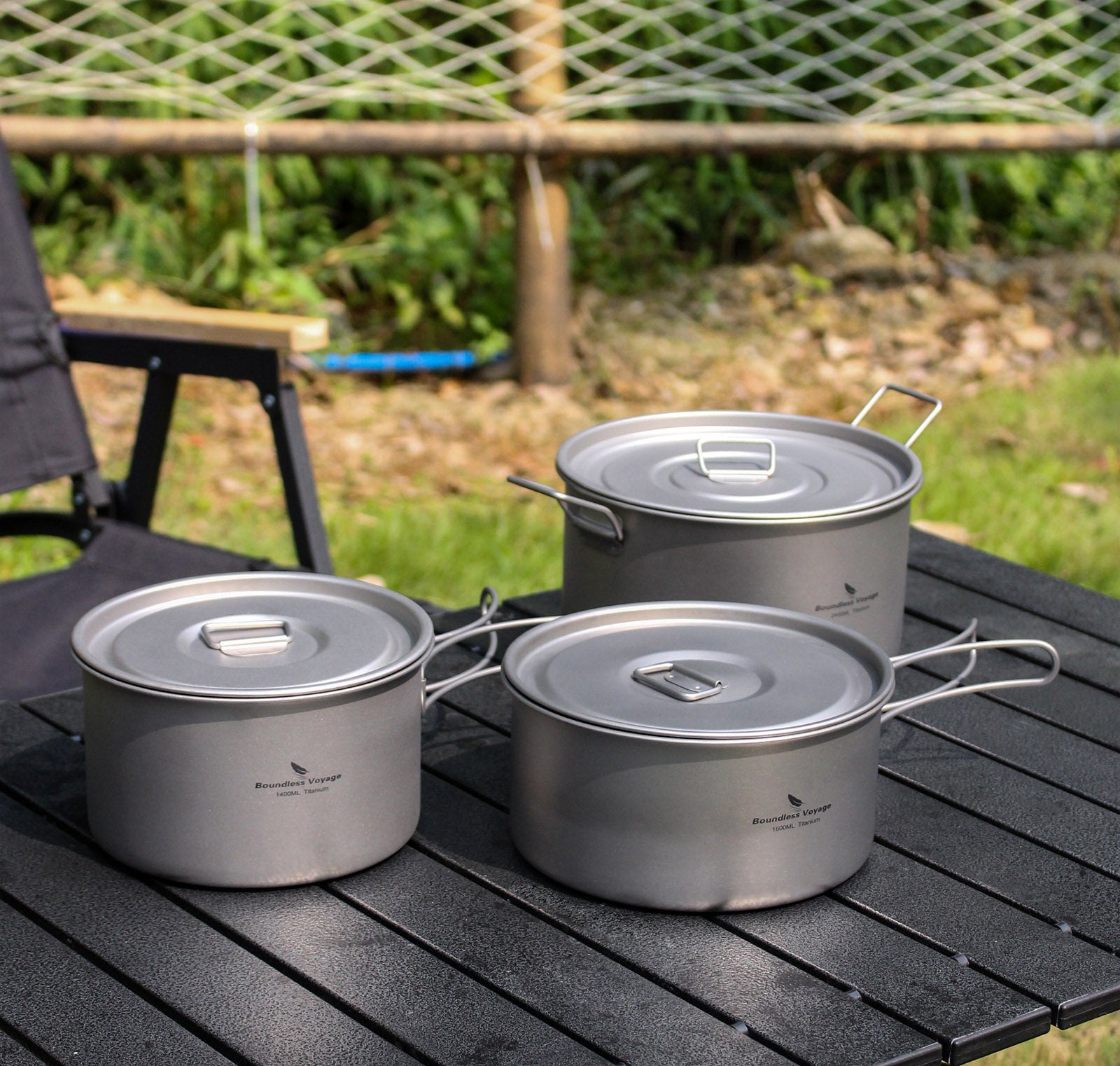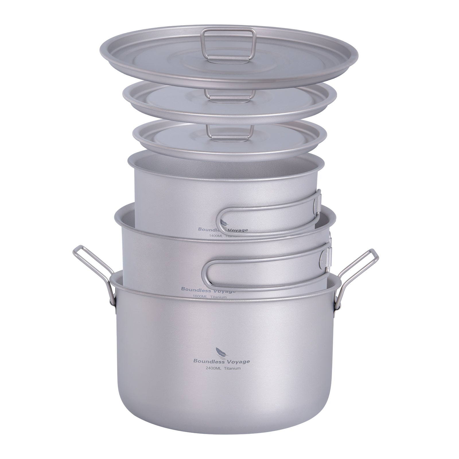 Boundless Voyage Titanium 3pcs Camping Cookware Mess Kit, Camping Cooking Set, Portable Nonstick Camp Pots Set 1.4L 1.6L 2.4L for Outdoor Camping, Picnic, Hiking, Backpacking