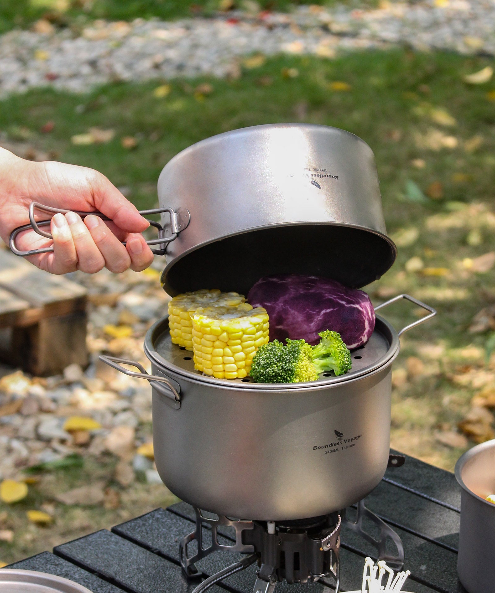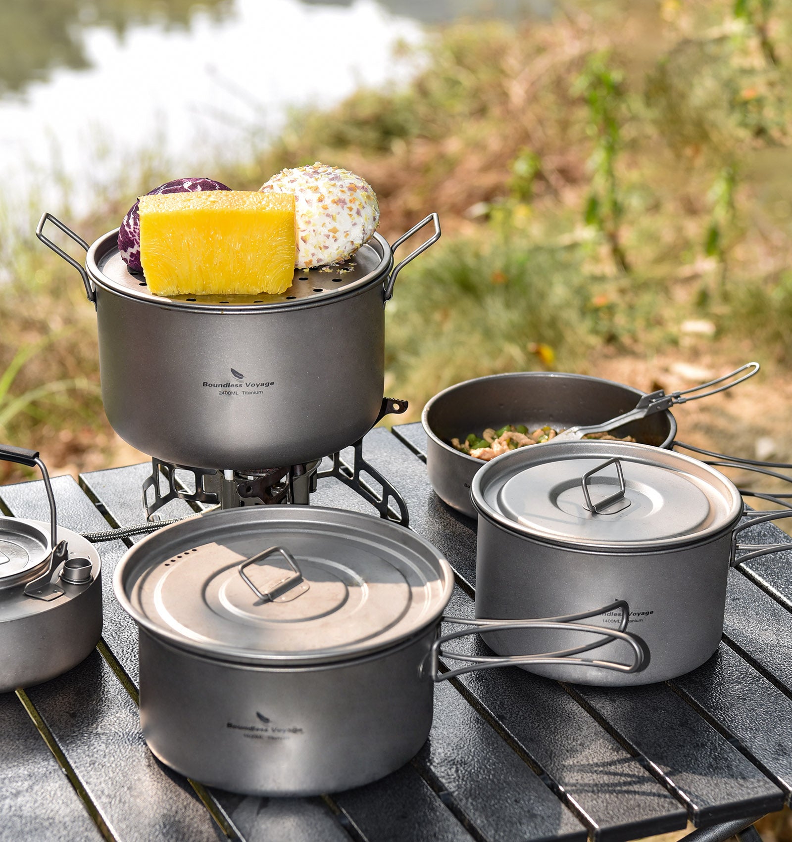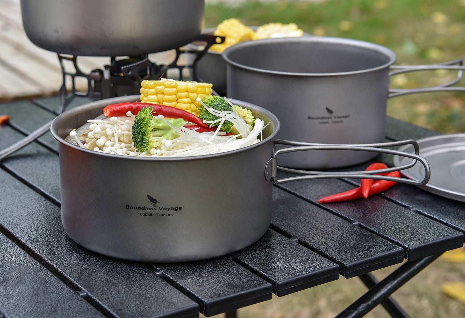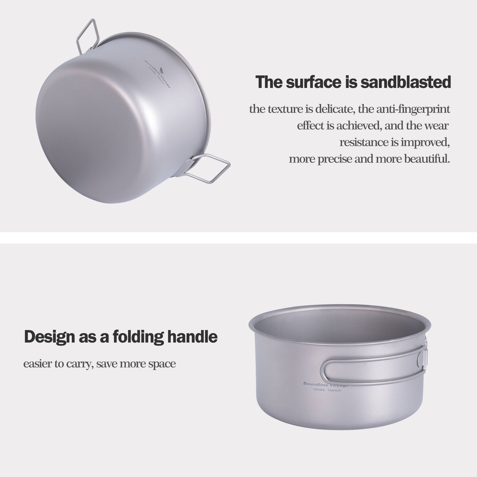 Boundless Voyage Titanium 3pcs Camping Cookware Mess Kit, Camping Cooking Set, Portable Nonstick Camp Pots Set 1.4L 1.6L 2.4L for Outdoor Camping, Picnic, Hiking, Backpacking