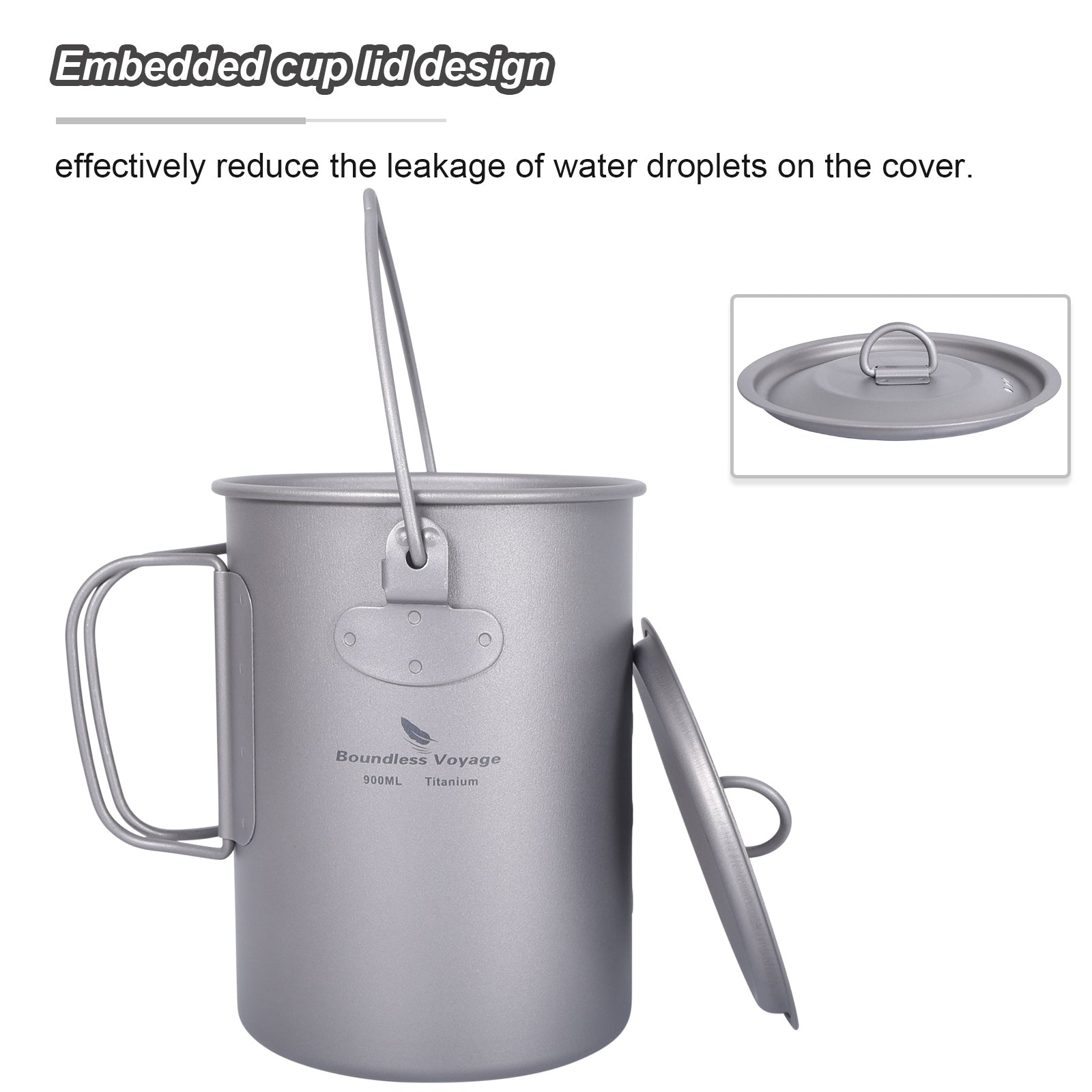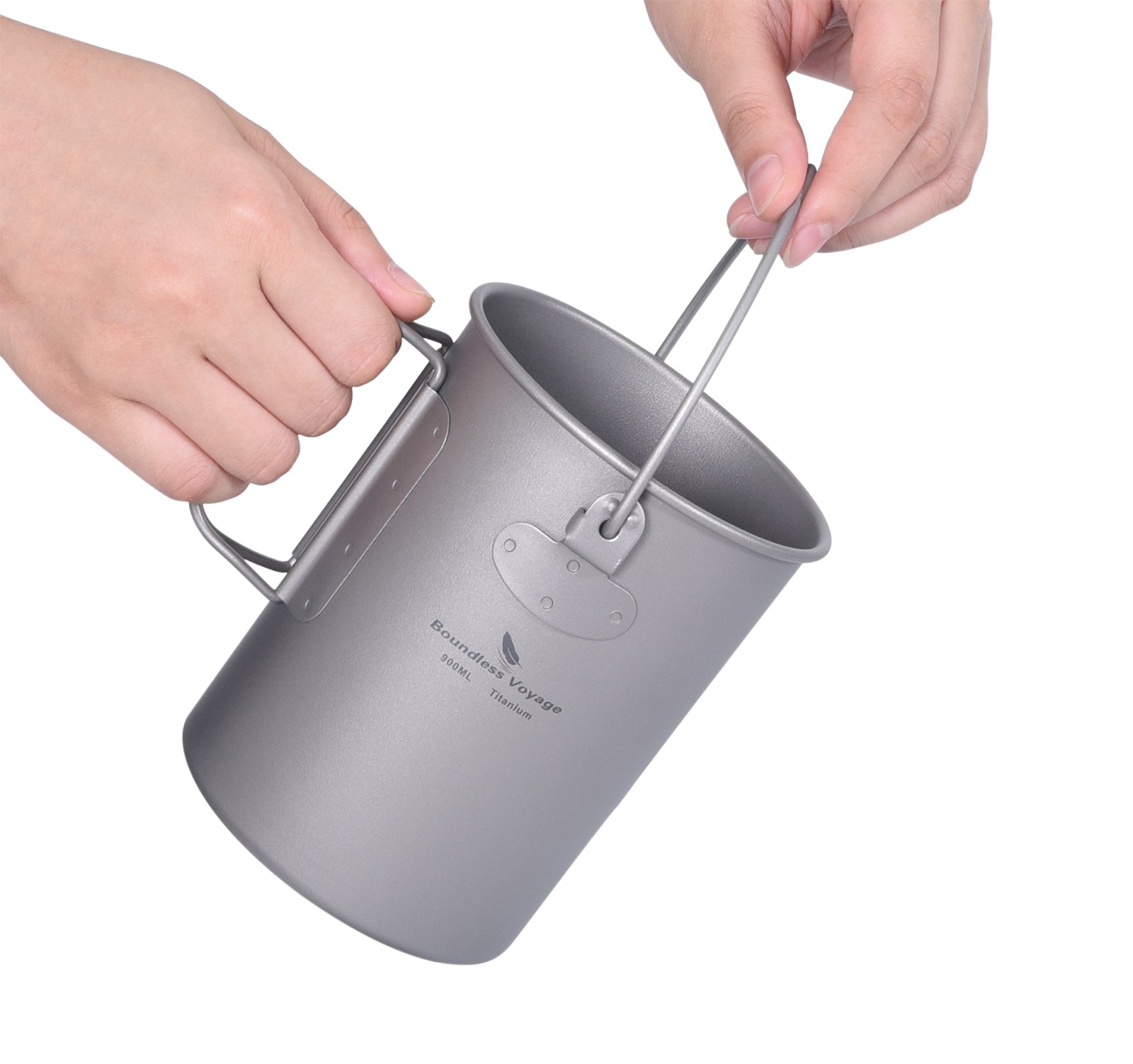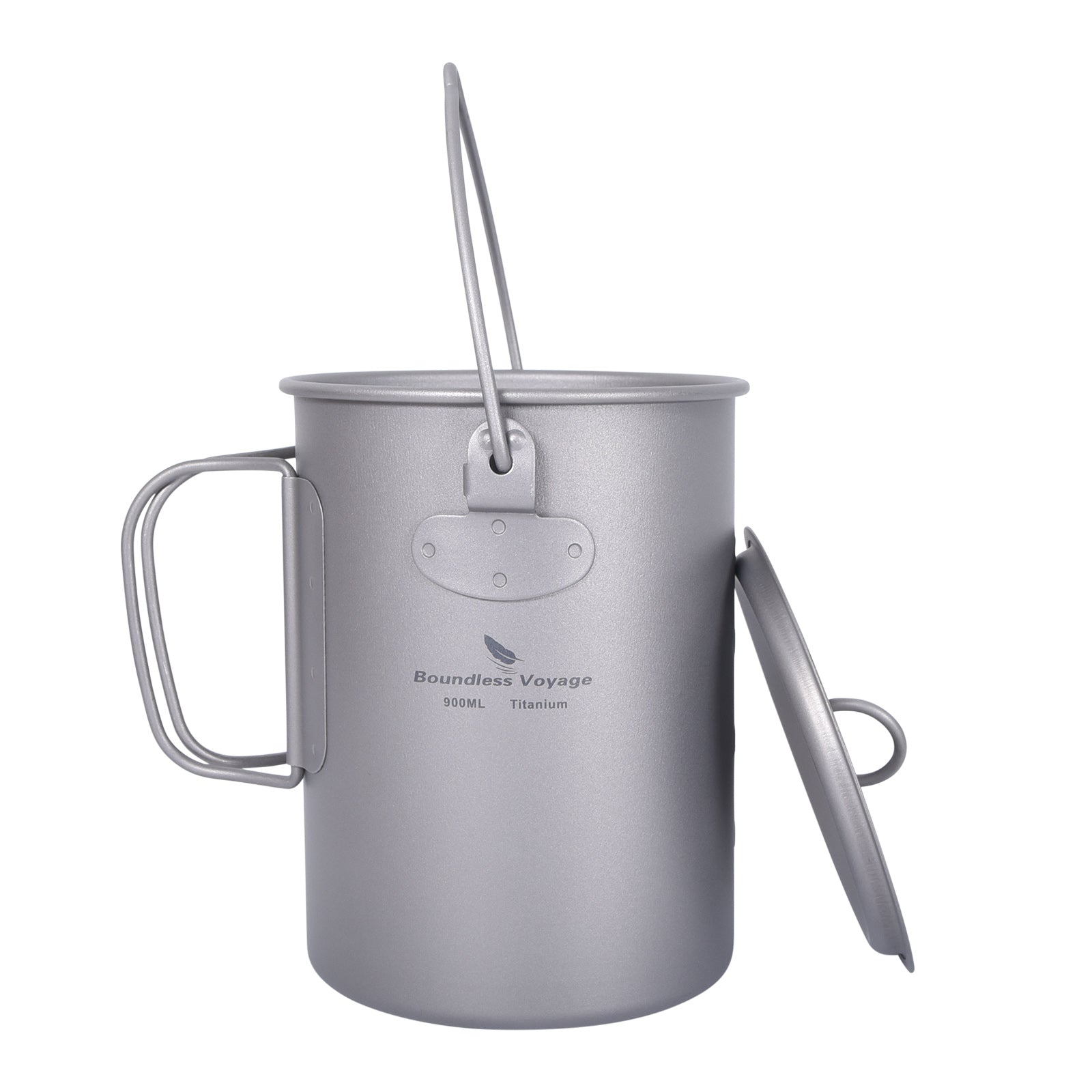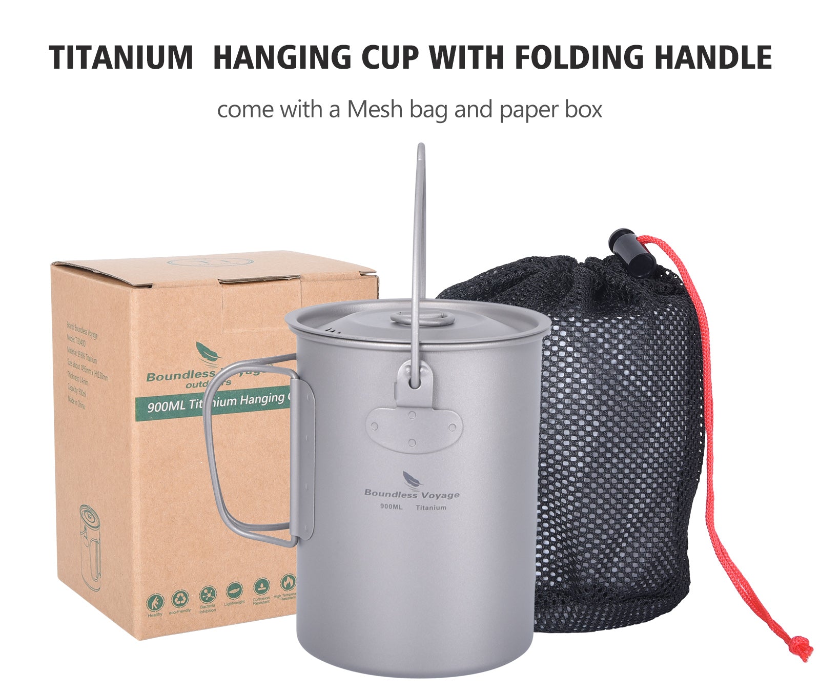Boundless Voyage Titanium 900ml Camping Mug Pot – Ultralight Hanging Cup with Folding Handle for Hiking, Backpacking, Outdoor Cooking