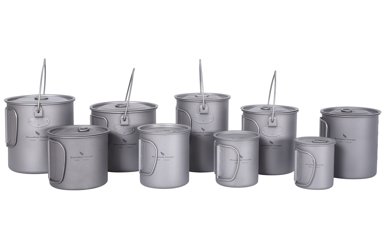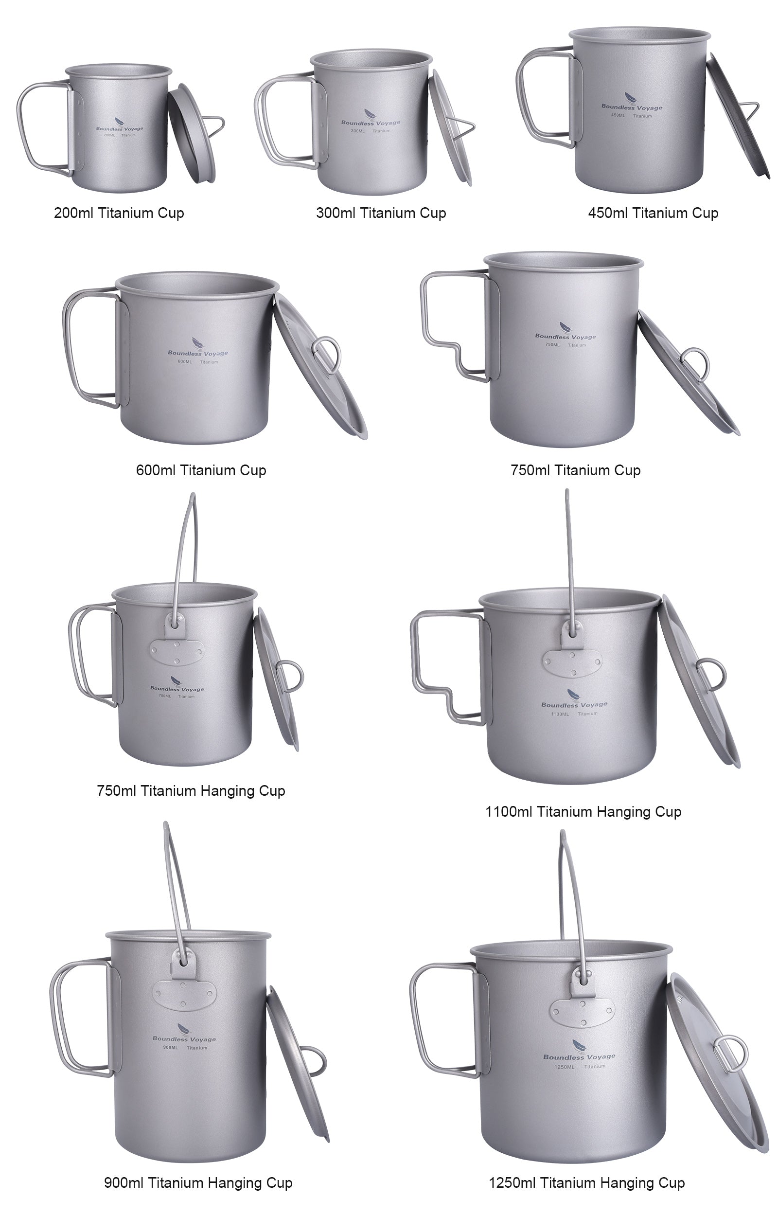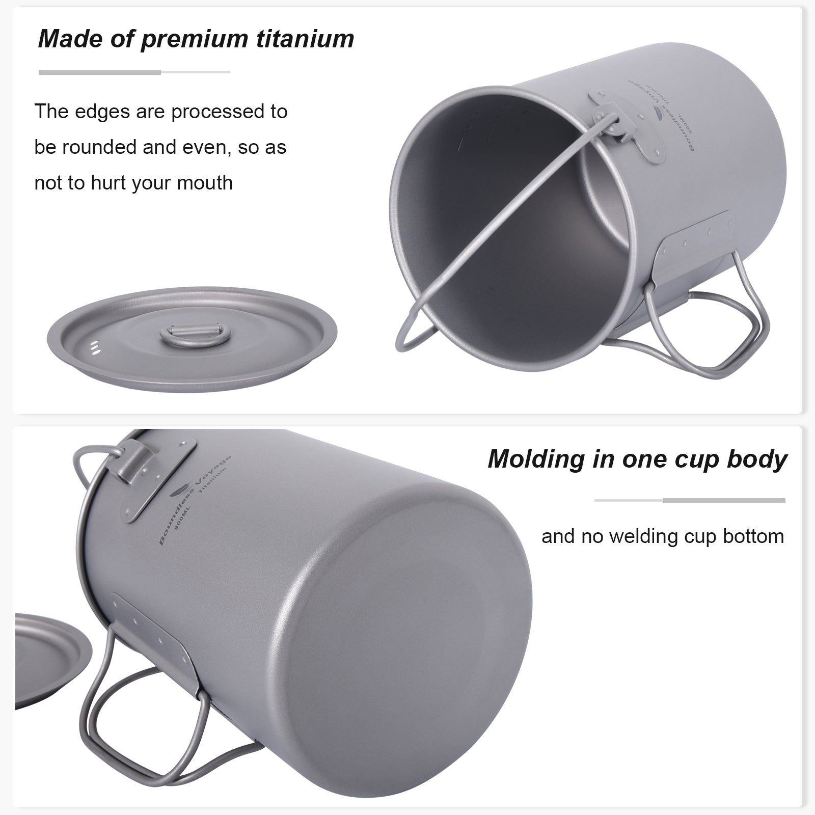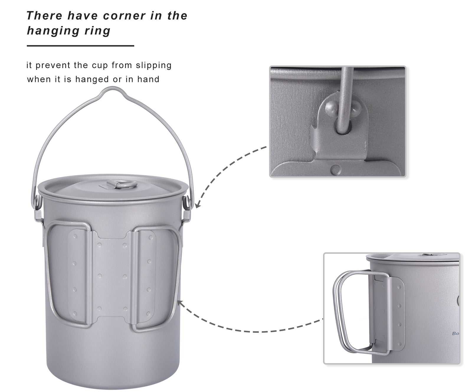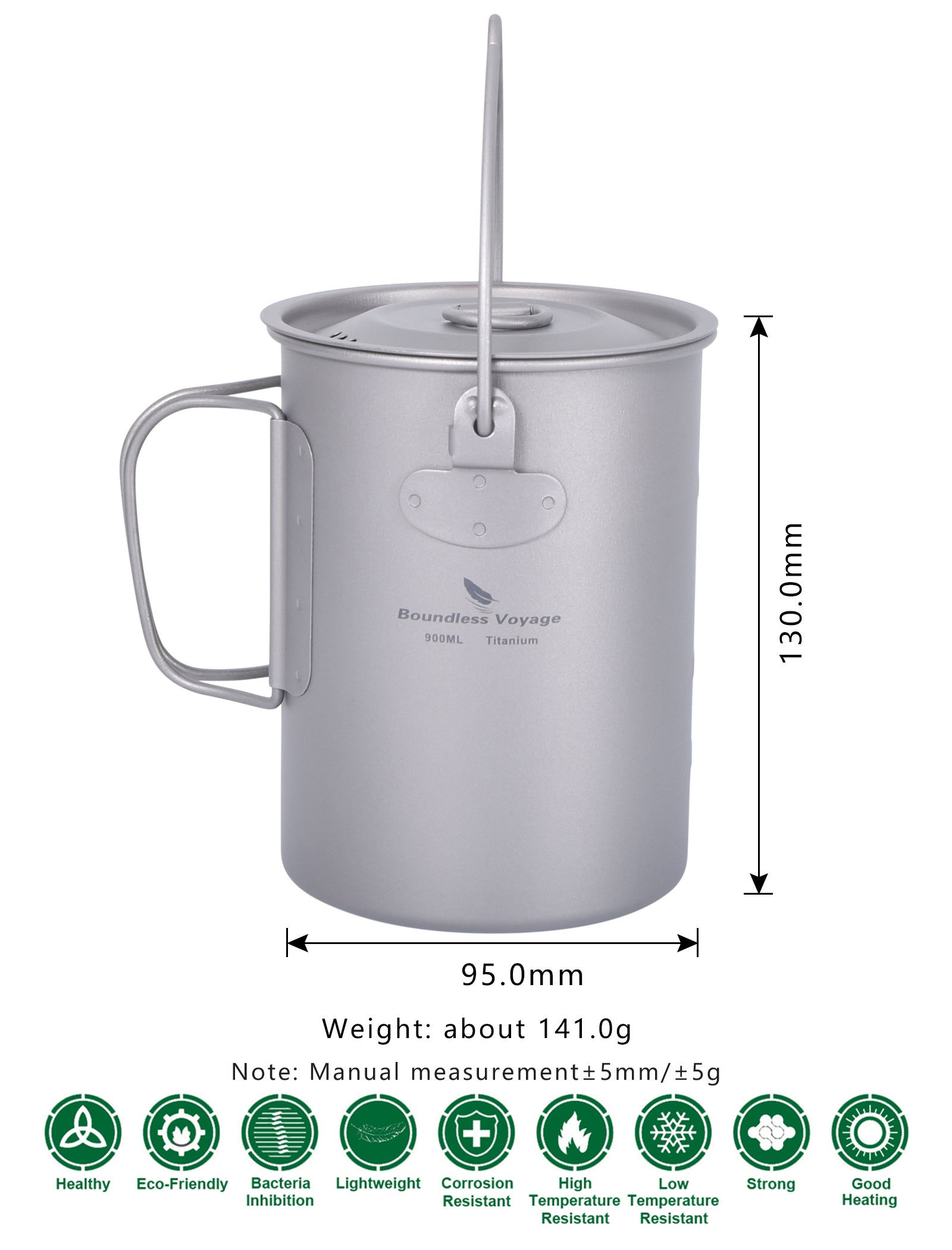 Boundless Voyage Titanium 900ml Camping Mug Pot – Ultralight Hanging Cup with Folding Handle for Hiking, Backpacking, Outdoor Cooking
