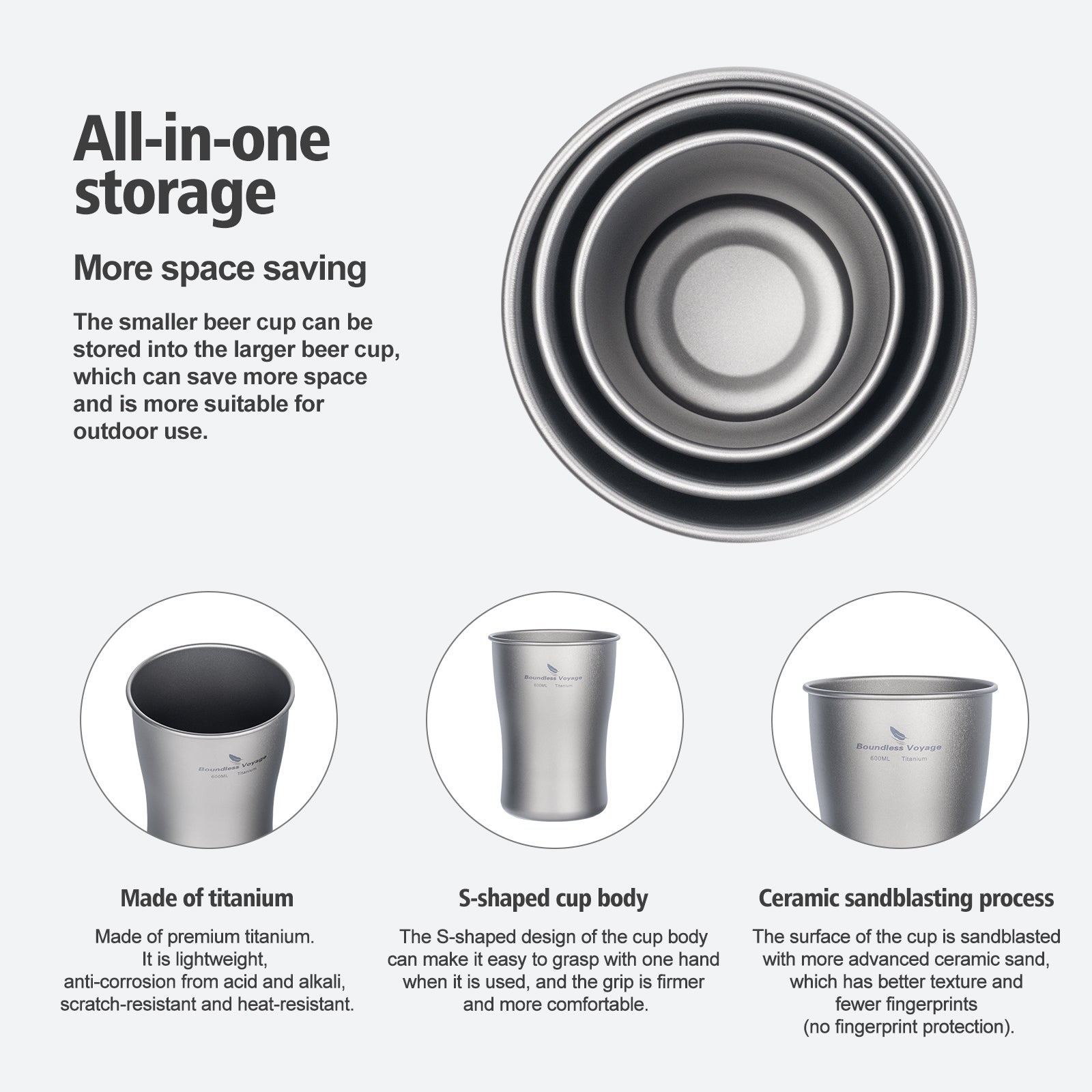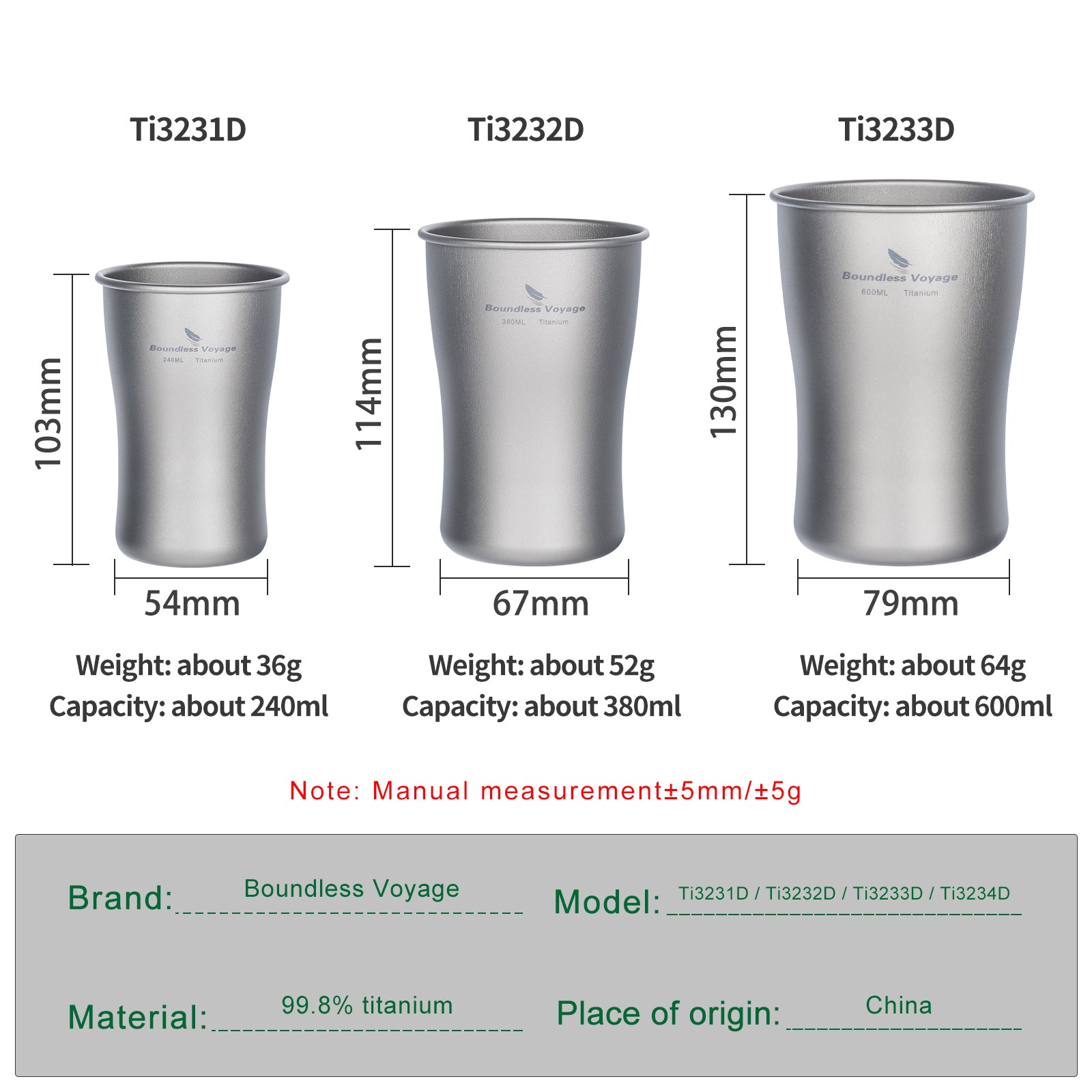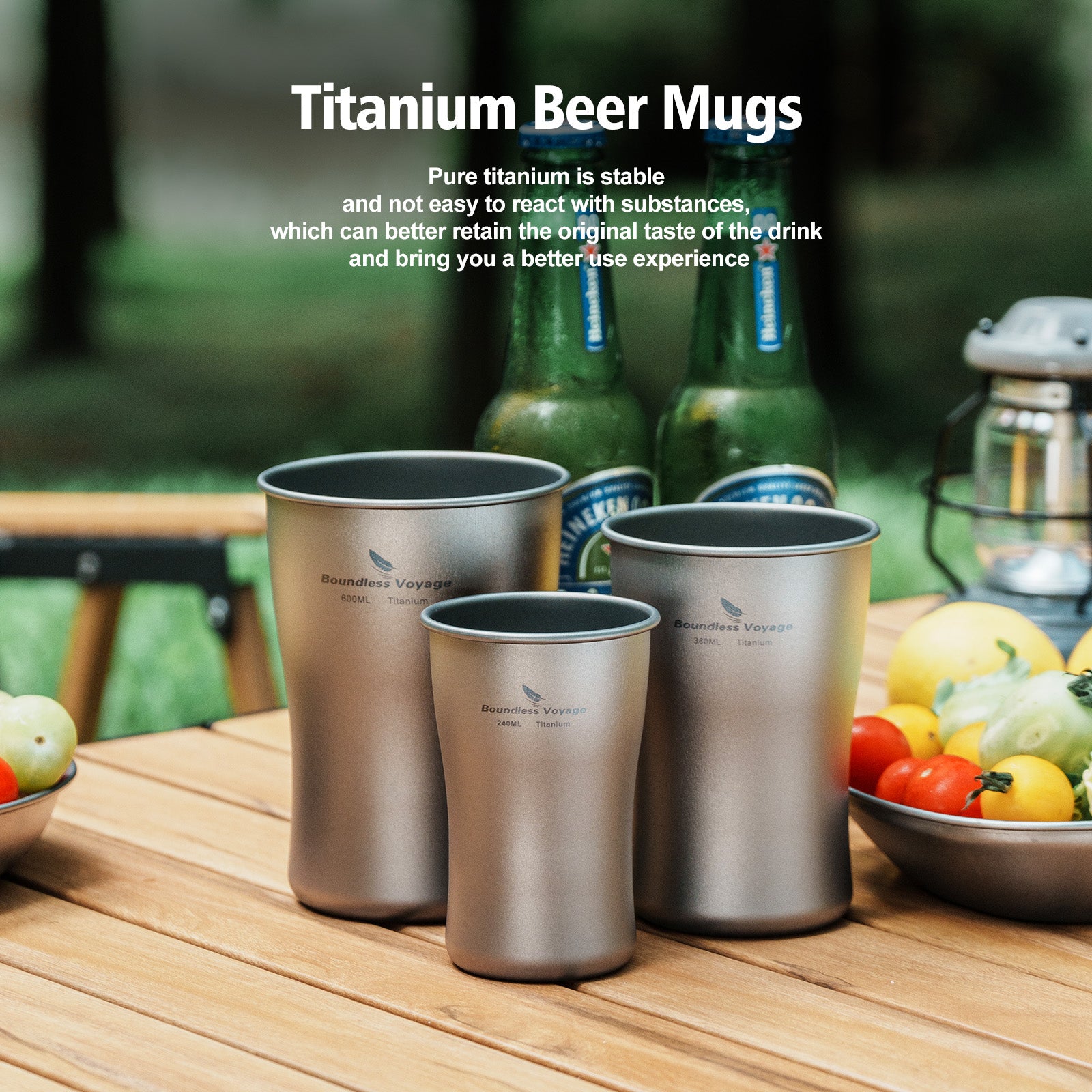Boundless Voyage Titanium Beer Mugs Ultralight Coffee Tea Juicy Cups for Outdoor Camping Picnic 240ml 380ml 600ml
