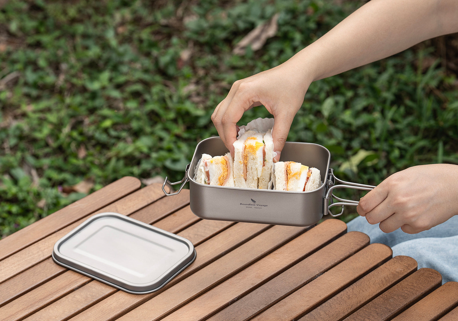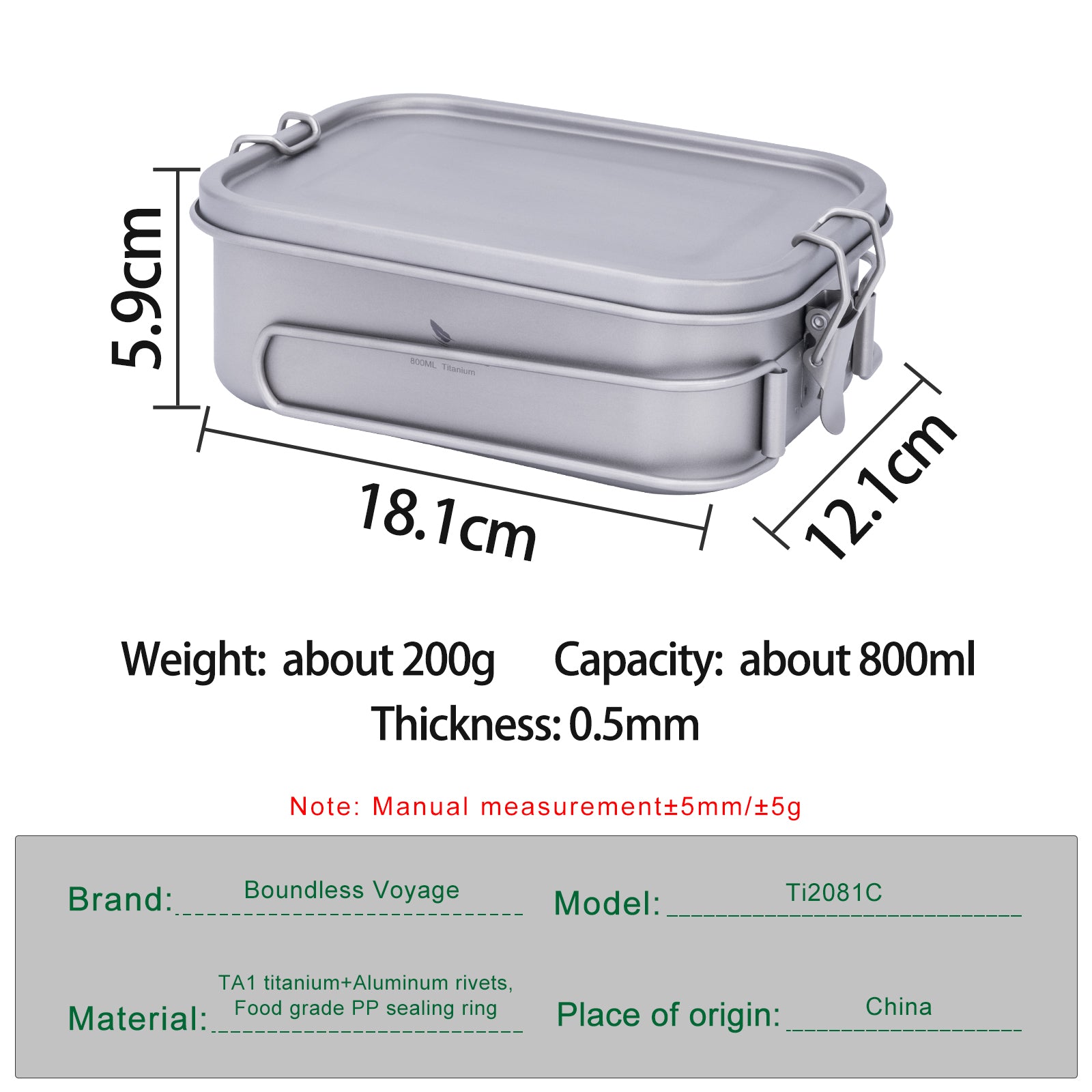 Boundless Voyage Titanium Bento with Lid & Handle Outdoor Camping Tableware Cookware Leak Proof Lunch Box Container