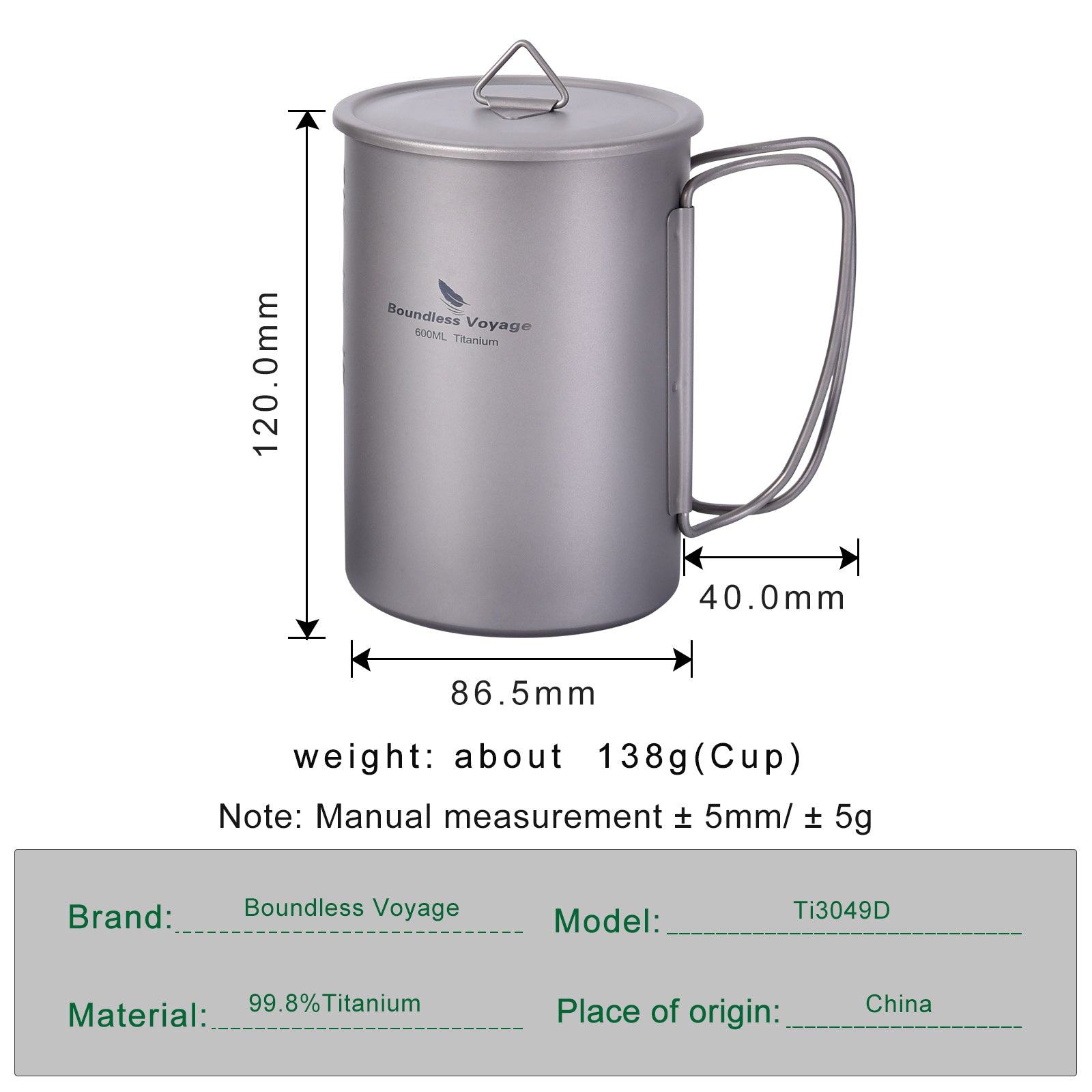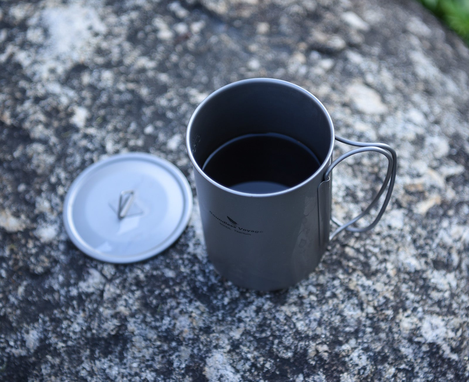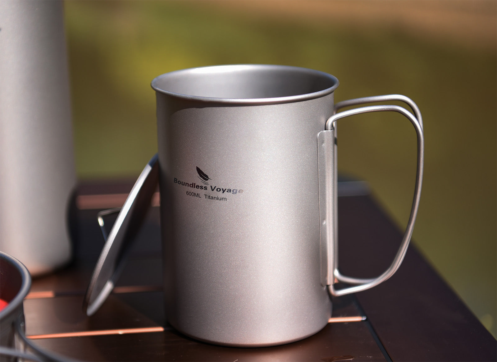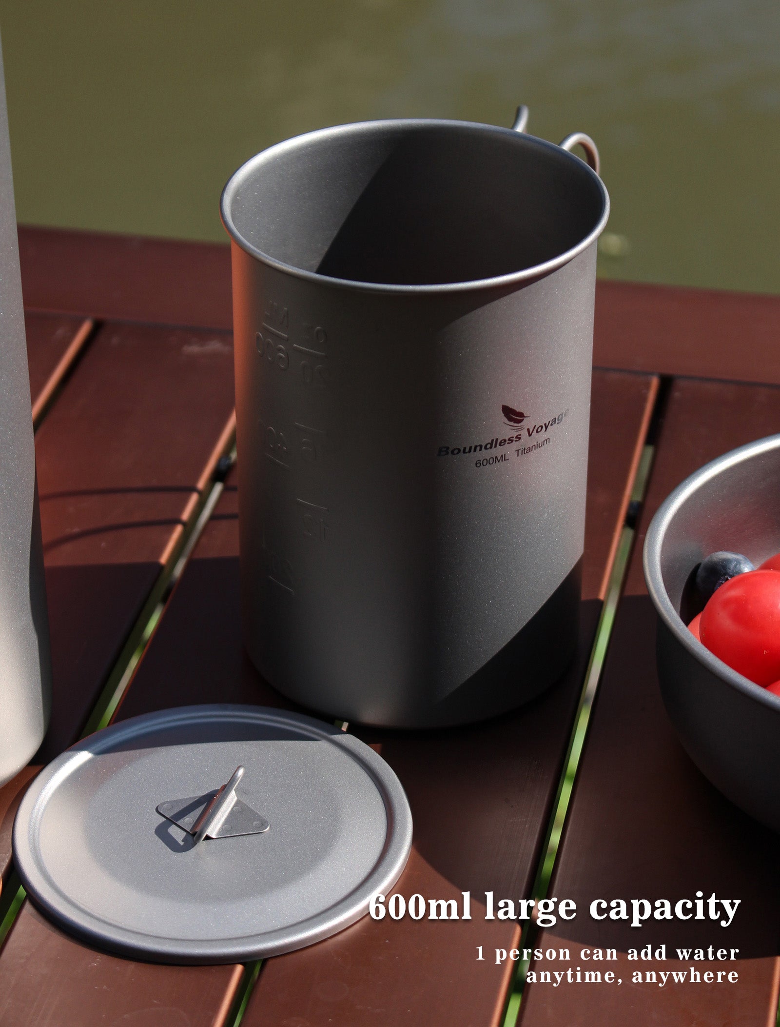 Boundless Voyage Titanium Cup with Flat Lid Lightweight Portable Tea Coffee Wine Dinnerware for Backpacking Hiking Camping Picnic