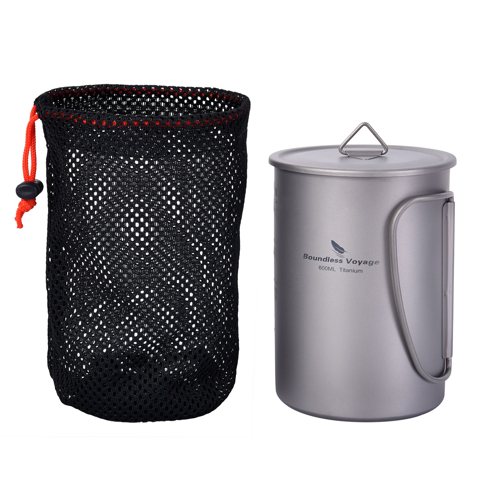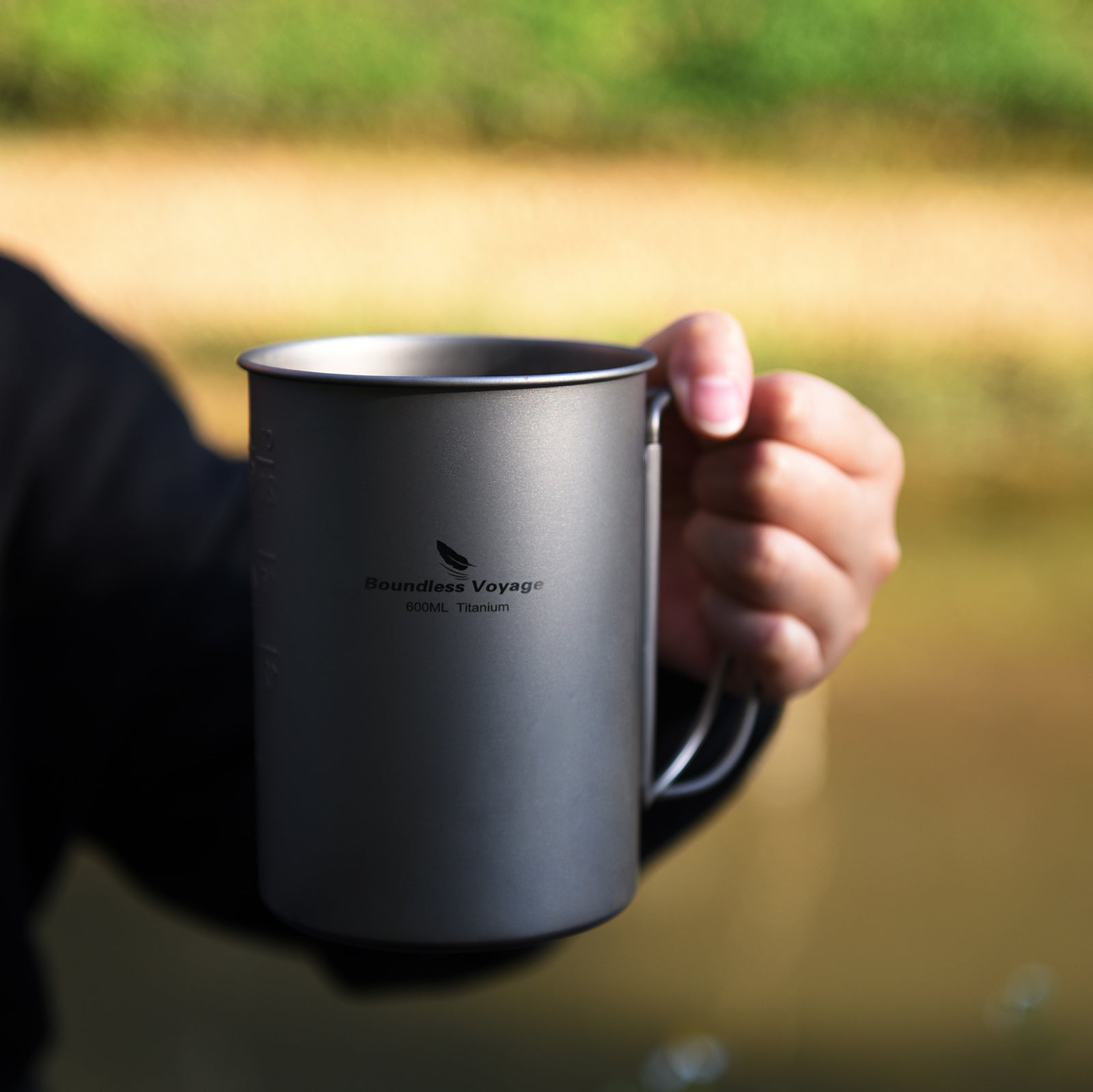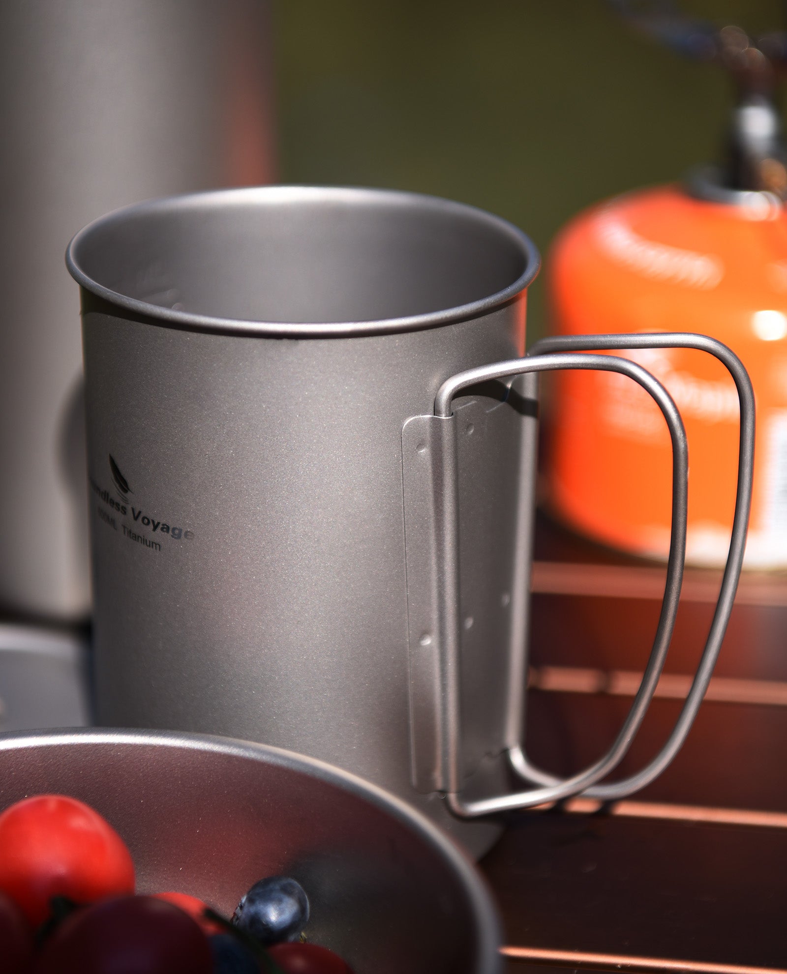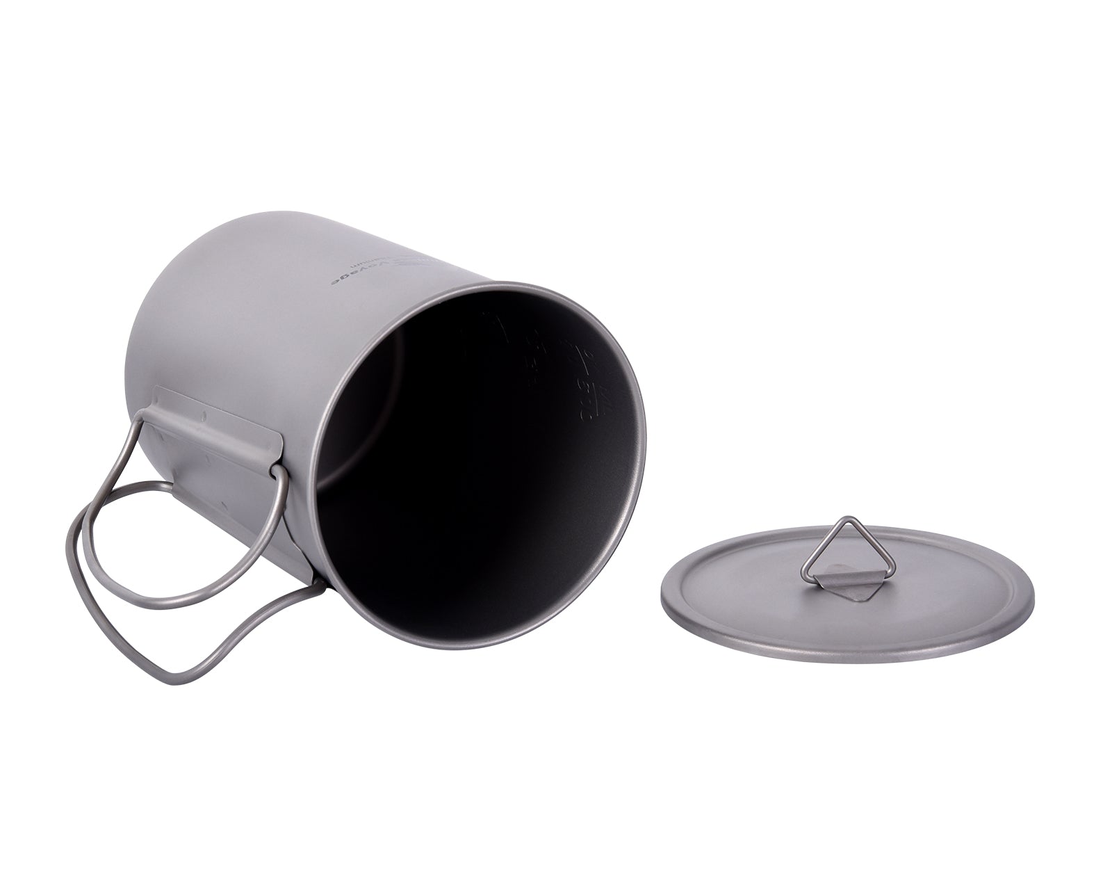 Boundless Voyage Titanium Cup with Flat Lid Lightweight Portable Tea Coffee Wine Dinnerware for Backpacking Hiking Camping Picnic