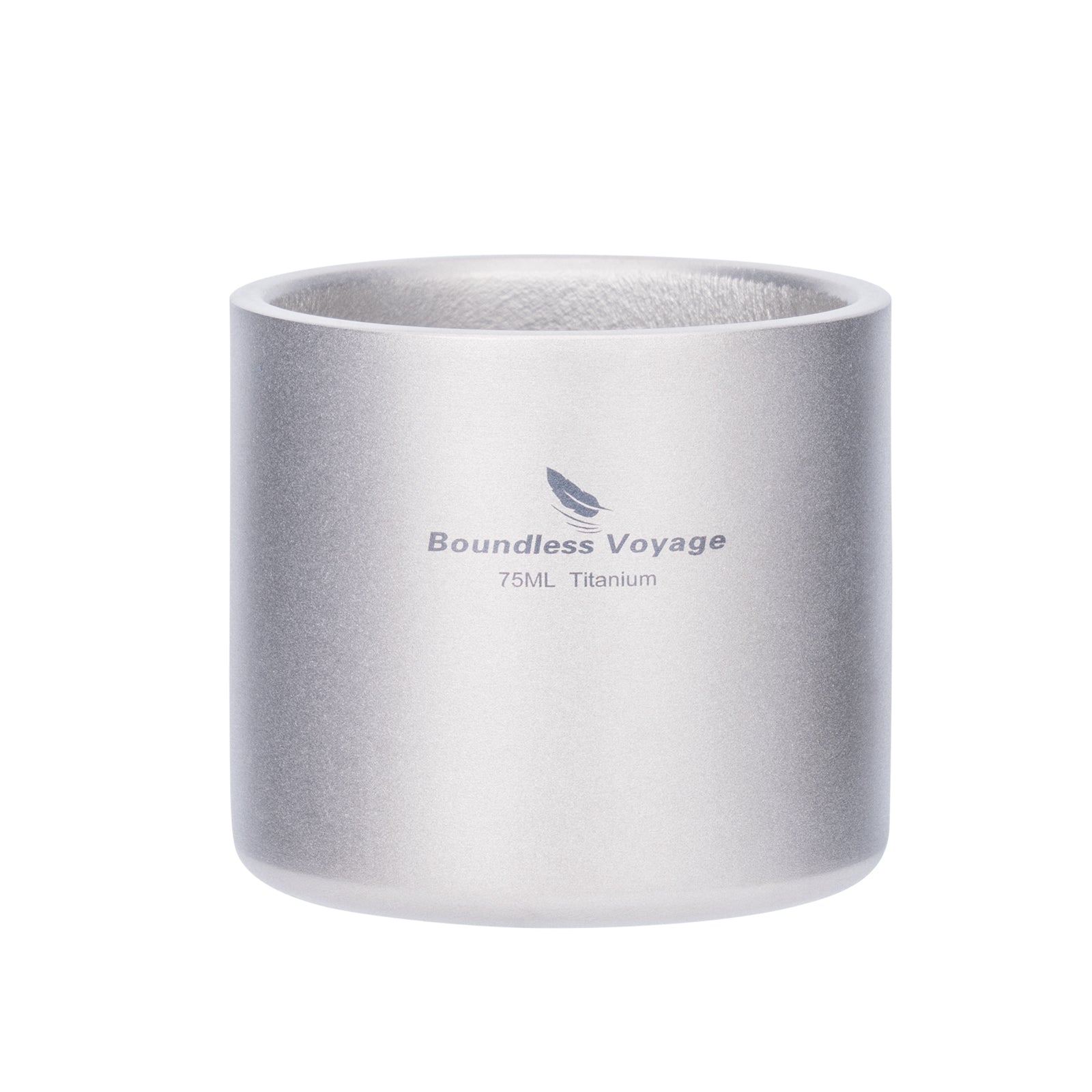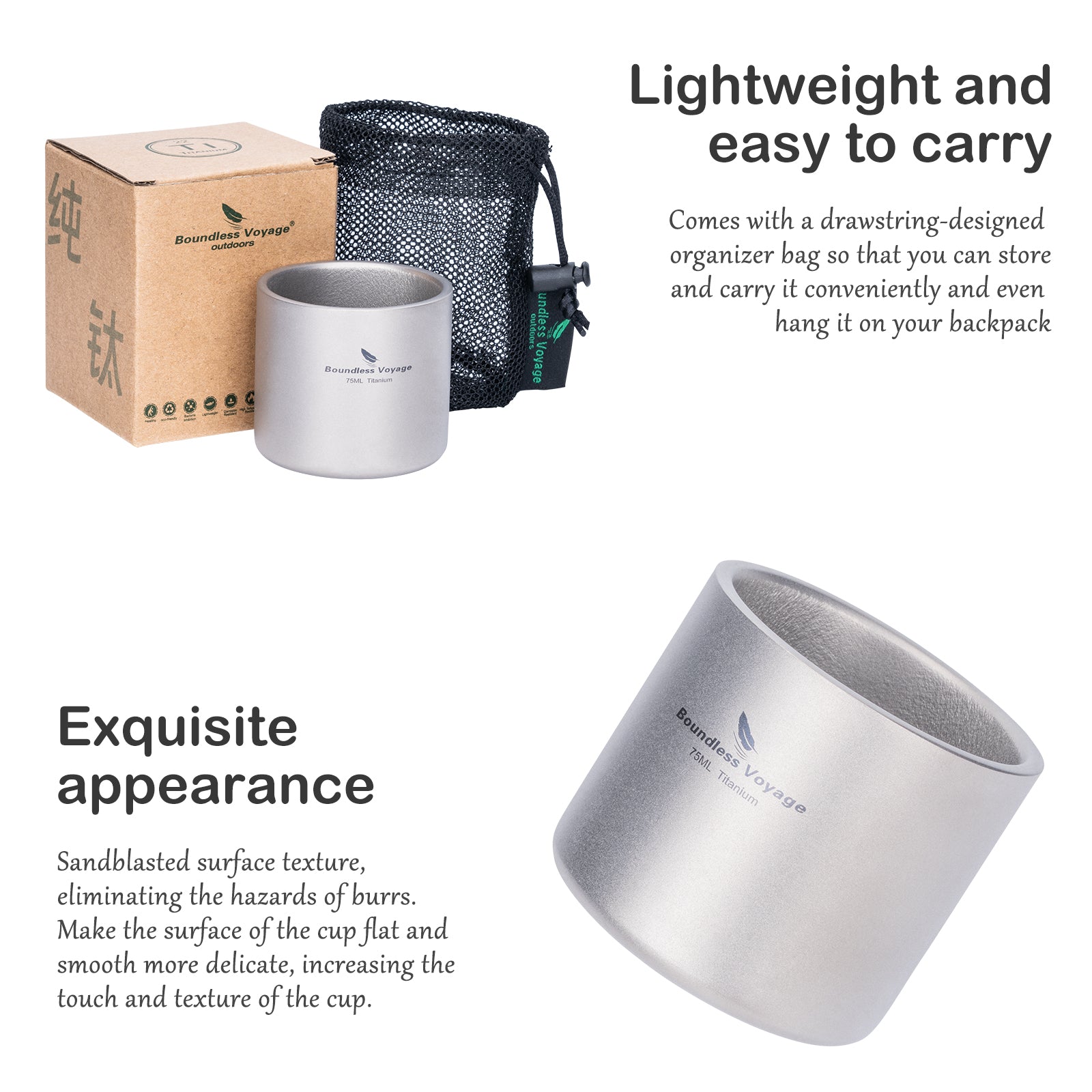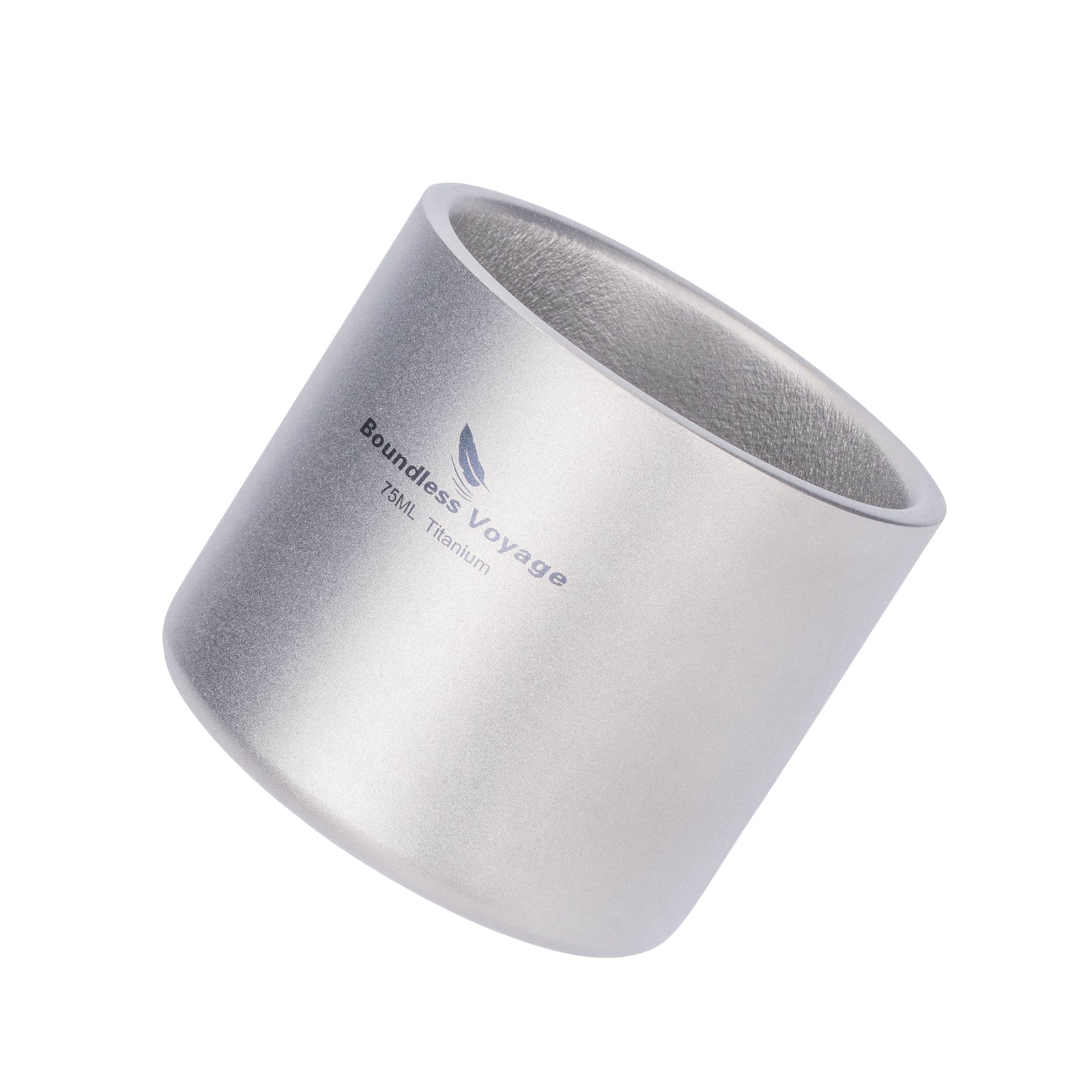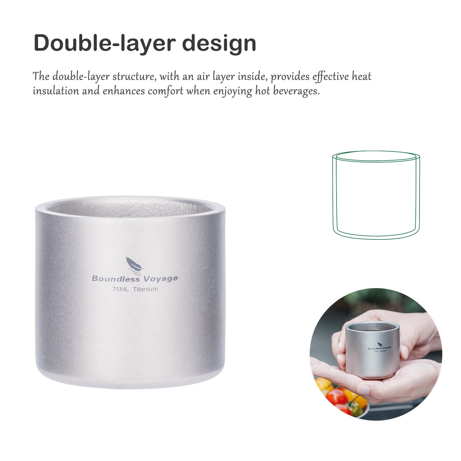 Boundless Voyage Titanium Double-wall Mug Cup Backpacking Portable Camping Cup 75ml Lightweight Heat Resistant Coffee Mug Tea Cup with Storage Bag for Hiking Picnic Travel or Daily Use