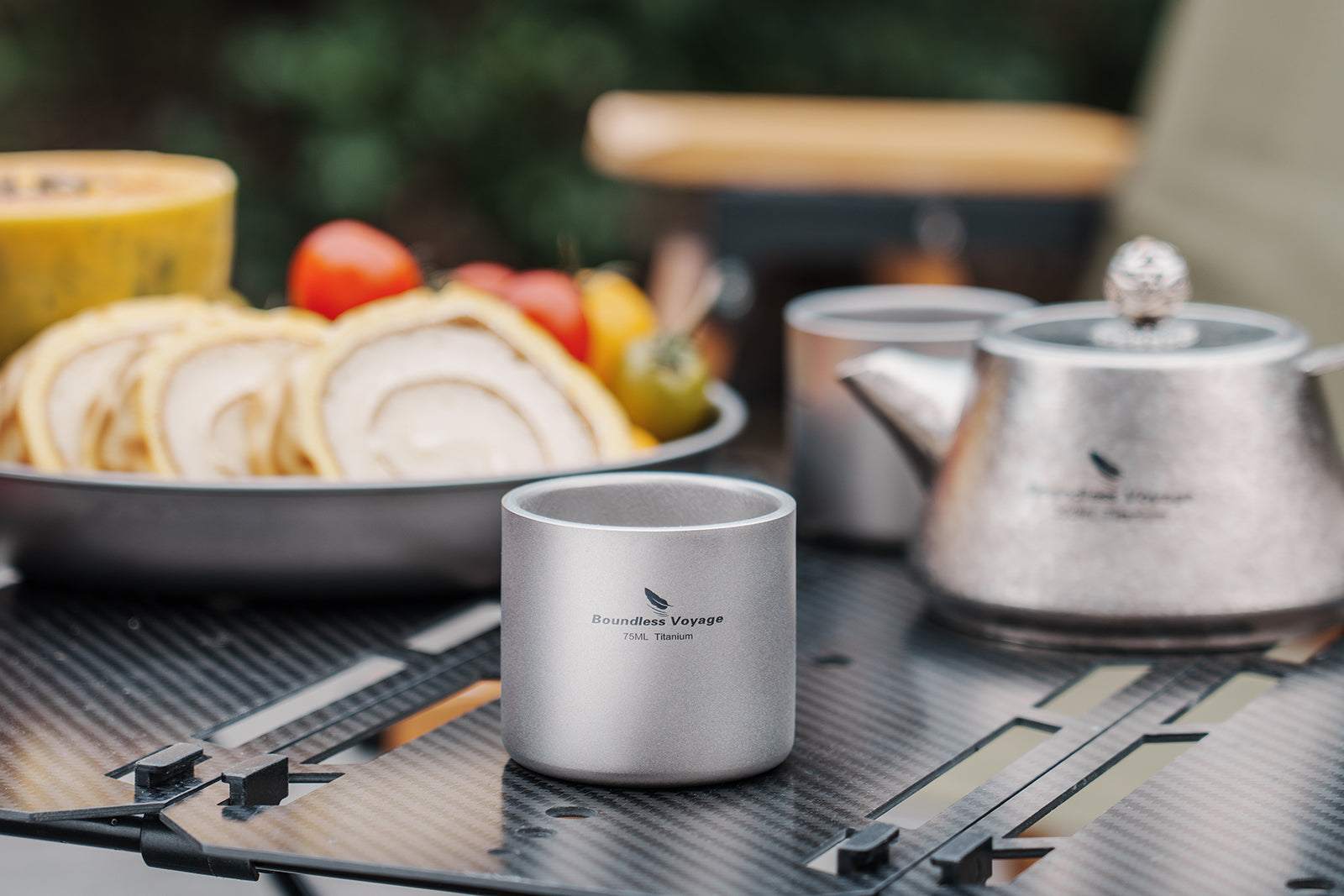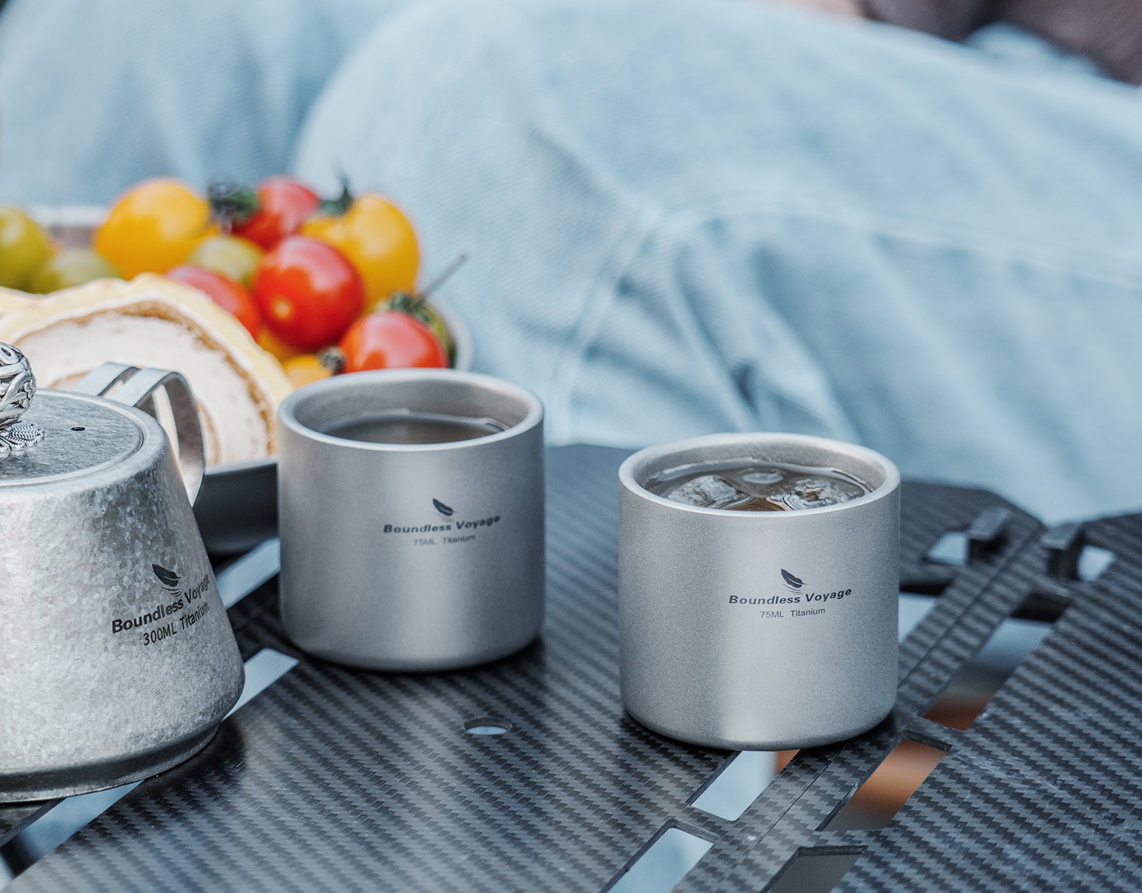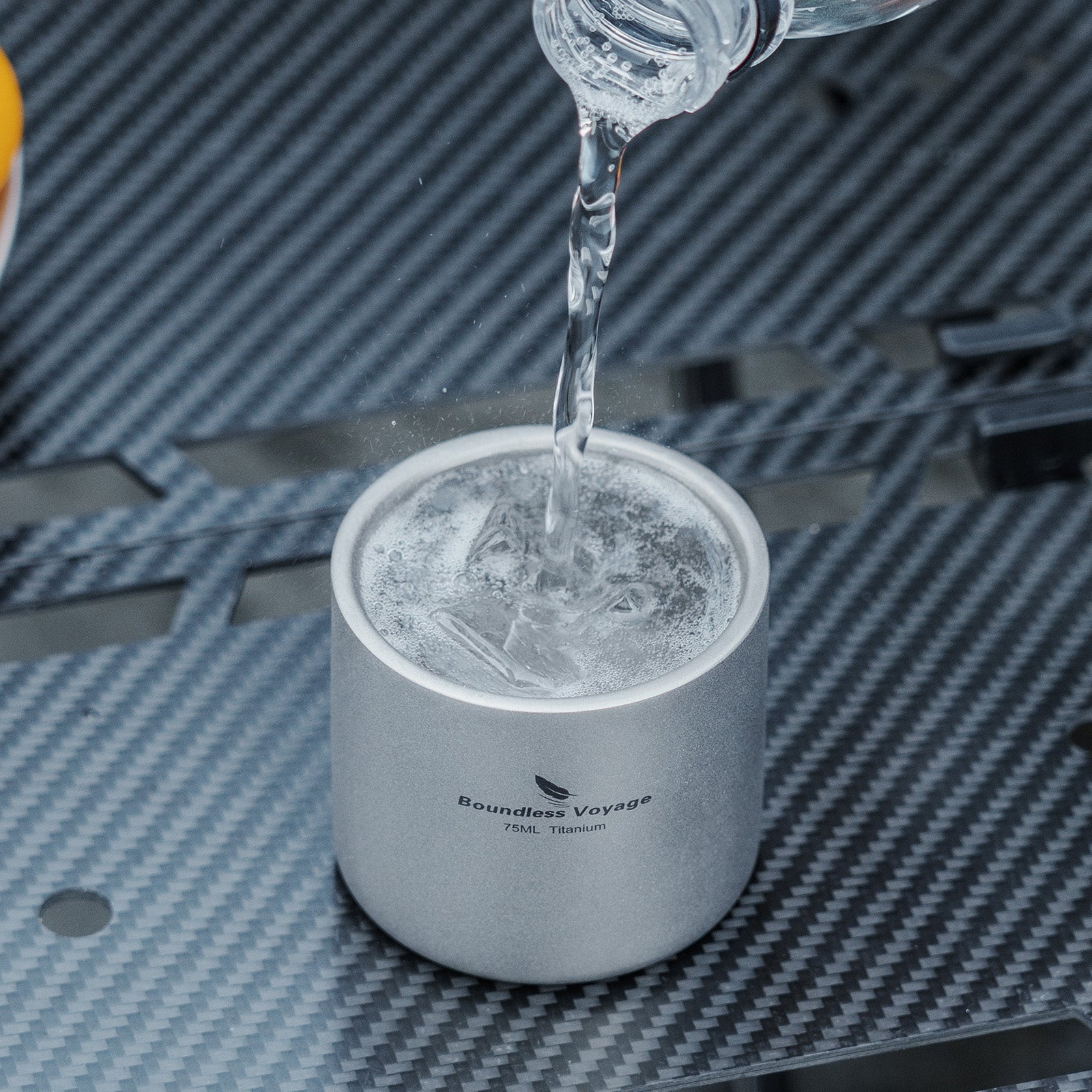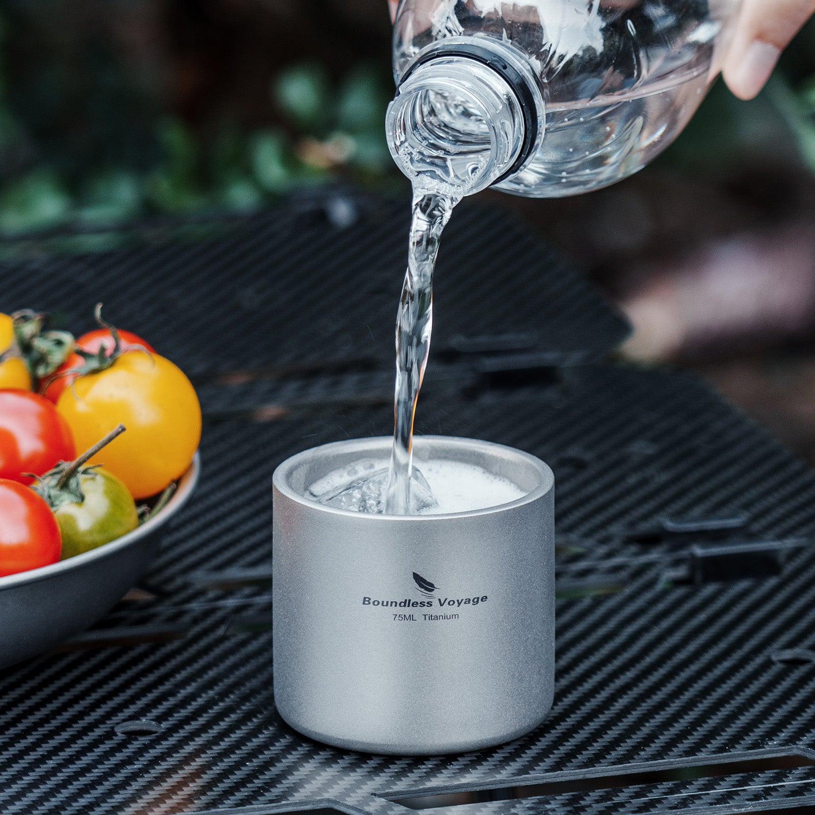 Boundless Voyage Titanium Double-wall Mug Cup Backpacking Portable Camping Cup 75ml Lightweight Heat Resistant Coffee Mug Tea Cup with Storage Bag for Hiking Picnic Travel or Daily Use