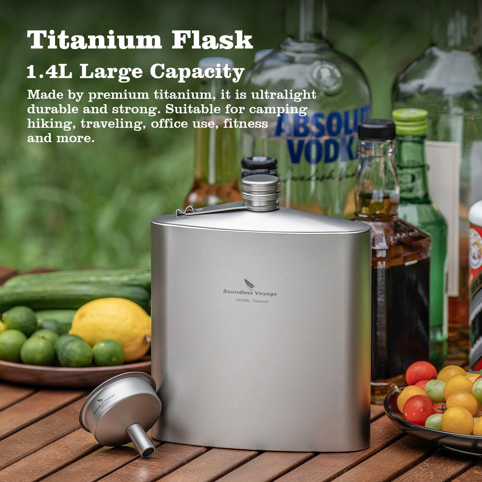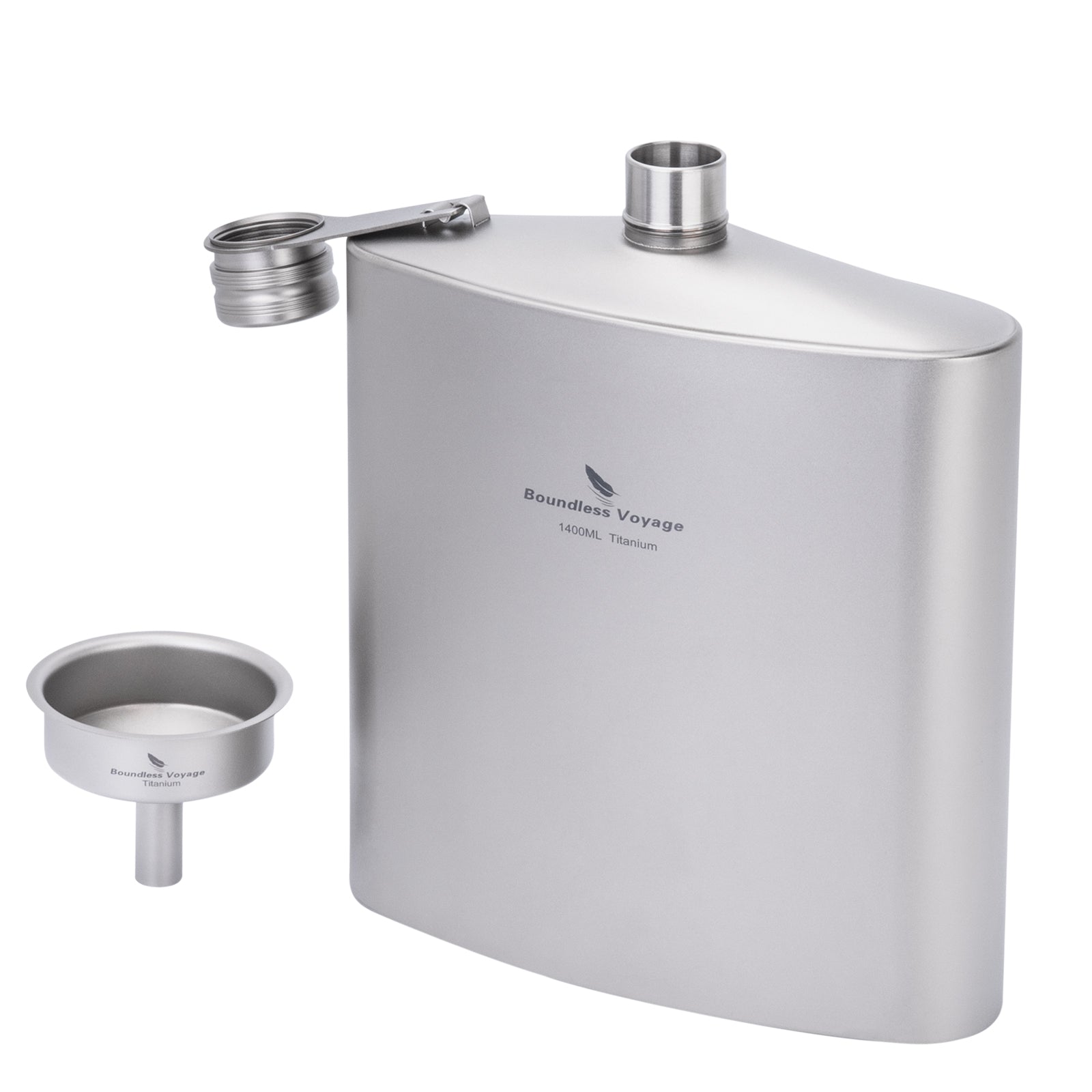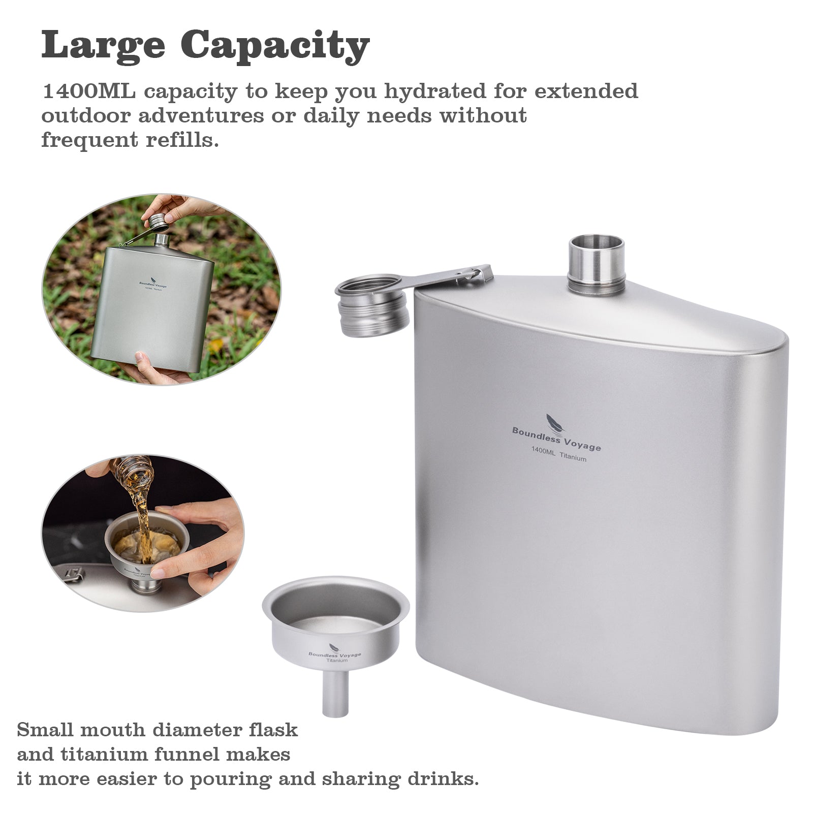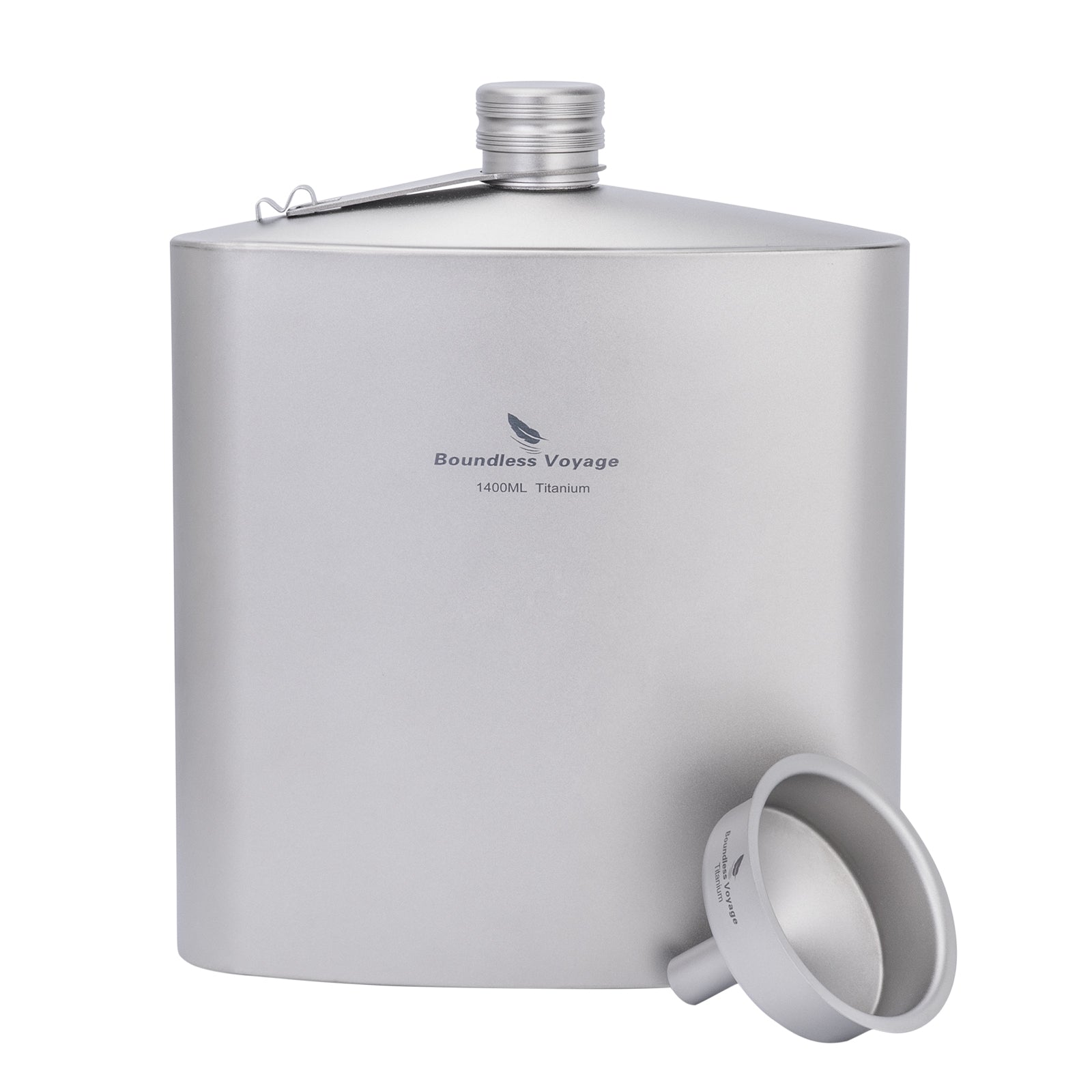 Boundless Voyage Titanium Flask Bottle 1400ML Big Capacity Sports Drinkware With TItanium Funnel for Outdoor Camping Hiking