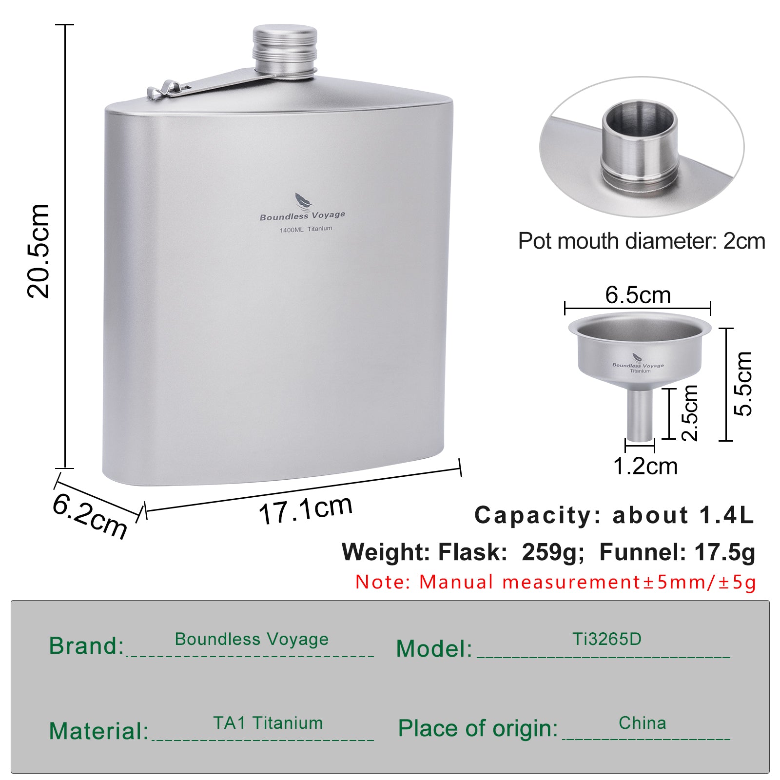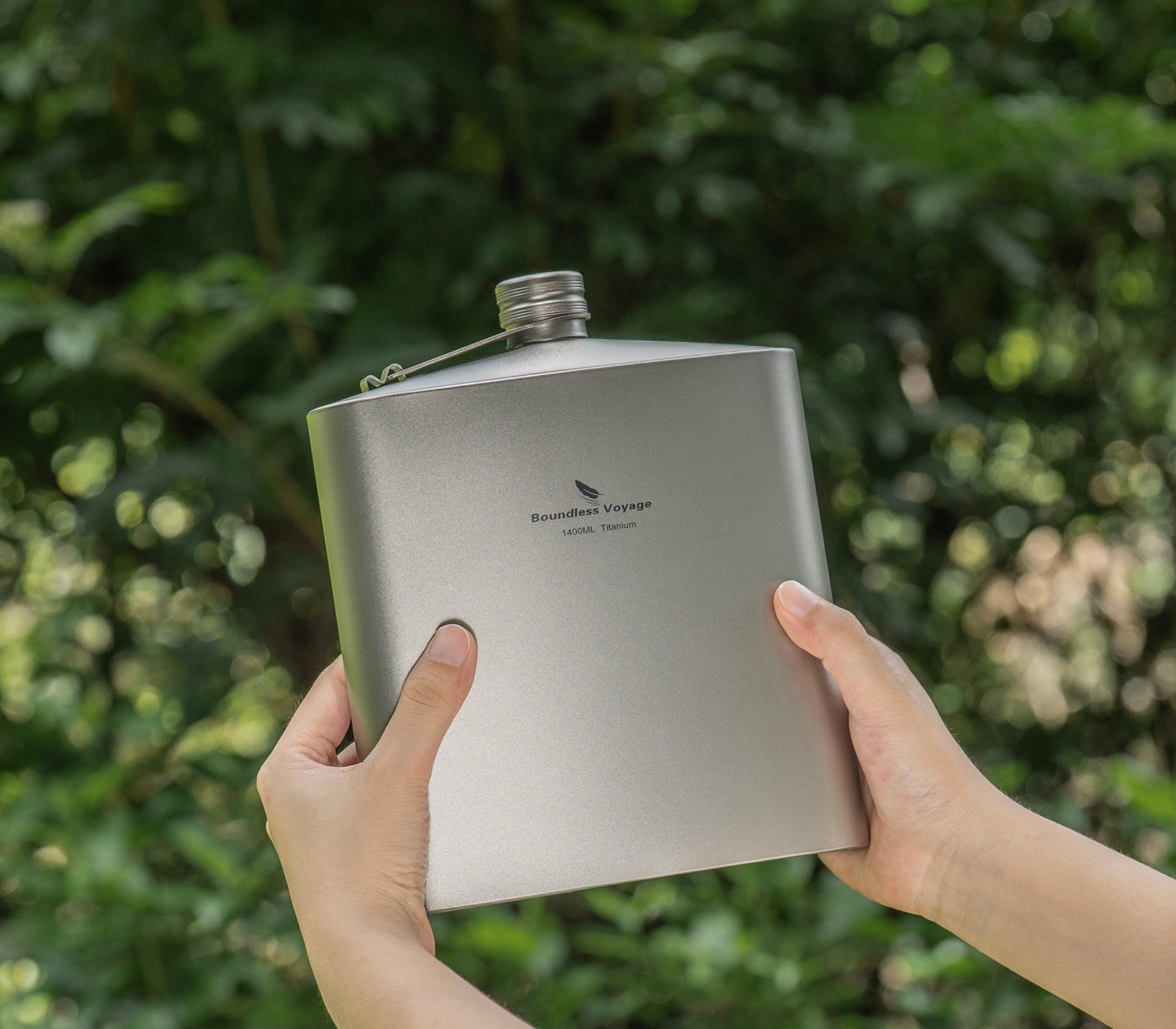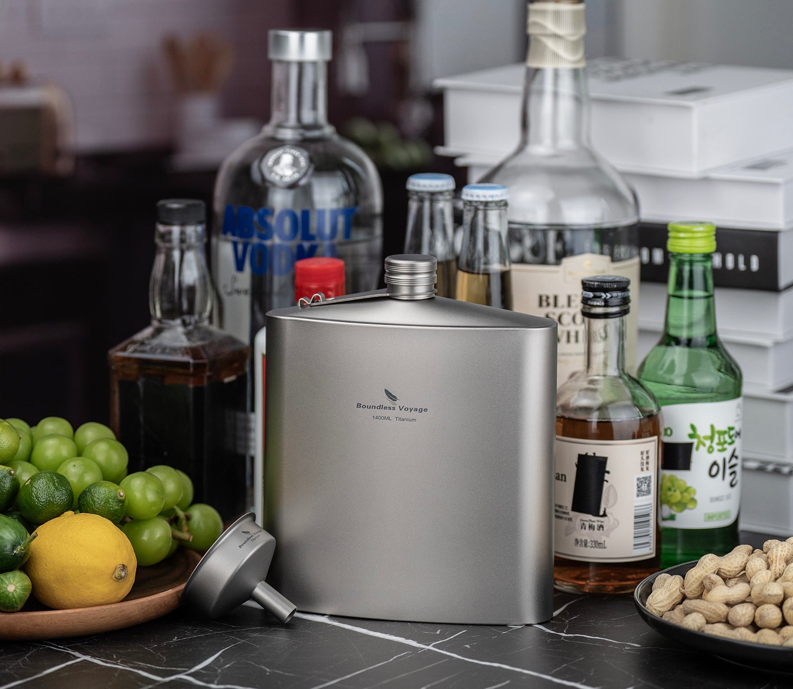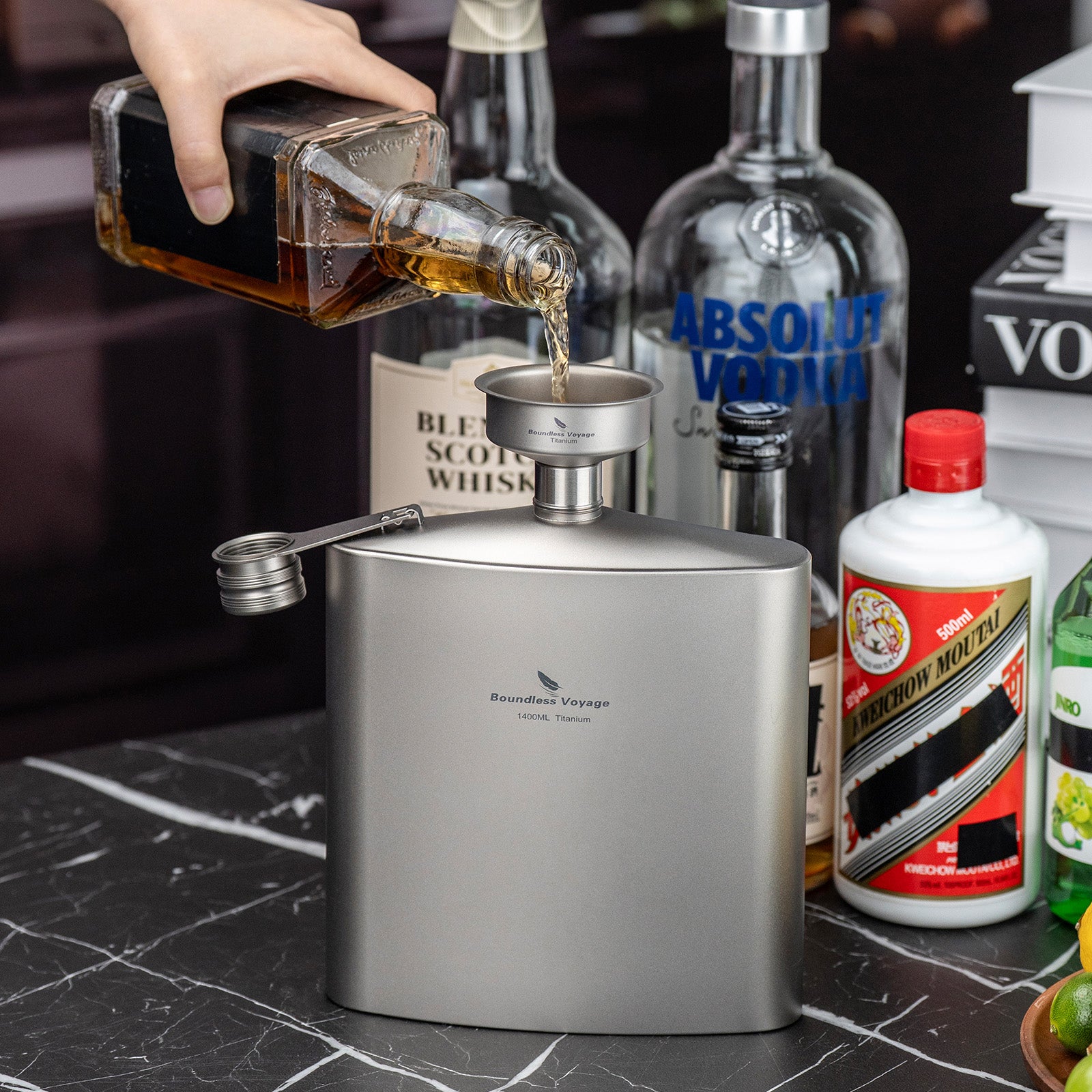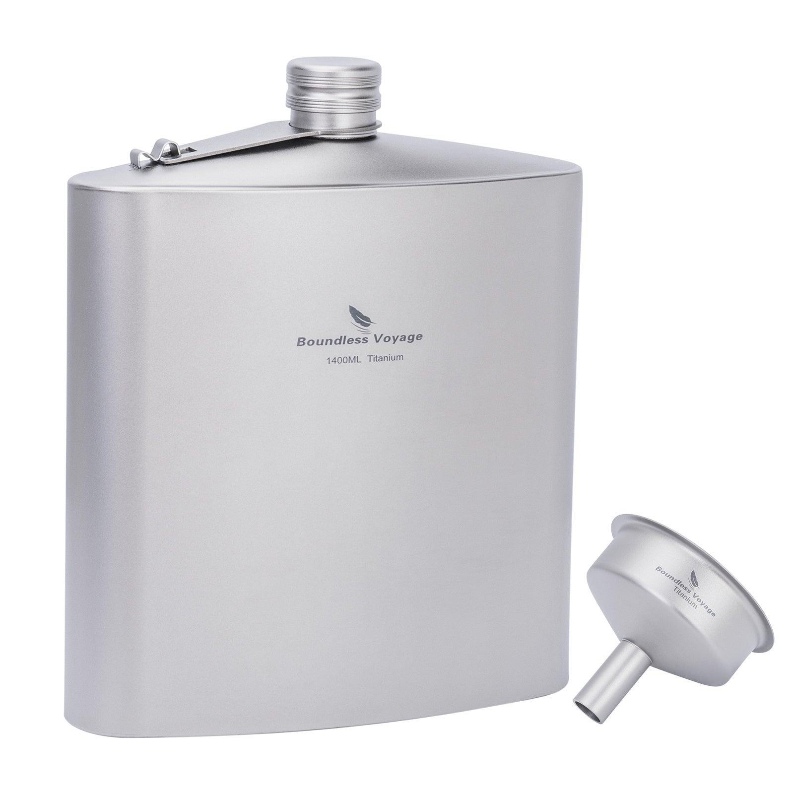 Boundless Voyage Titanium Flask Bottle 1400ML Big Capacity Sports Drinkware With TItanium Funnel for Outdoor Camping Hiking