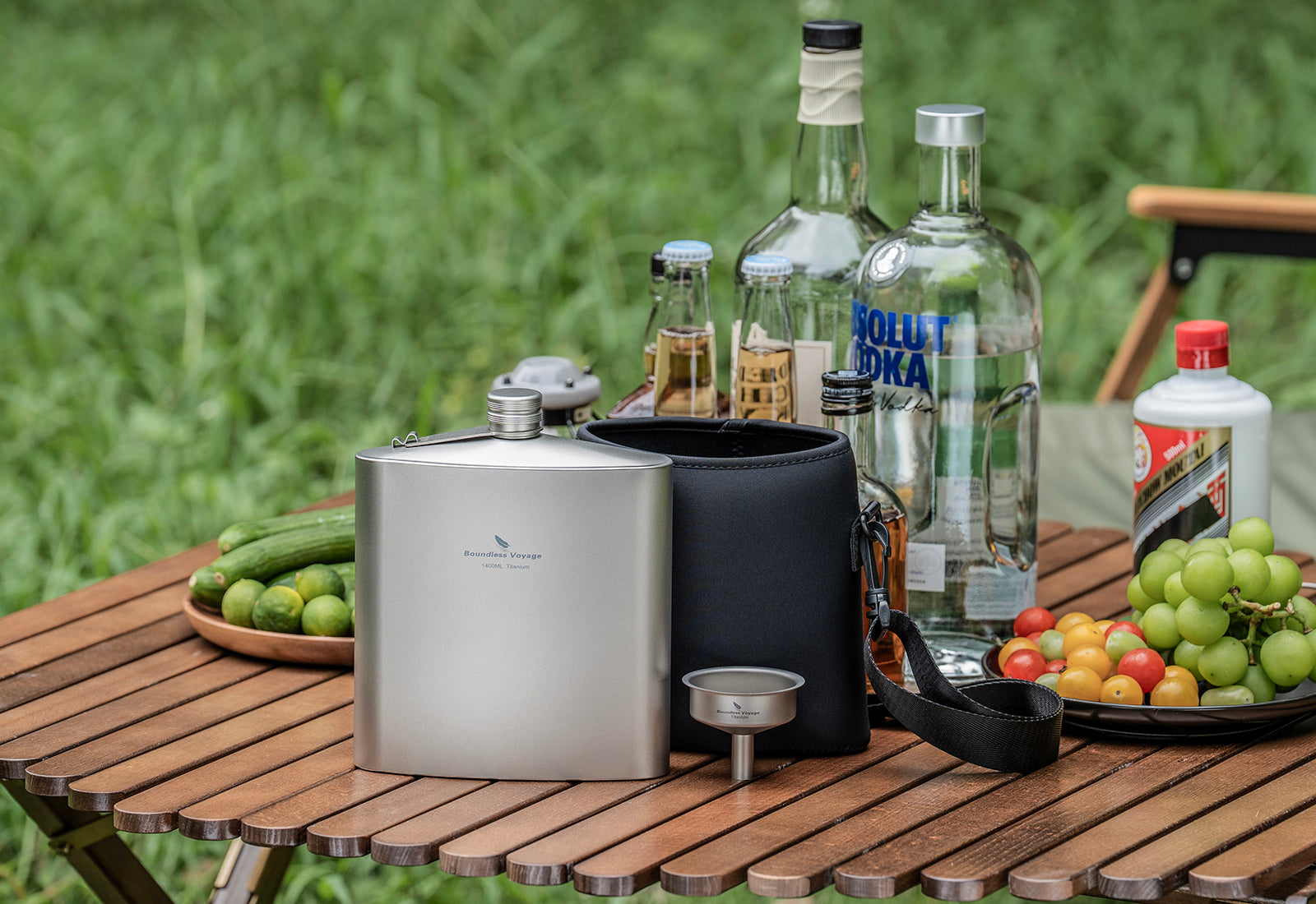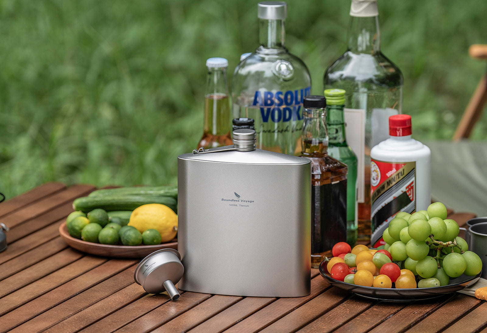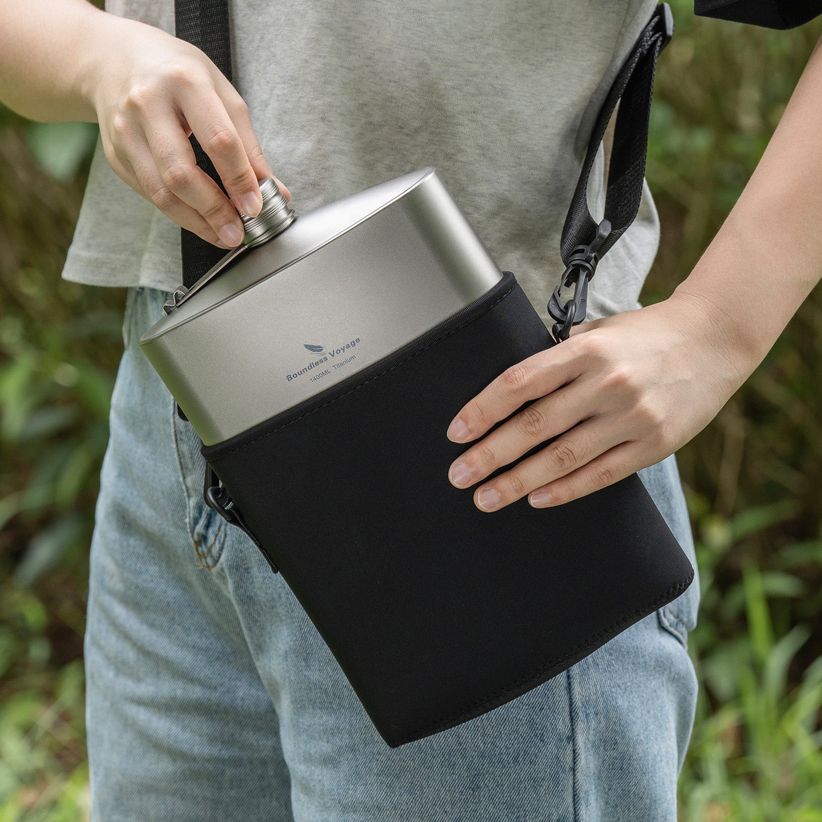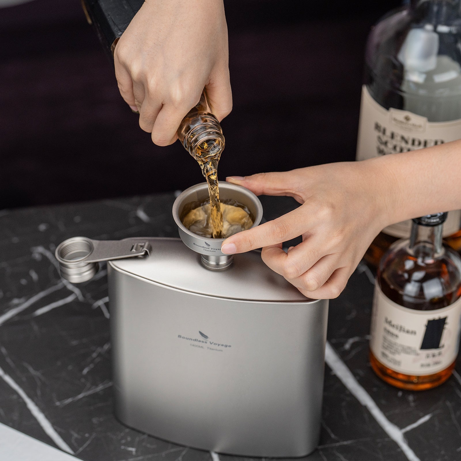 Boundless Voyage Titanium Flask Bottle 1400ML Big Capacity Sports Drinkware With TItanium Funnel for Outdoor Camping Hiking