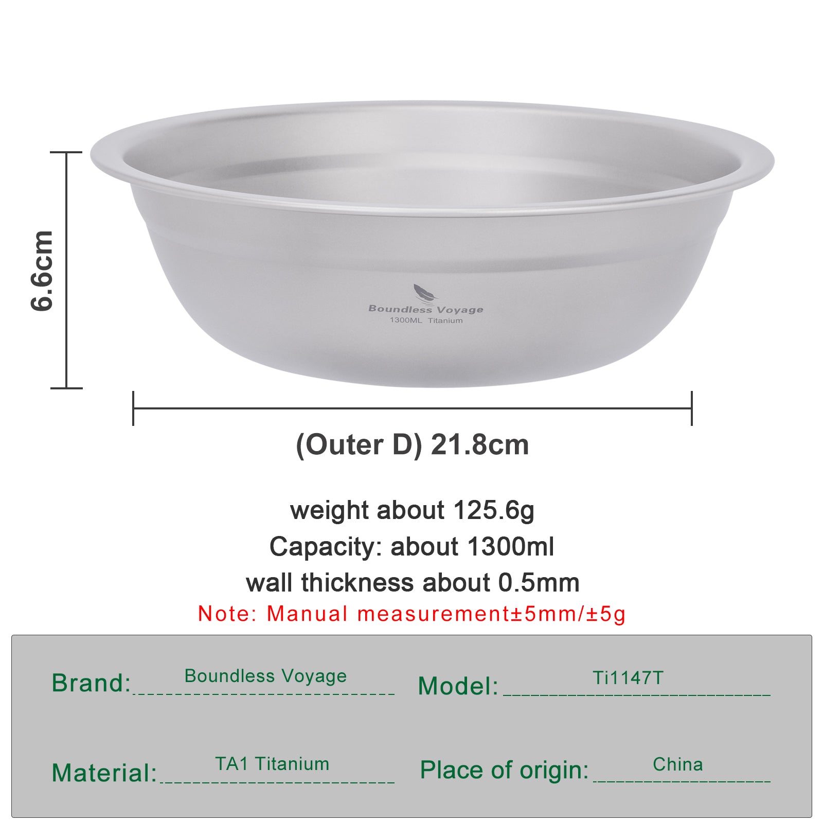 Boundless Voyage 1300ml Titanium Bowl Rice Soup Salad Serving Bowl Ultralight Outdoor Camping Travel Durable Portable Tableware