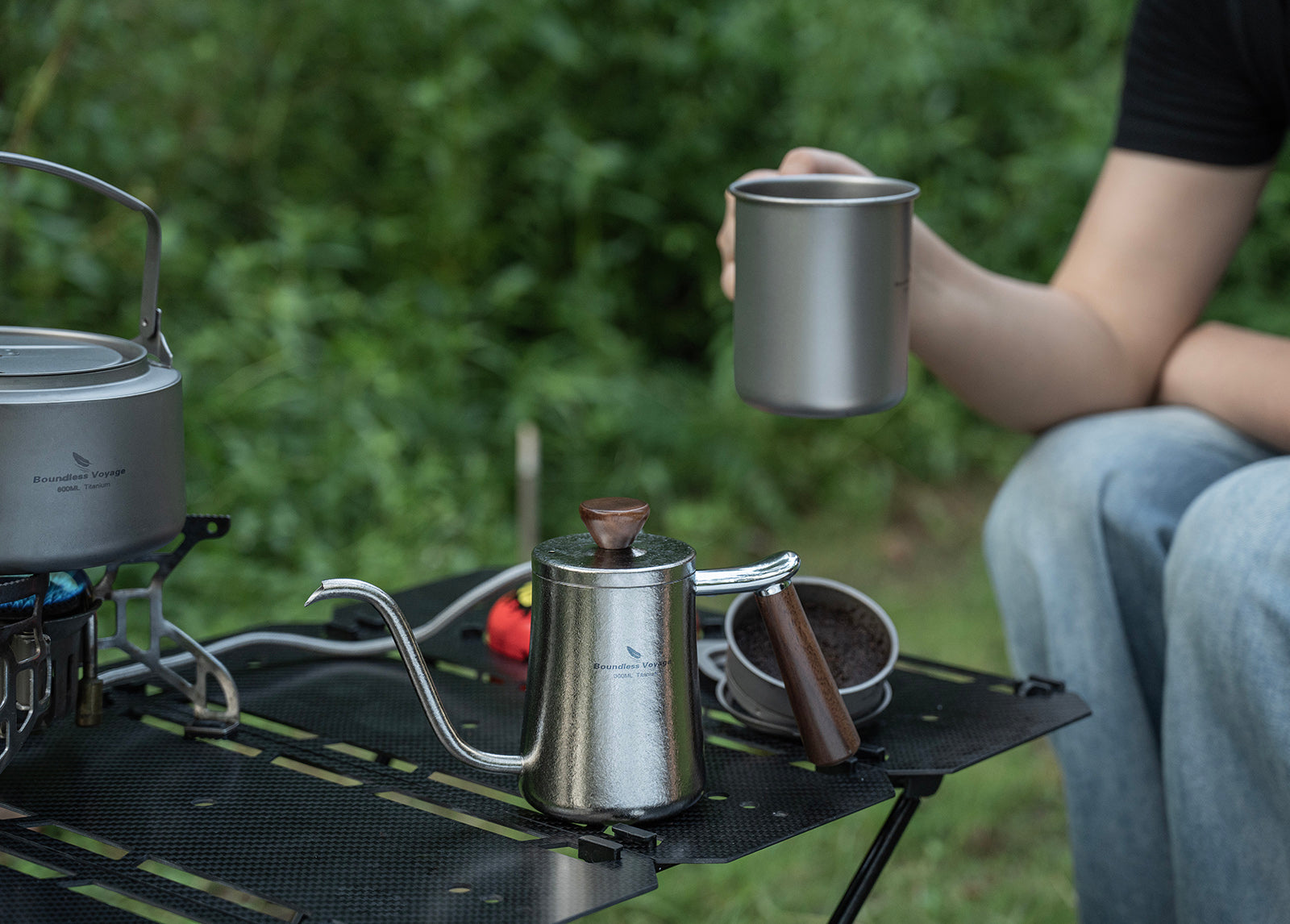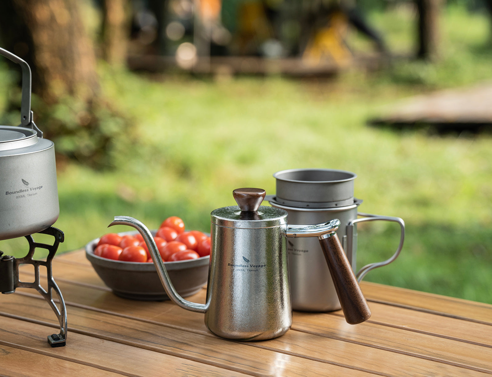 🏕 Boundless Voyage – 300ml Titanium Pour-Over Coffee Kettle