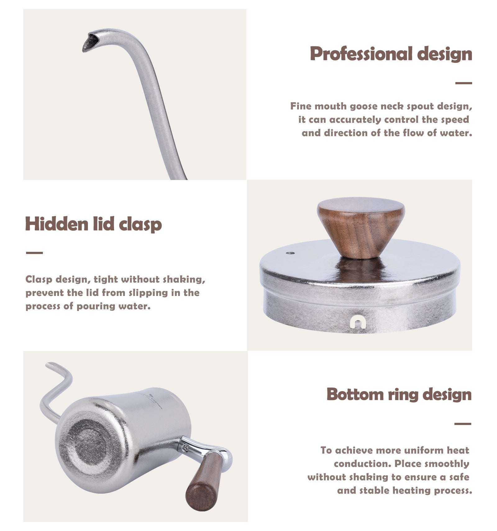 Ergonomic Beech Wood Handle: Comfortable, heat-resistant grip for precise pouring.