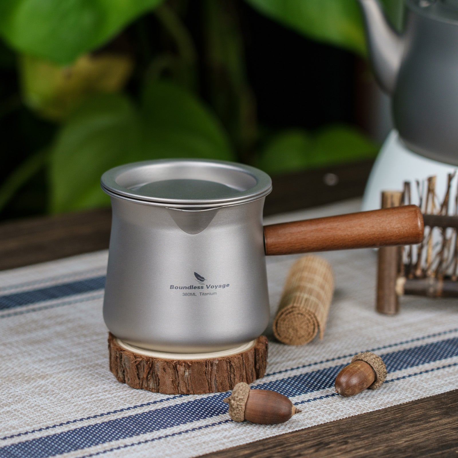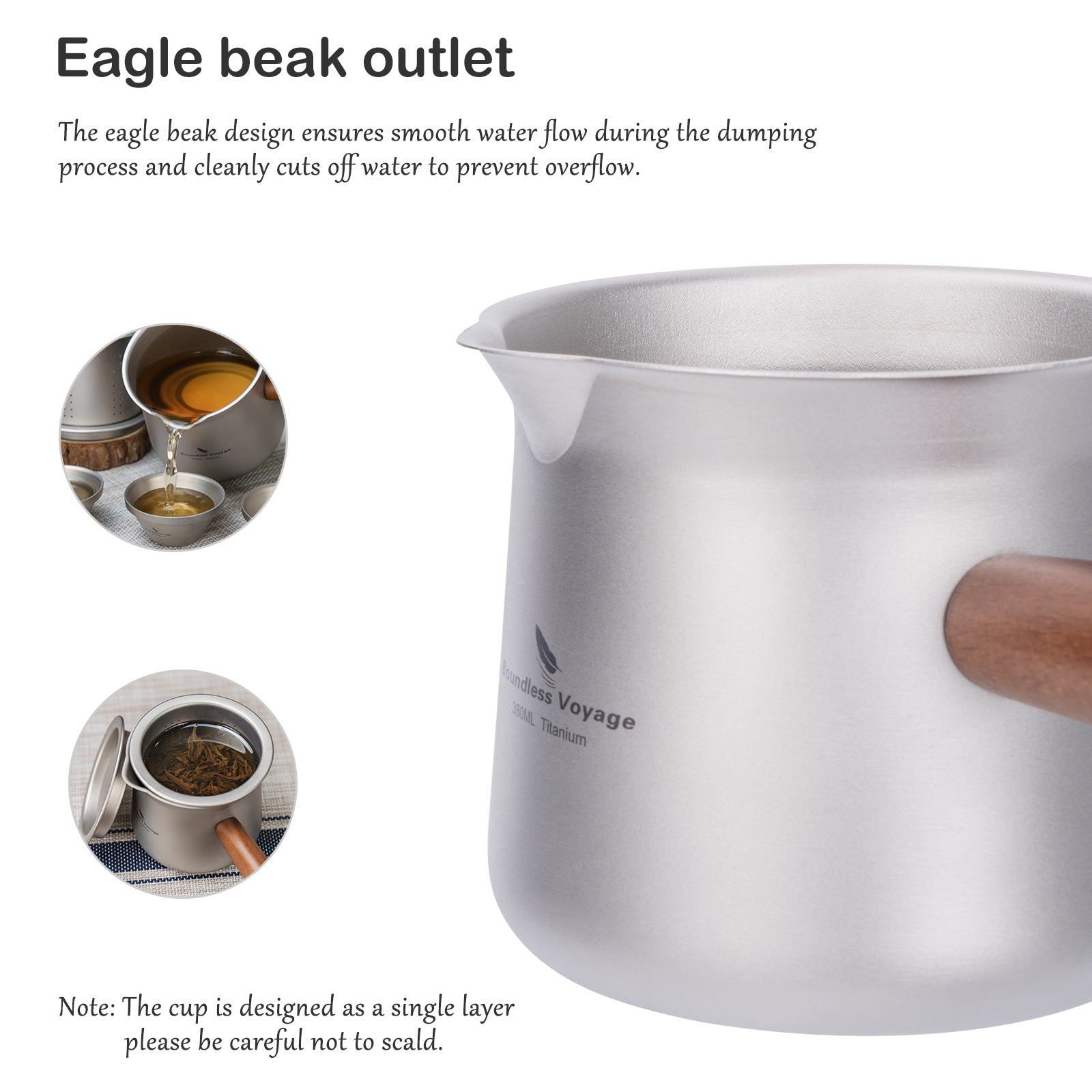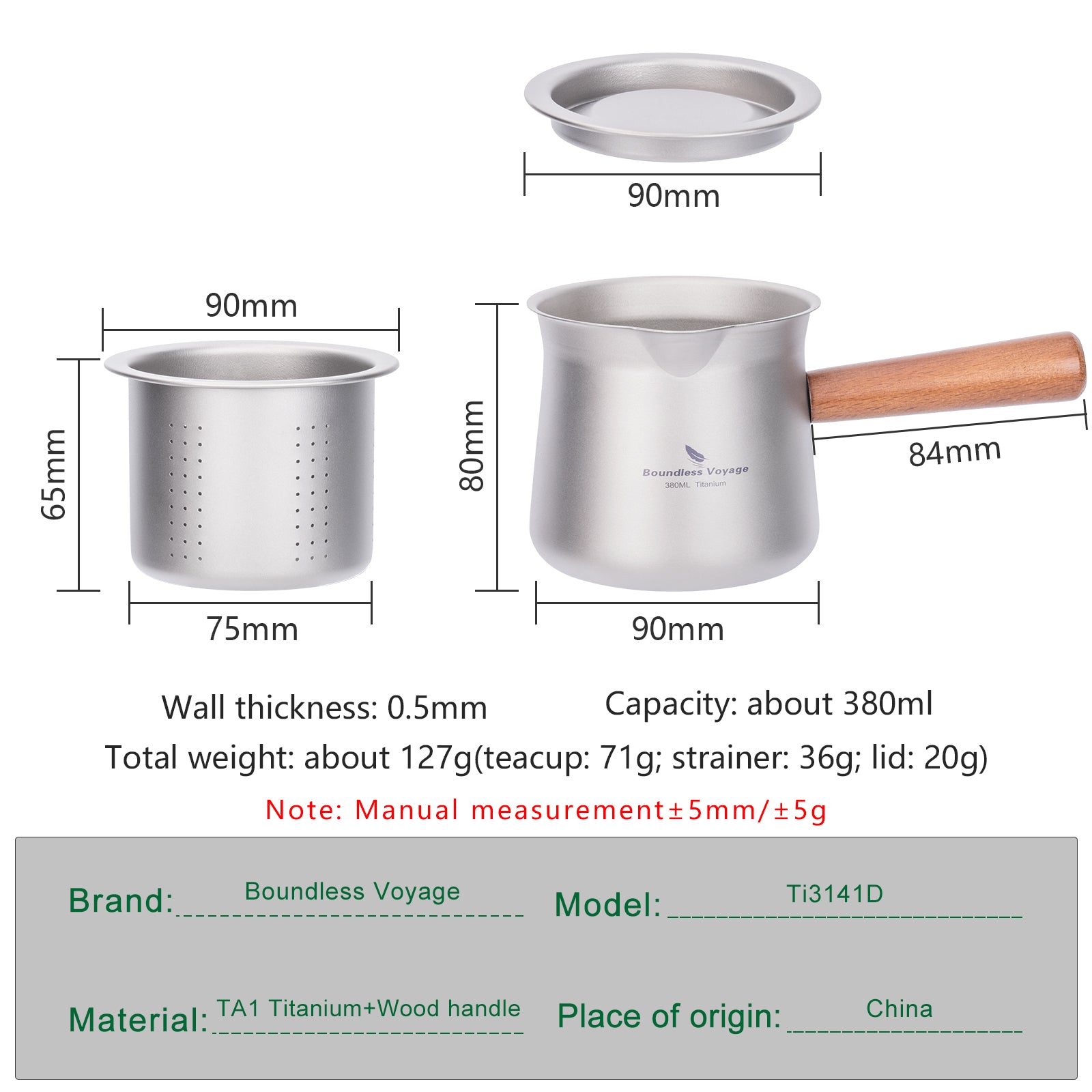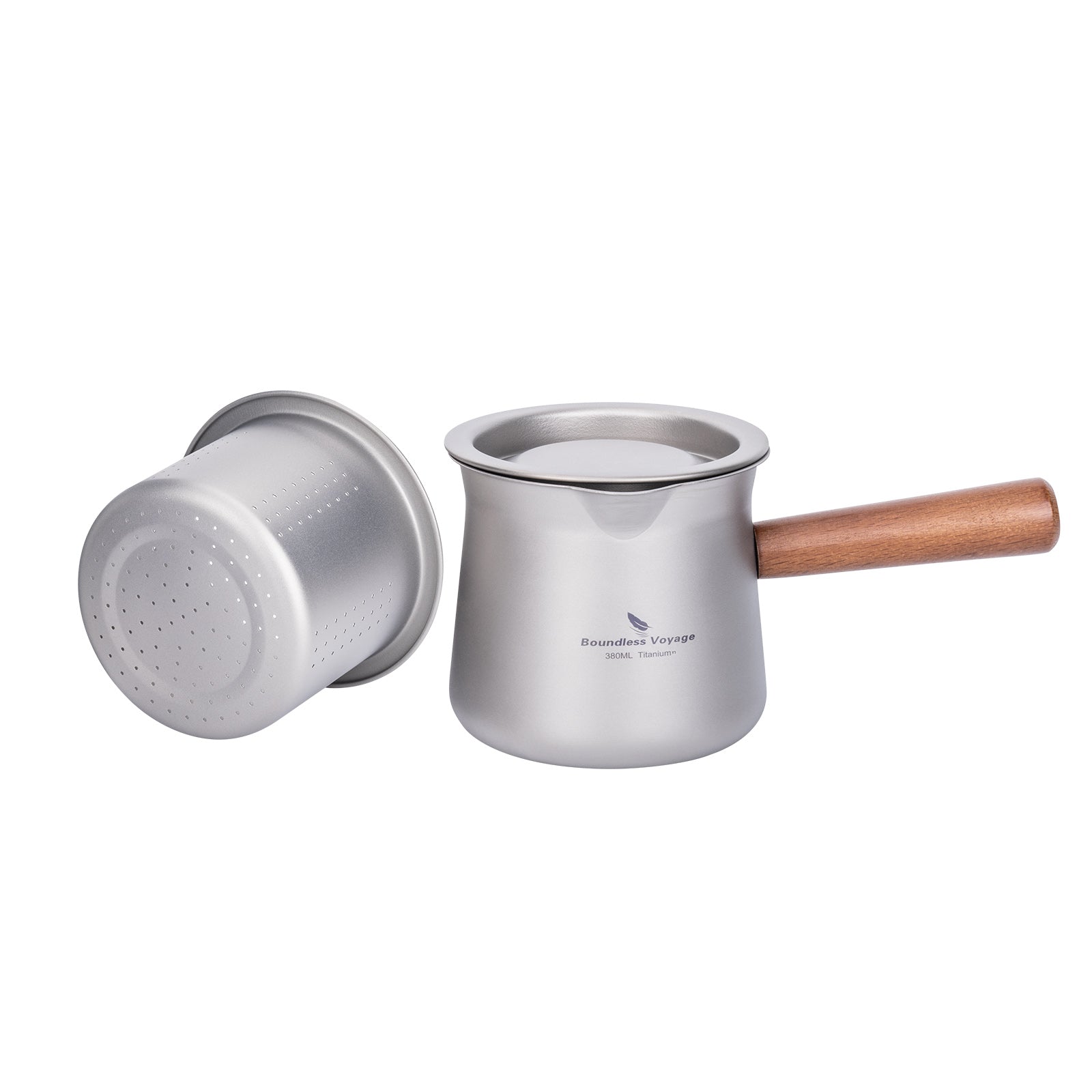 Boundless Voyage 380ML Titanium Cup with Strainer Mini Teacup Single Layer with Wooden Handle Ultralight Outdoors for Camping Hiking Water Cup