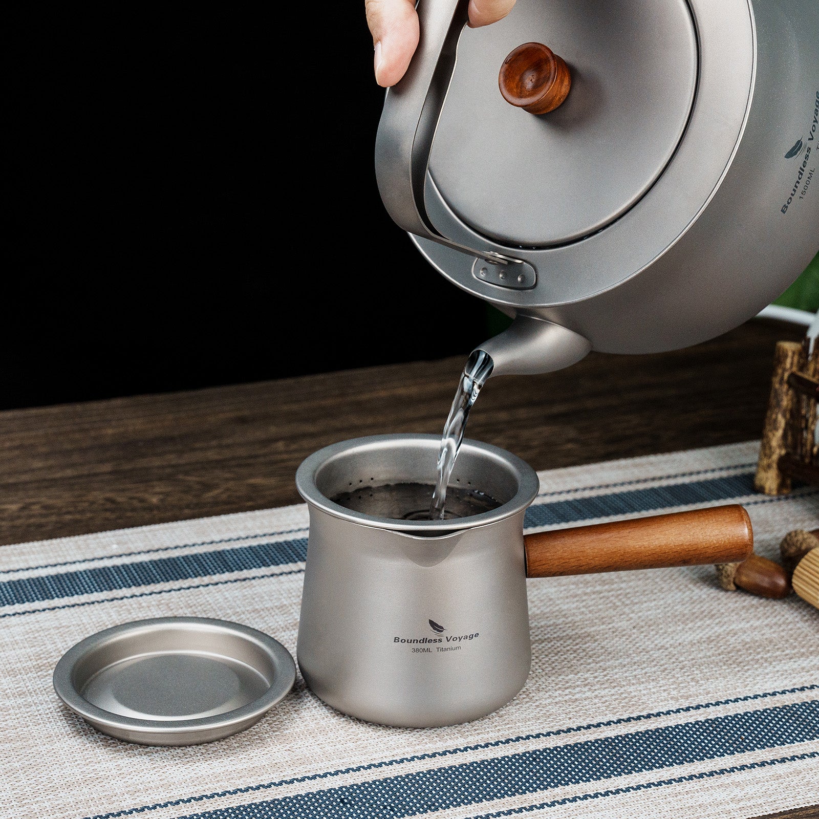 Convenient to carry-Equipped with a drawstring bag for easy storage. This teapot is super lightweight and can be easily carried and stored in a backpack. This cup can be used as a camping teapot or coffee pot for boiling water, tea, coffee, and hot drinks. Suitable for indoor and outdoor use.