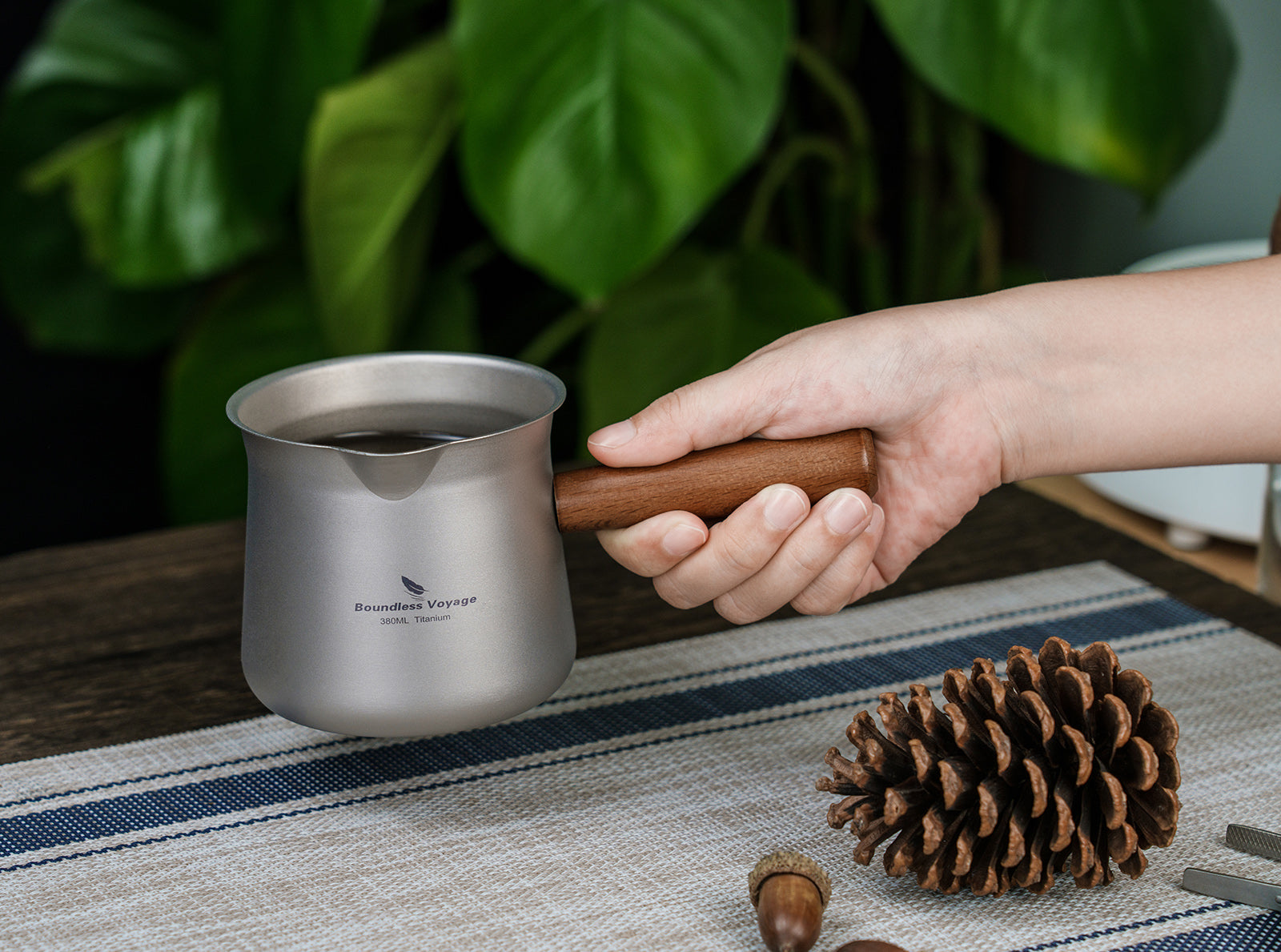 Detachable wooden handle-The handle is made of solid wood, which is both aesthetically pleasing and heat-resistant. When not in use, it can be disassembled and stored in a cup for compact storage during travel. Perfect for a cup of coffee while backpacking.