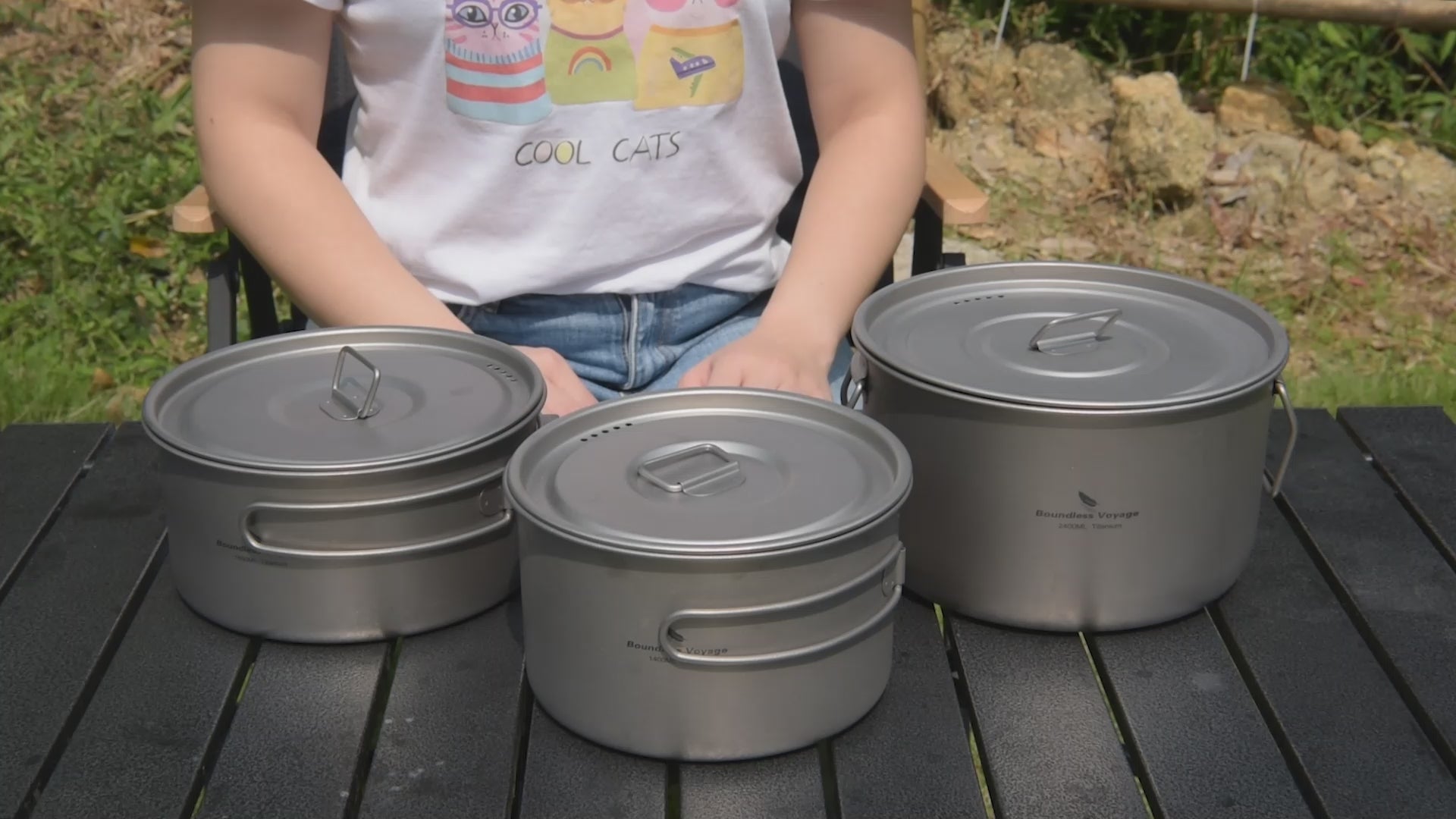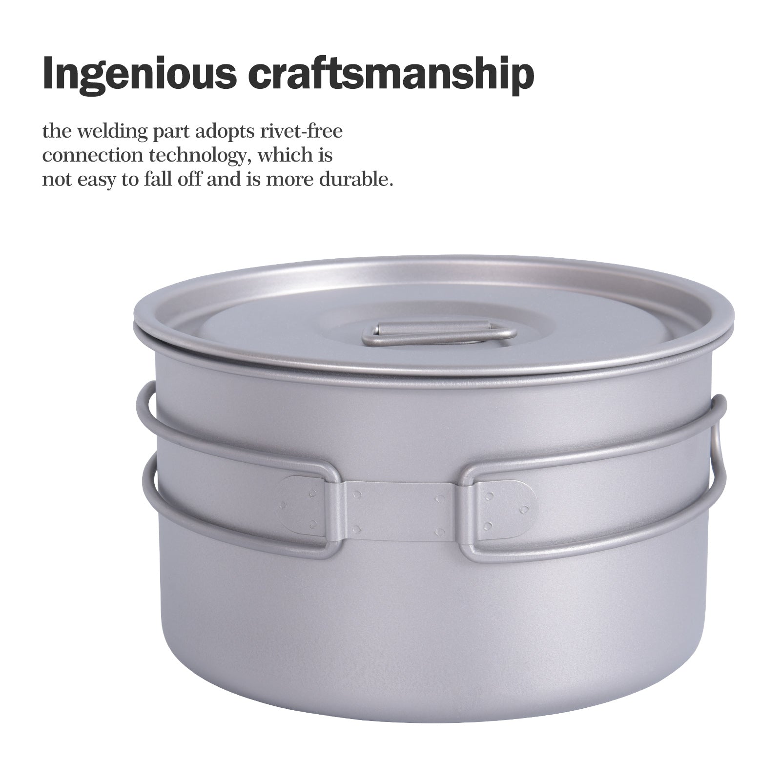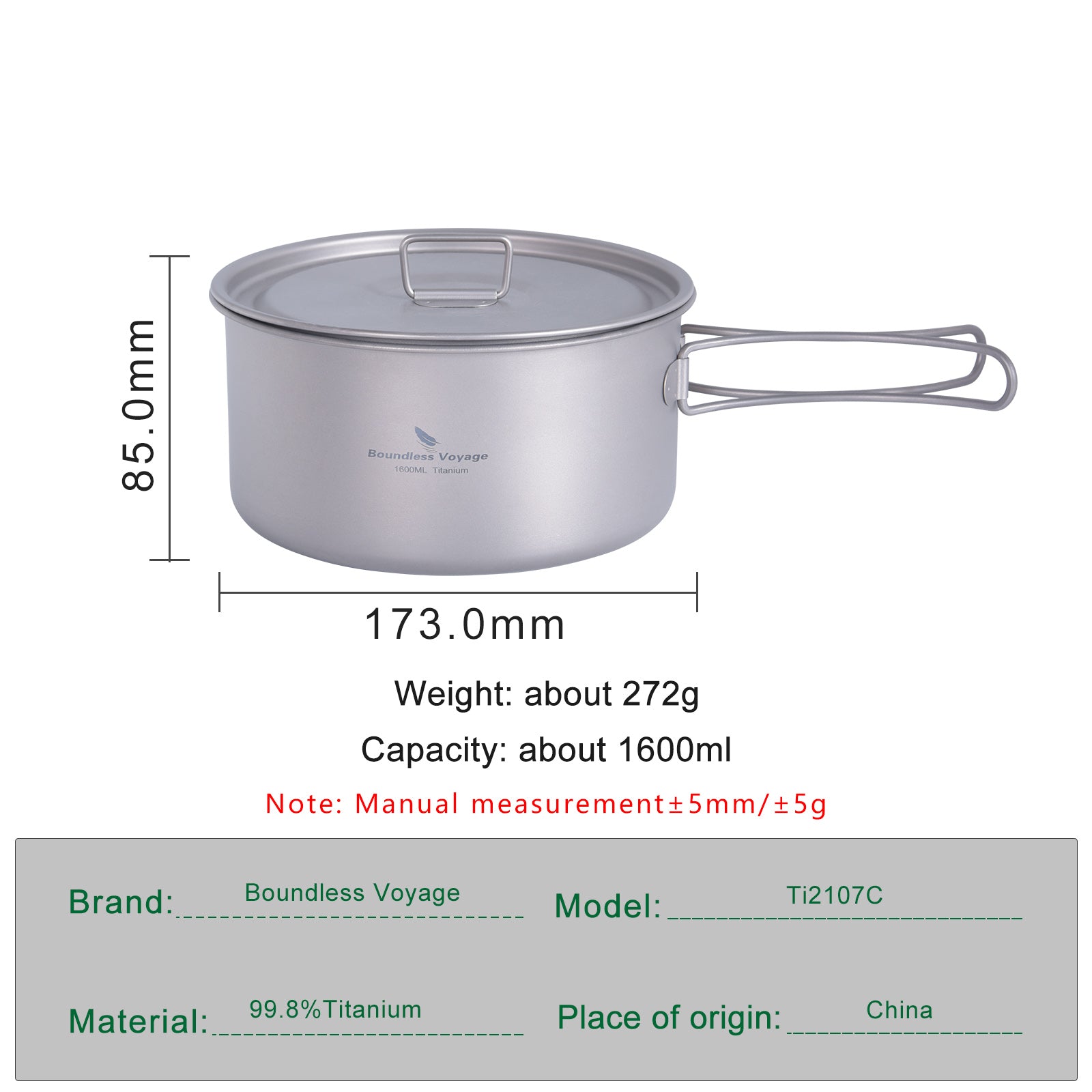 Boundless Voyage Lightweight 1600ml Titanium Pot Outdoor Portable Cooking Set hiking Backpacking Pot for Hiking Trekking Picnic Fishing Mountaineering