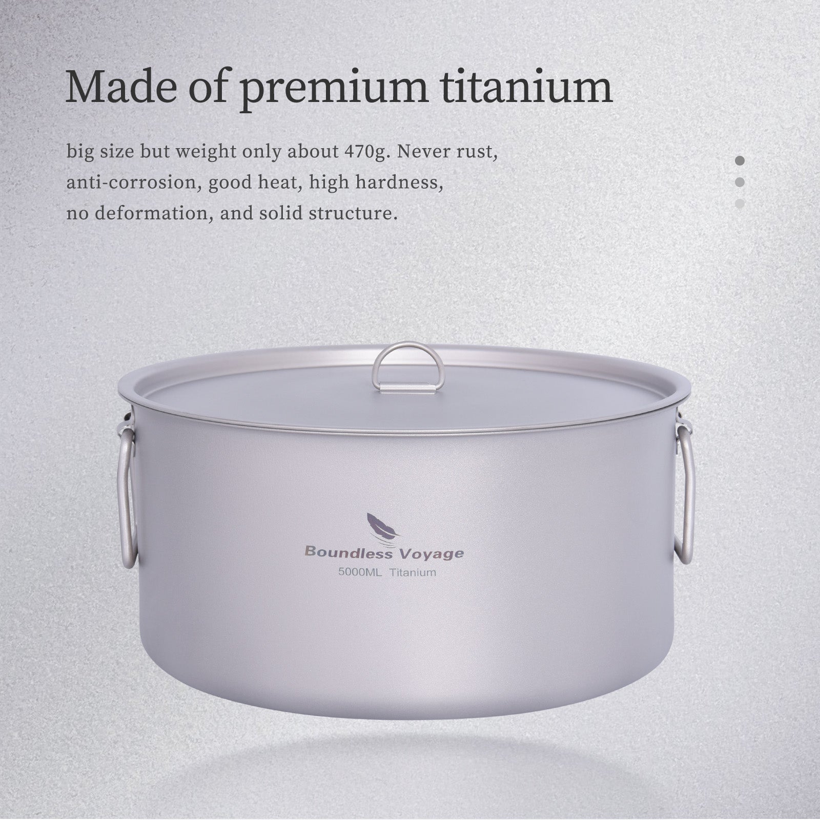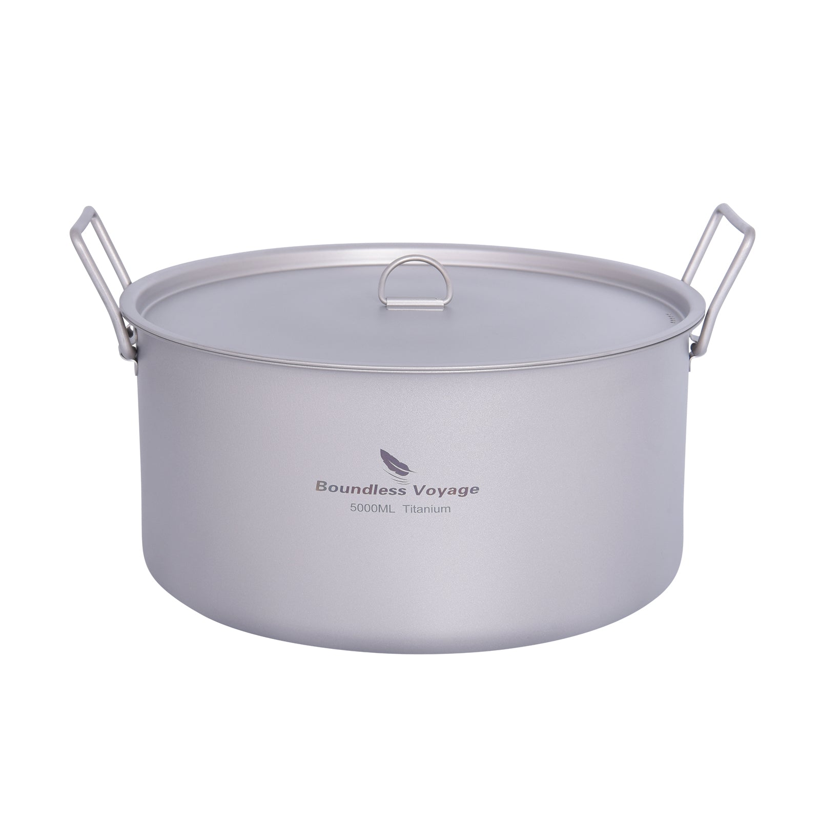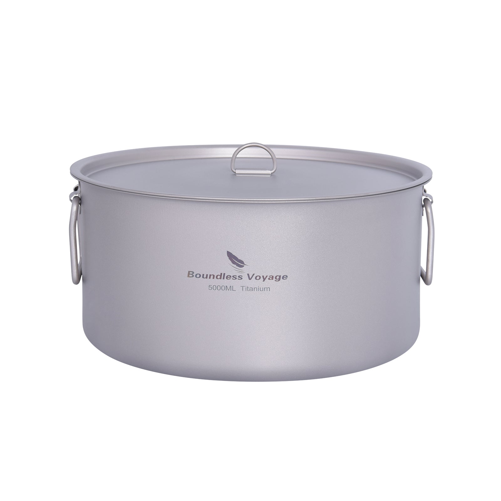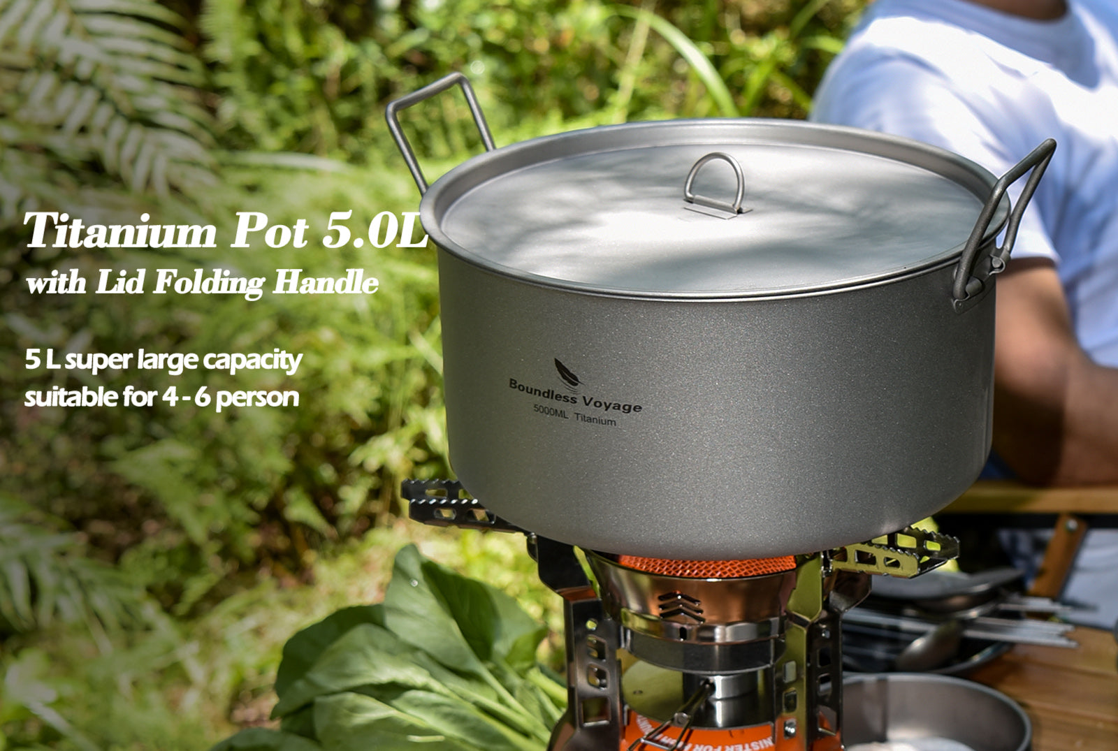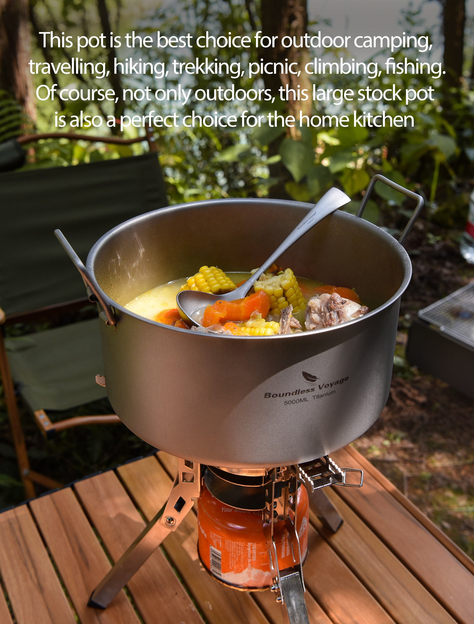 Boundless Voyage Outdoor Camping Titanium Pot 5.0L Stockpot with Lid Folding Handle Hiking Picnic Portable Big Capacity Soup Pot Home Kitchen