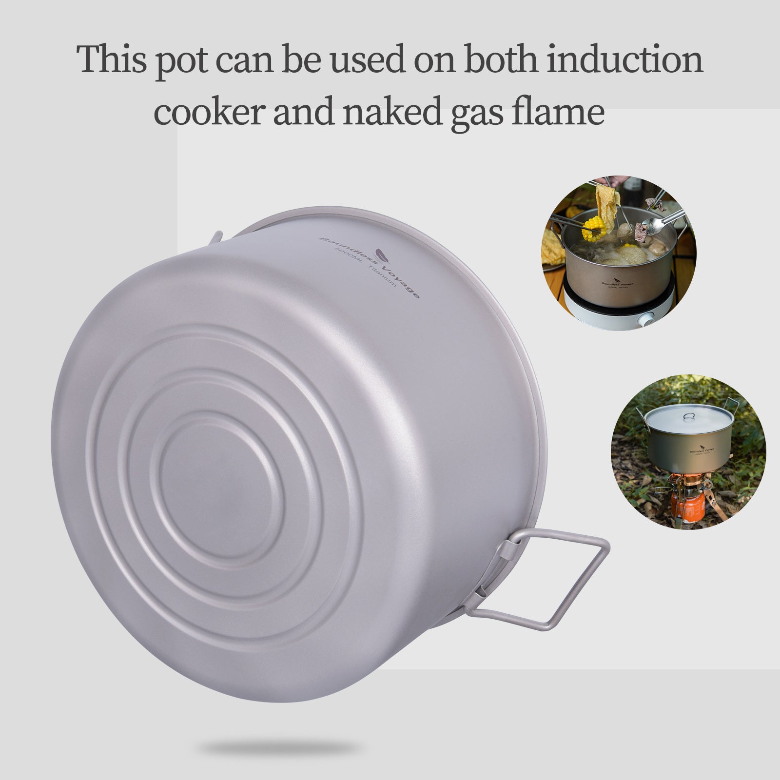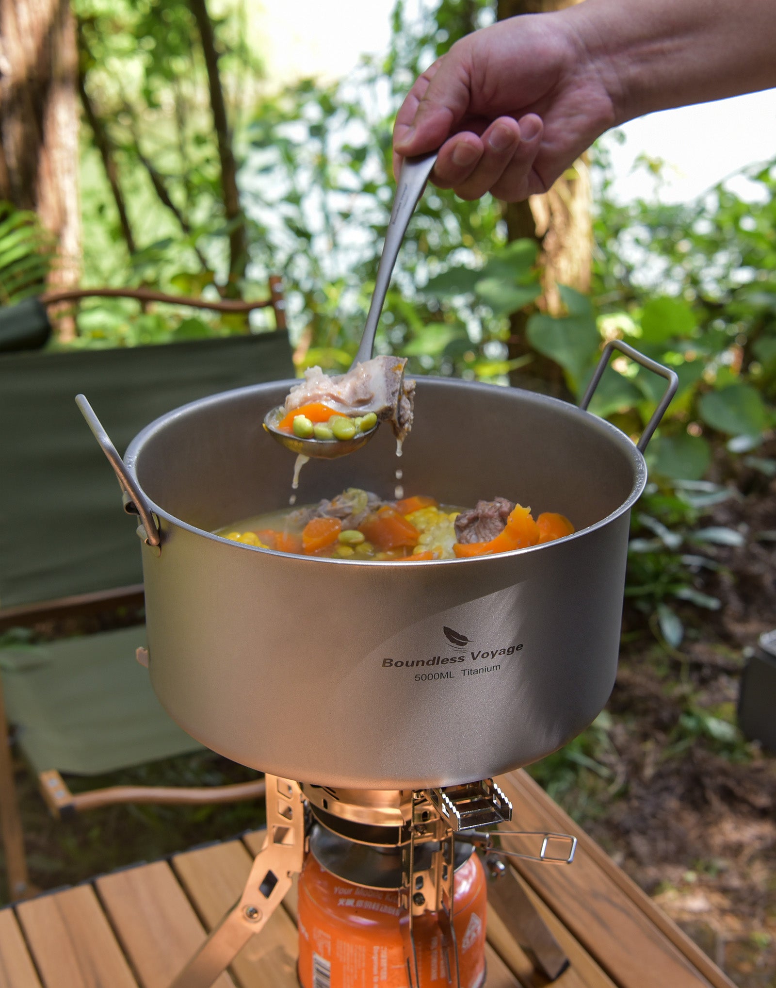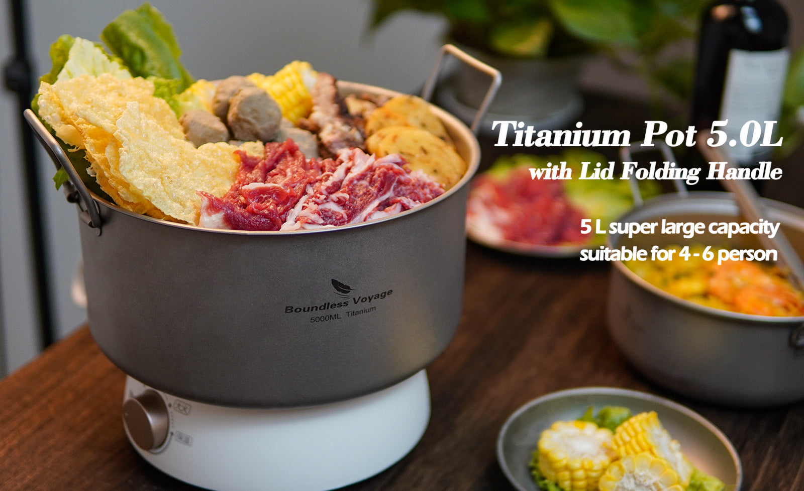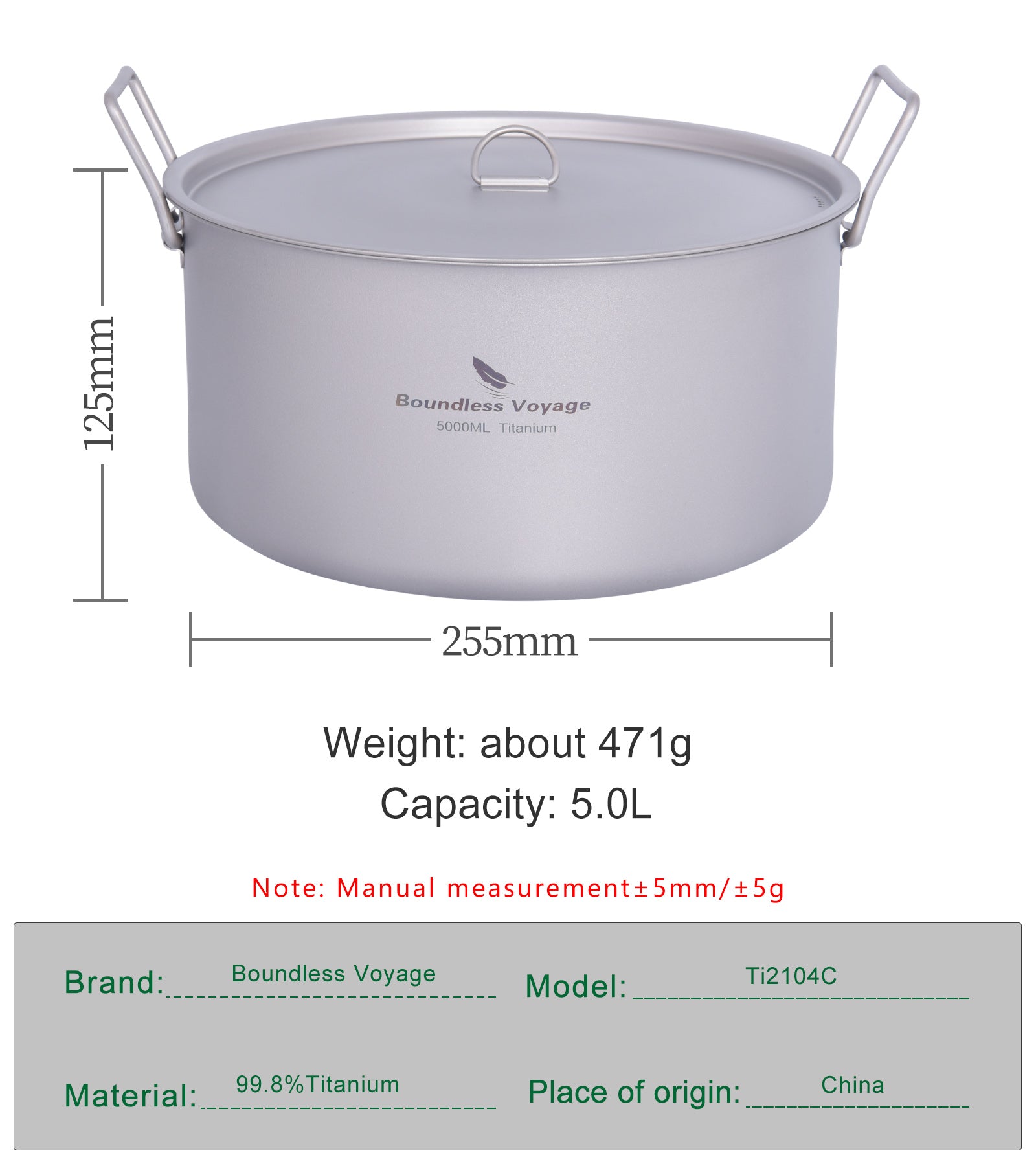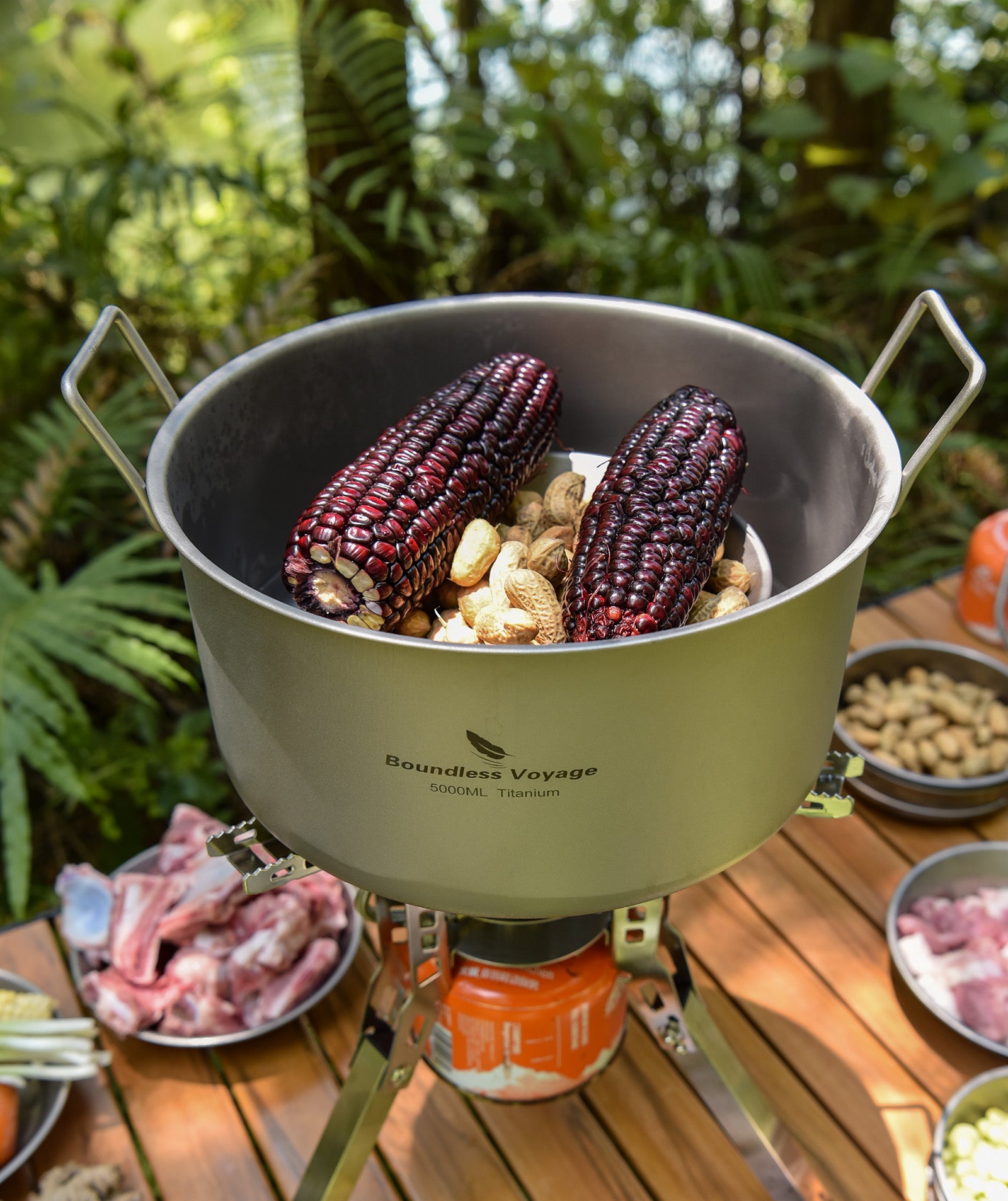 Boundless Voyage Outdoor Camping Titanium Pot 5.0L Stockpot with Lid Folding Handle Hiking Picnic Portable Big Capacity Soup Pot Home Kitchen