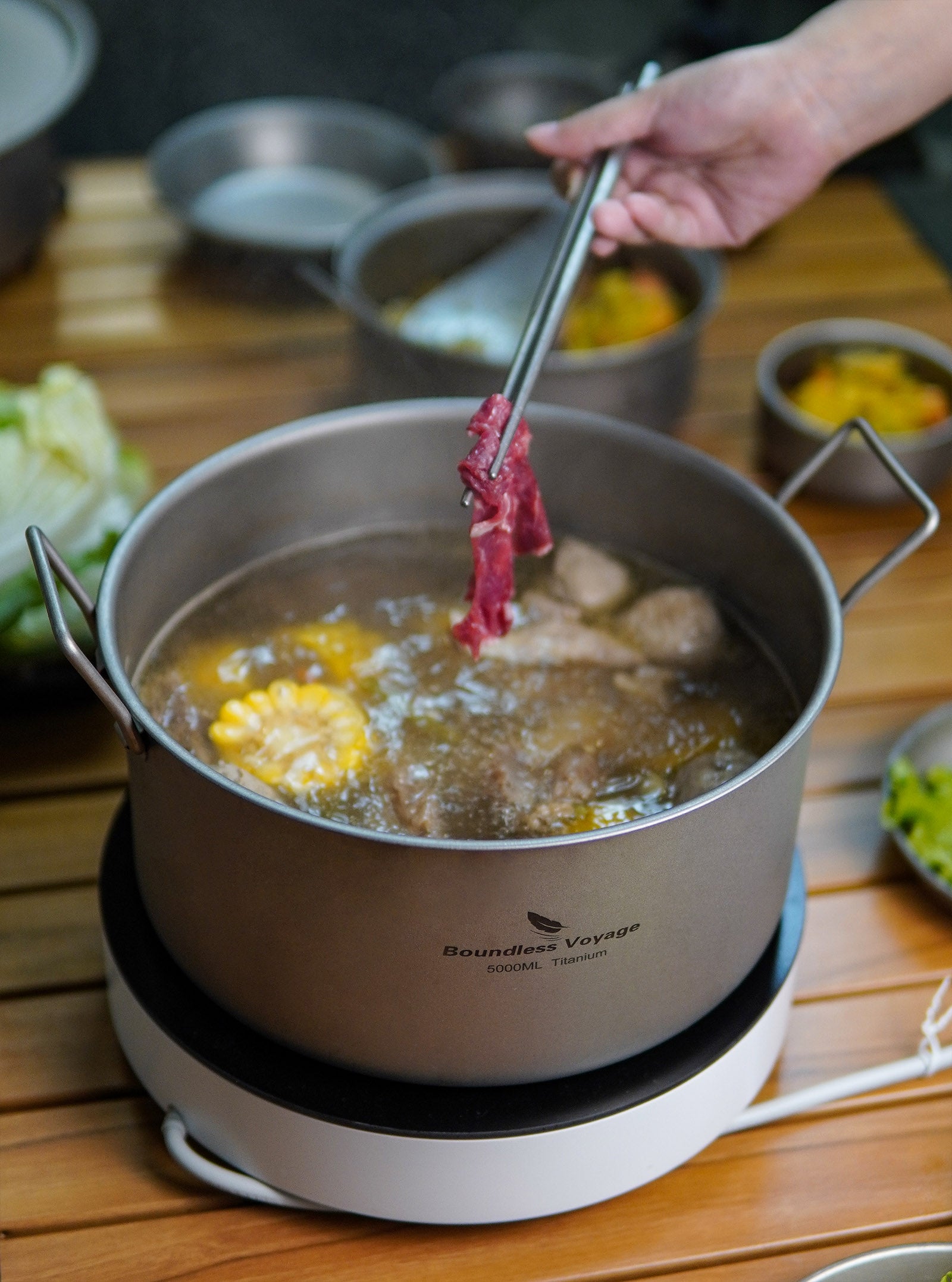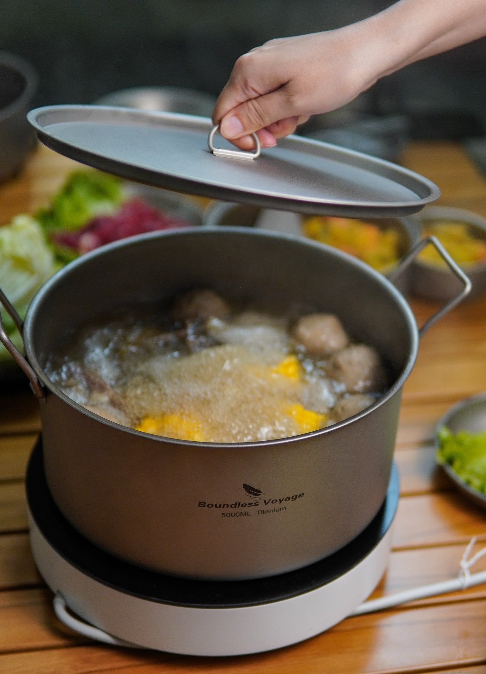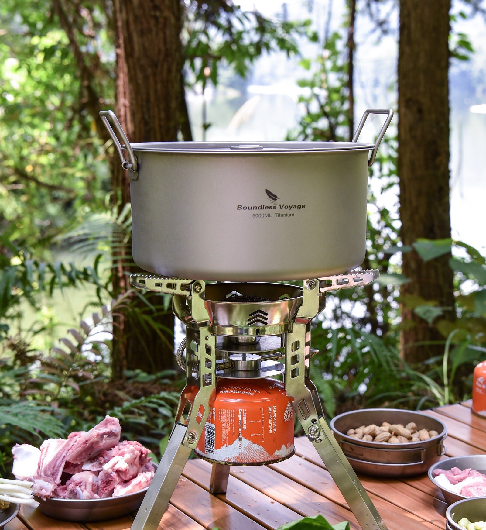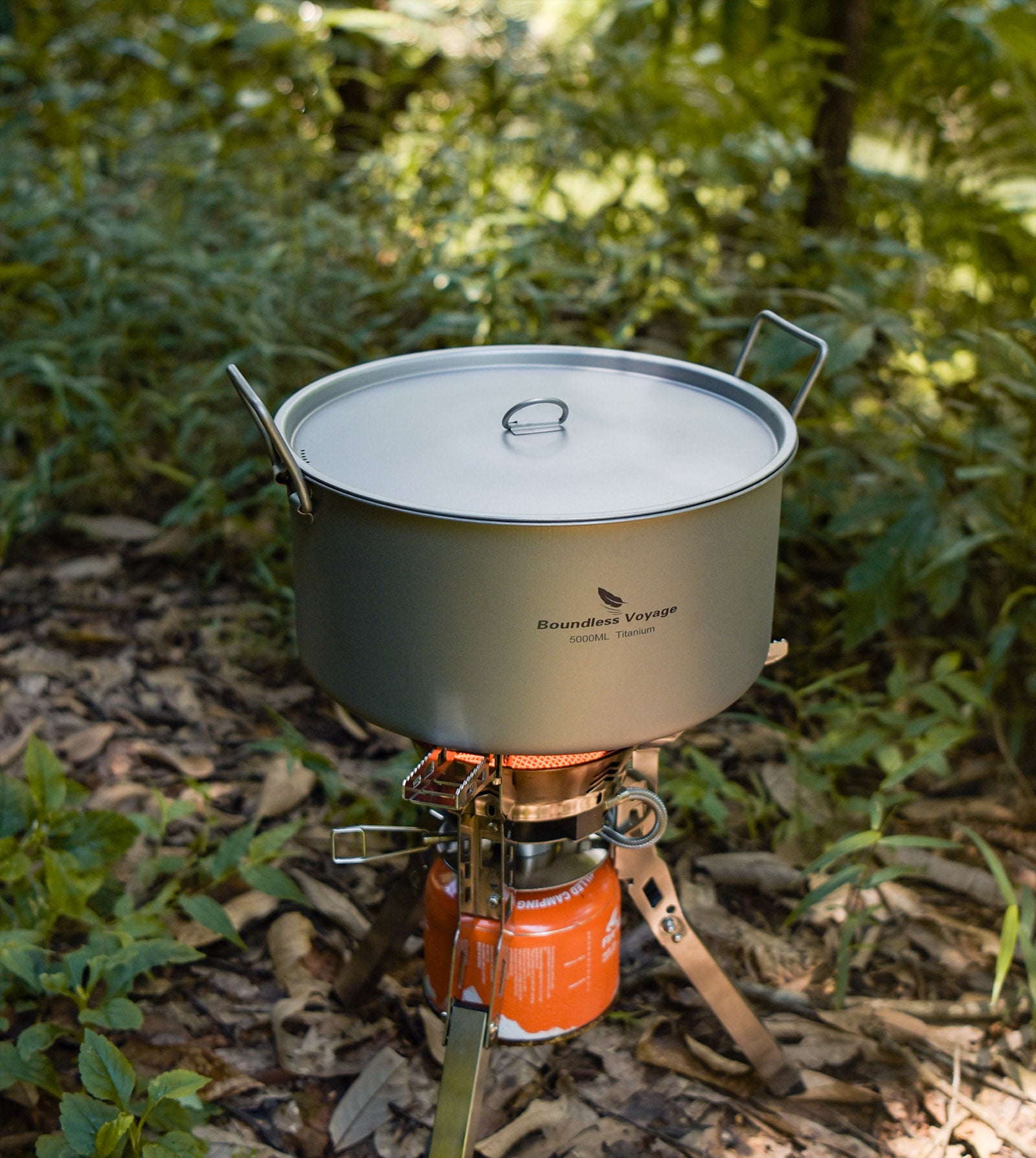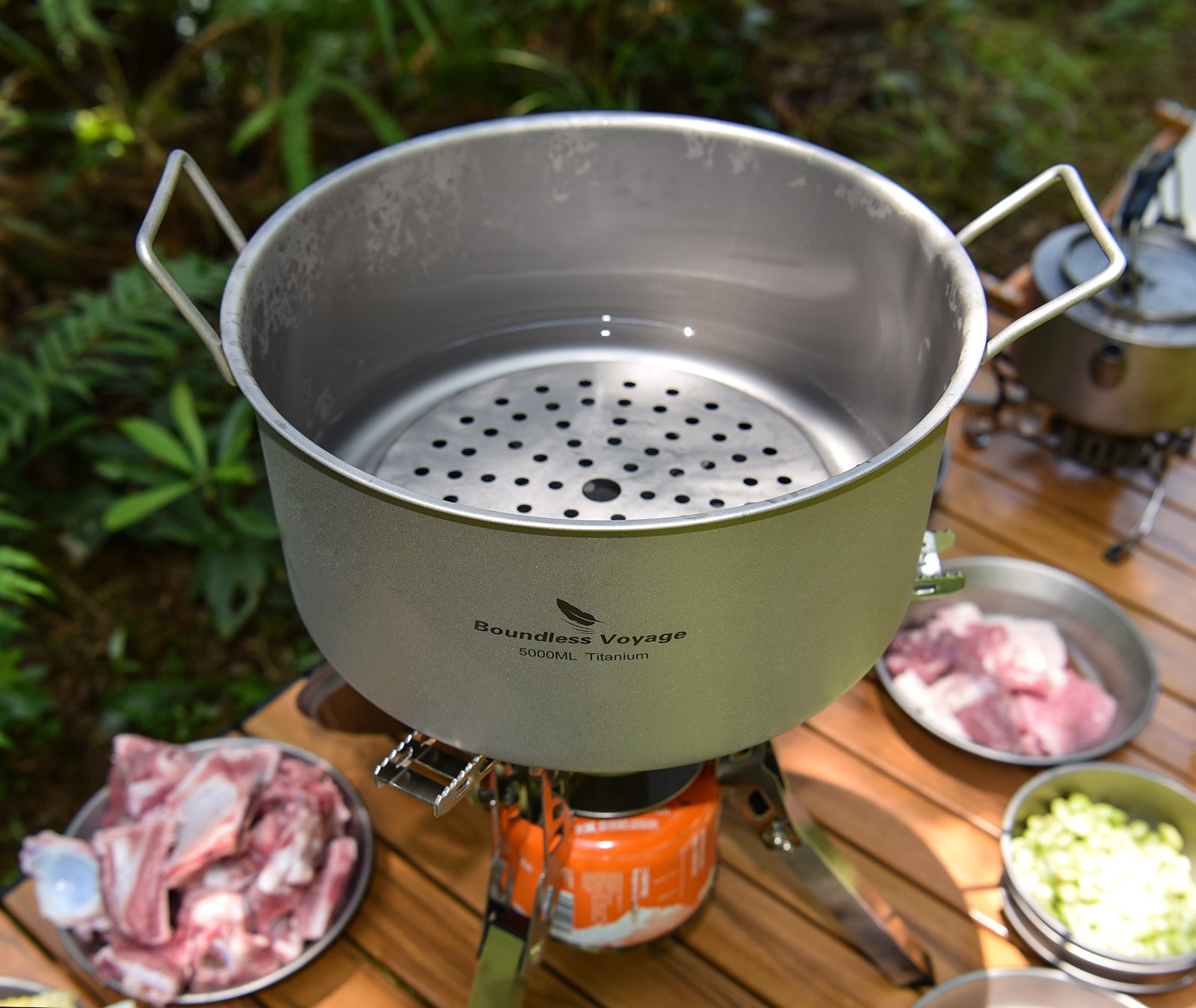 Boundless Voyage Outdoor Camping Titanium Pot 5.0L Stockpot with Lid Folding Handle Hiking Picnic Portable Big Capacity Soup Pot Home Kitchen