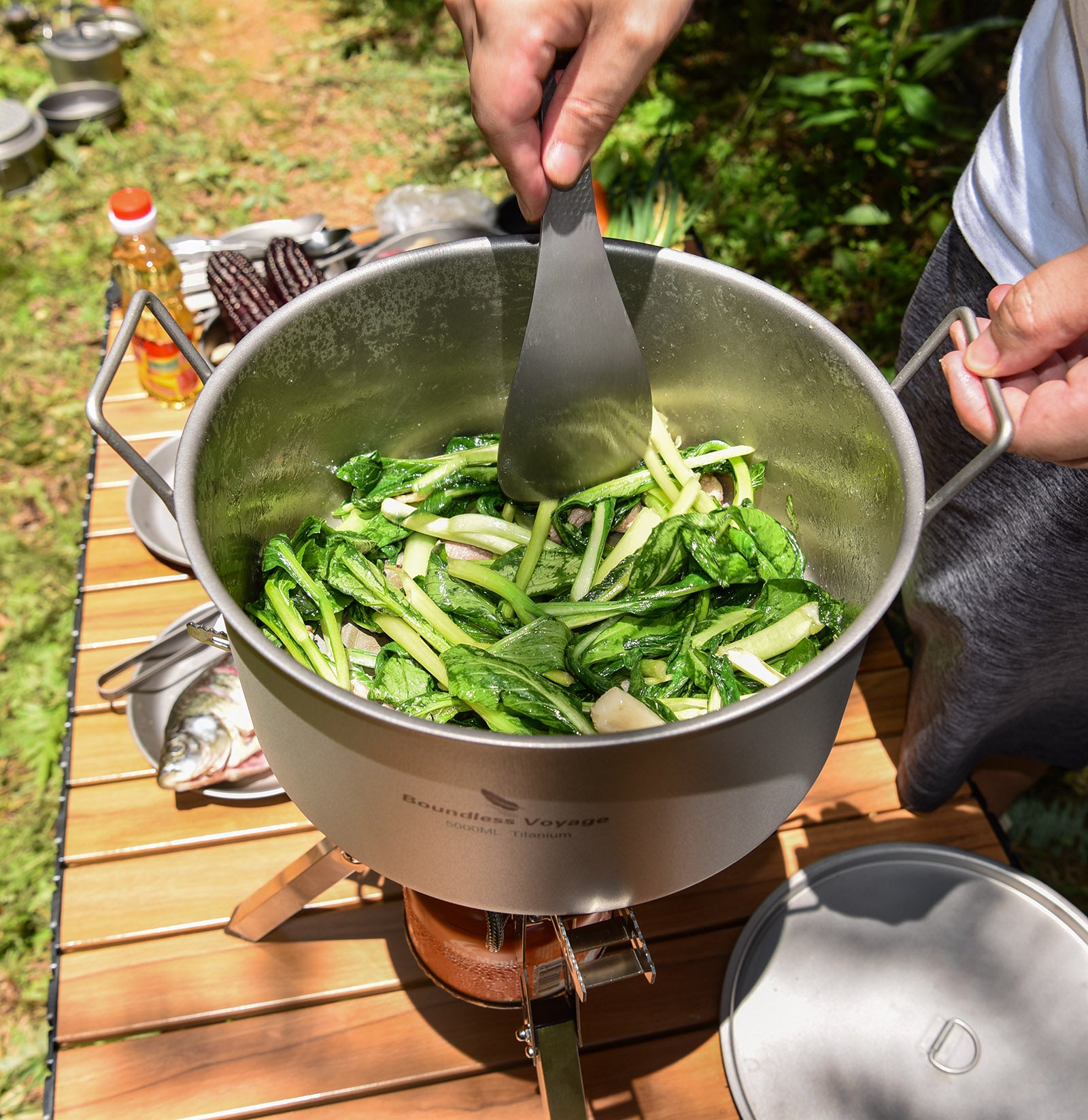 Made of premium titanium, big size but weight only about 470g. Never rust, anti-corrosion, good heat, high hardness, no deformation, and solid structure.