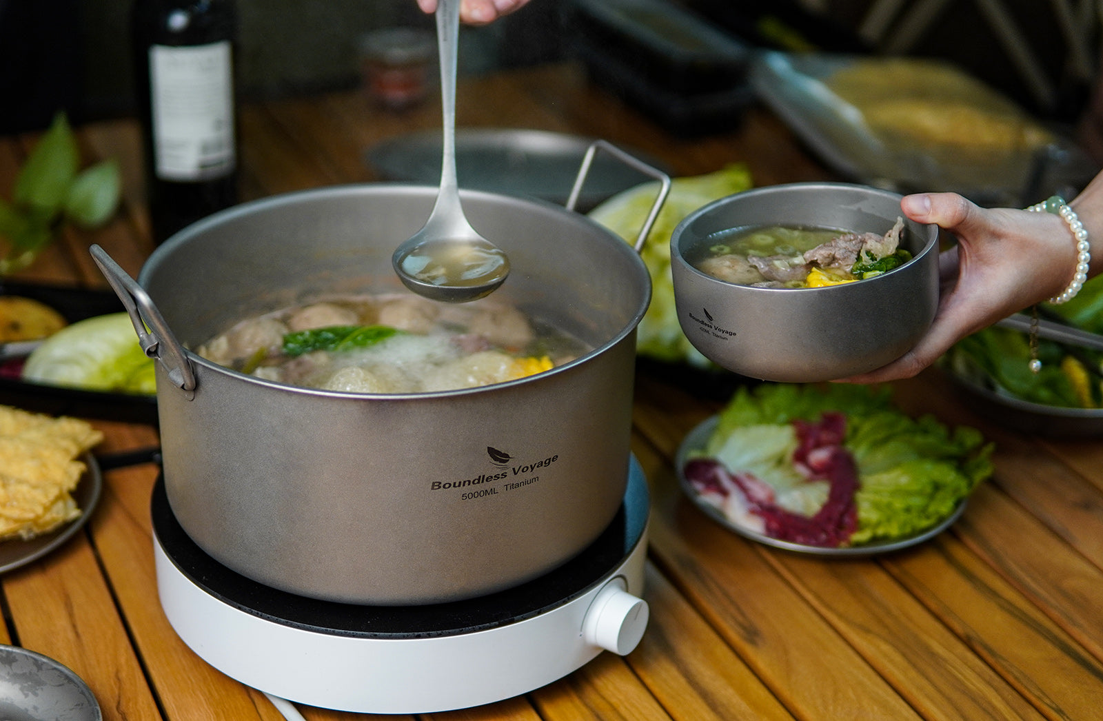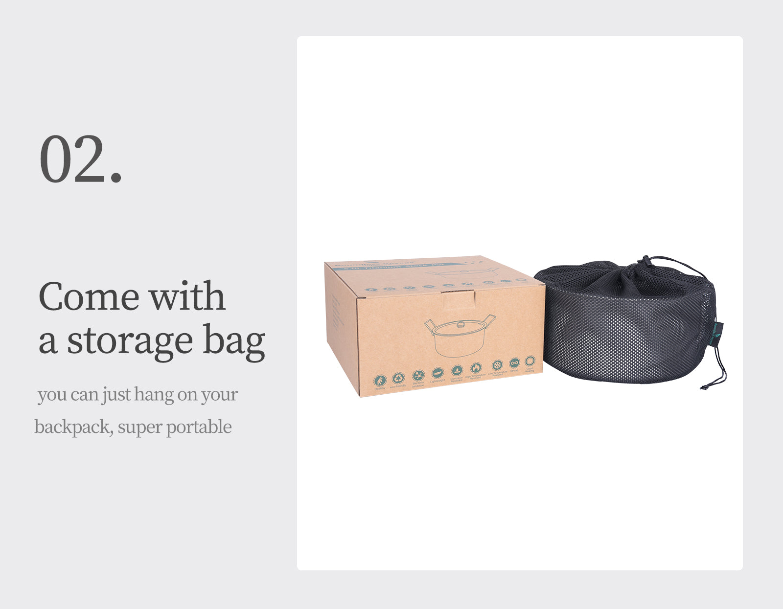 Come with a storage bag, you can just hang on your backpack, super portable. This pot is the best choice for outdoor camping, travelling, hiking, trekking, picnic, climbing, fishing. Of course, not only outdoors, this large stock pot is also a perfect choice for the home kitchen.