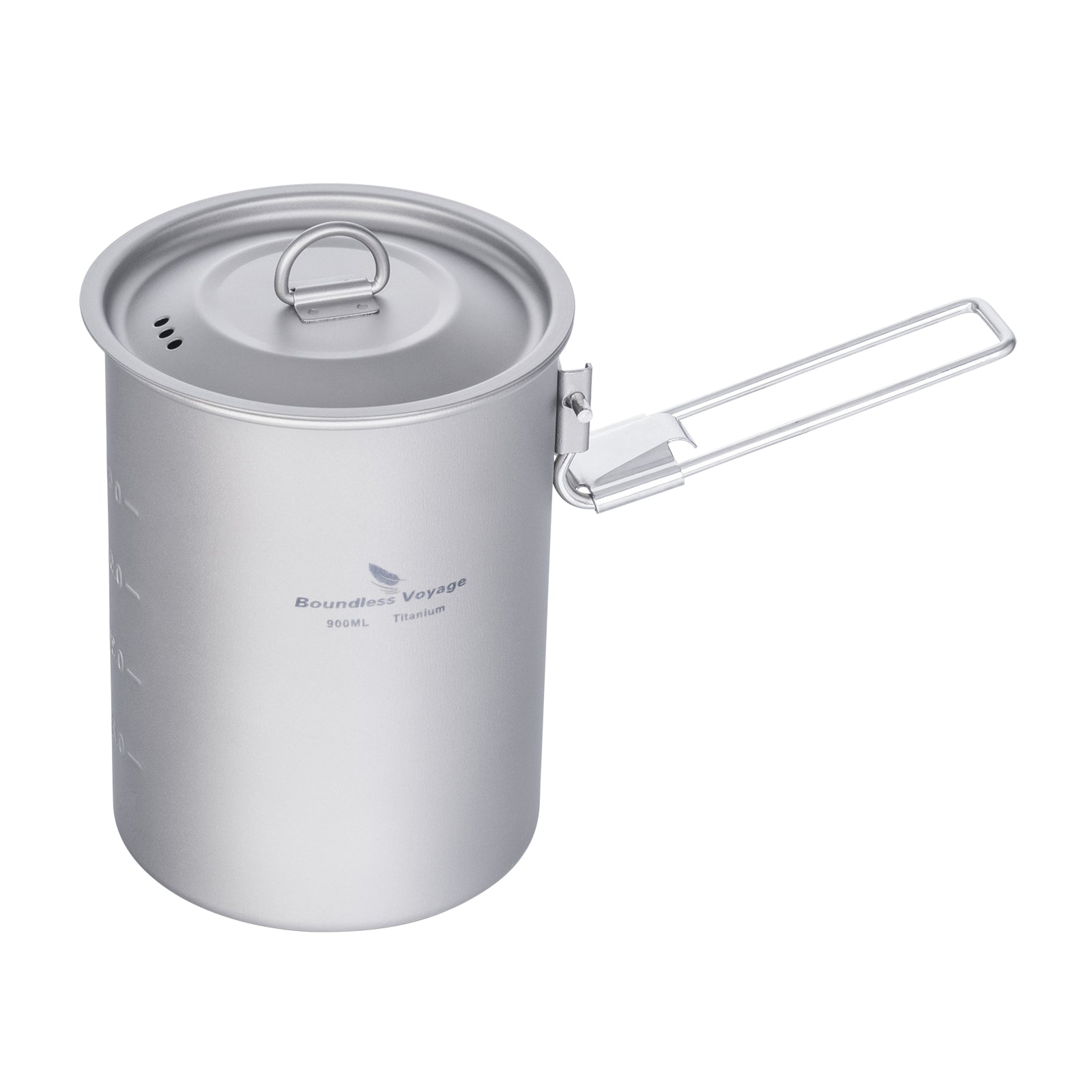 Boundless Voyage Outdoor Camping Titanium Pot Bowl Cup with Lid Folding Handle Hiking Picnic Water Rice Food 900ml