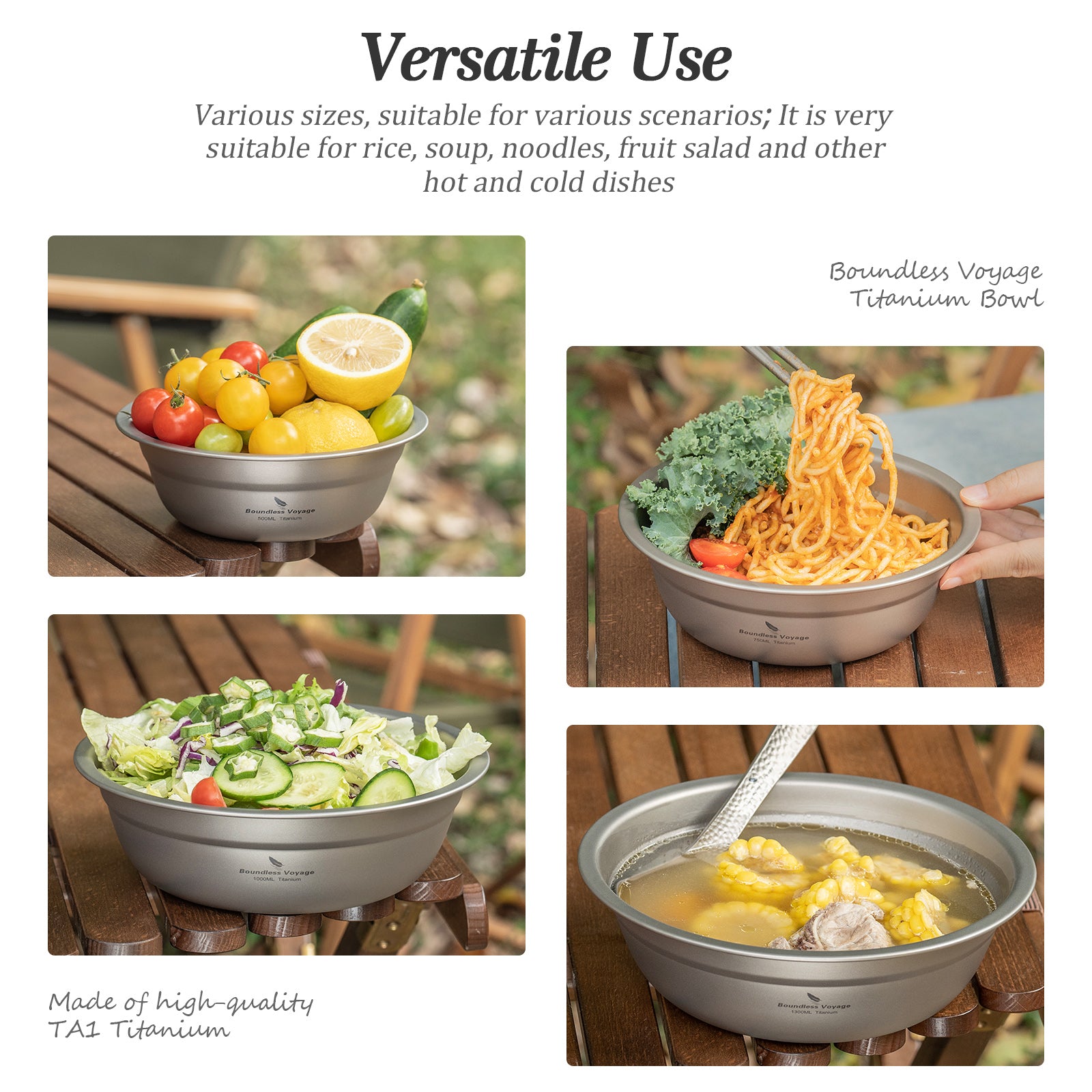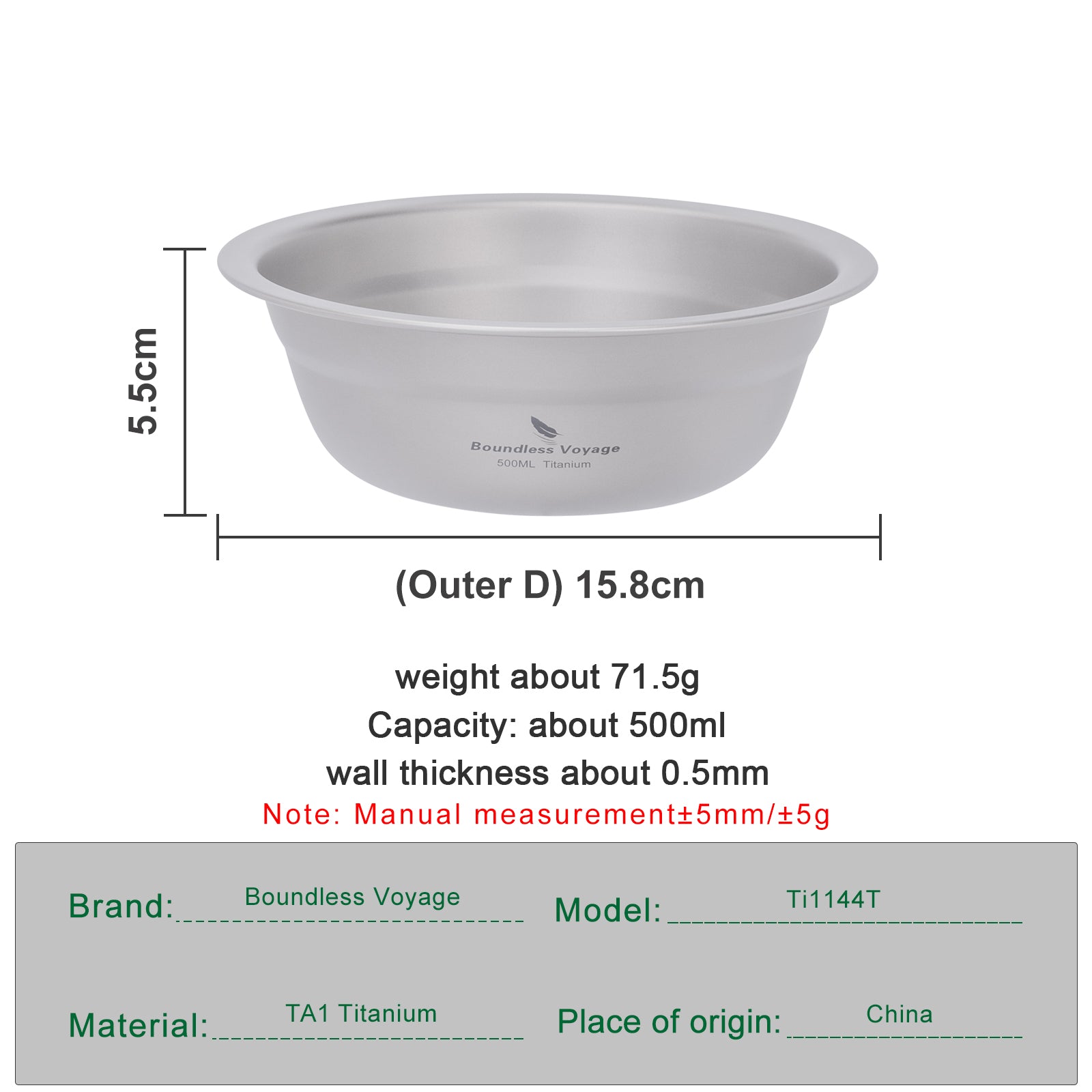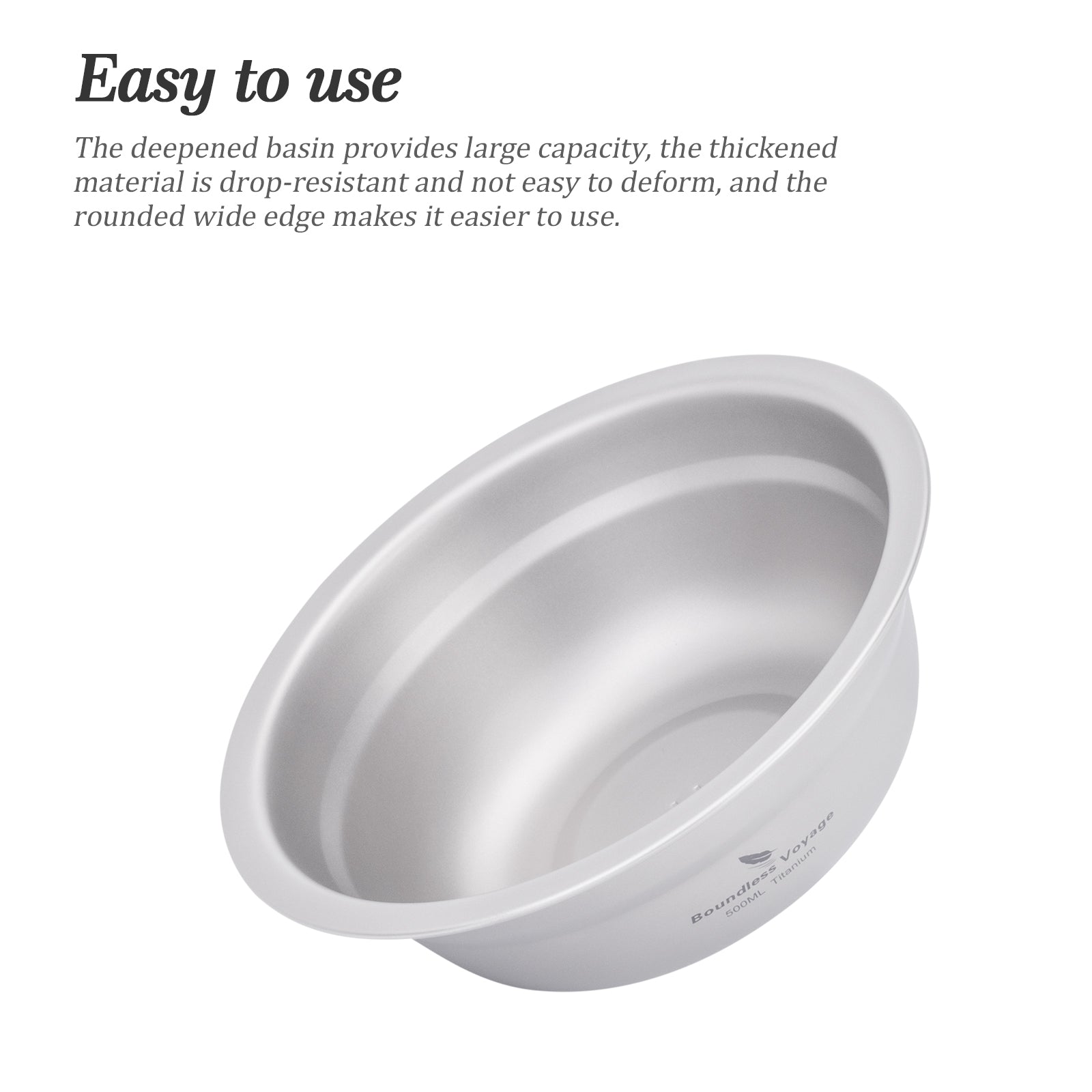 Boundless Voyage 500ml Titanium Bowl Rice Soup Salad Serving Bowl Ultralight Outdoor Camping Travel Durable Portable Tableware