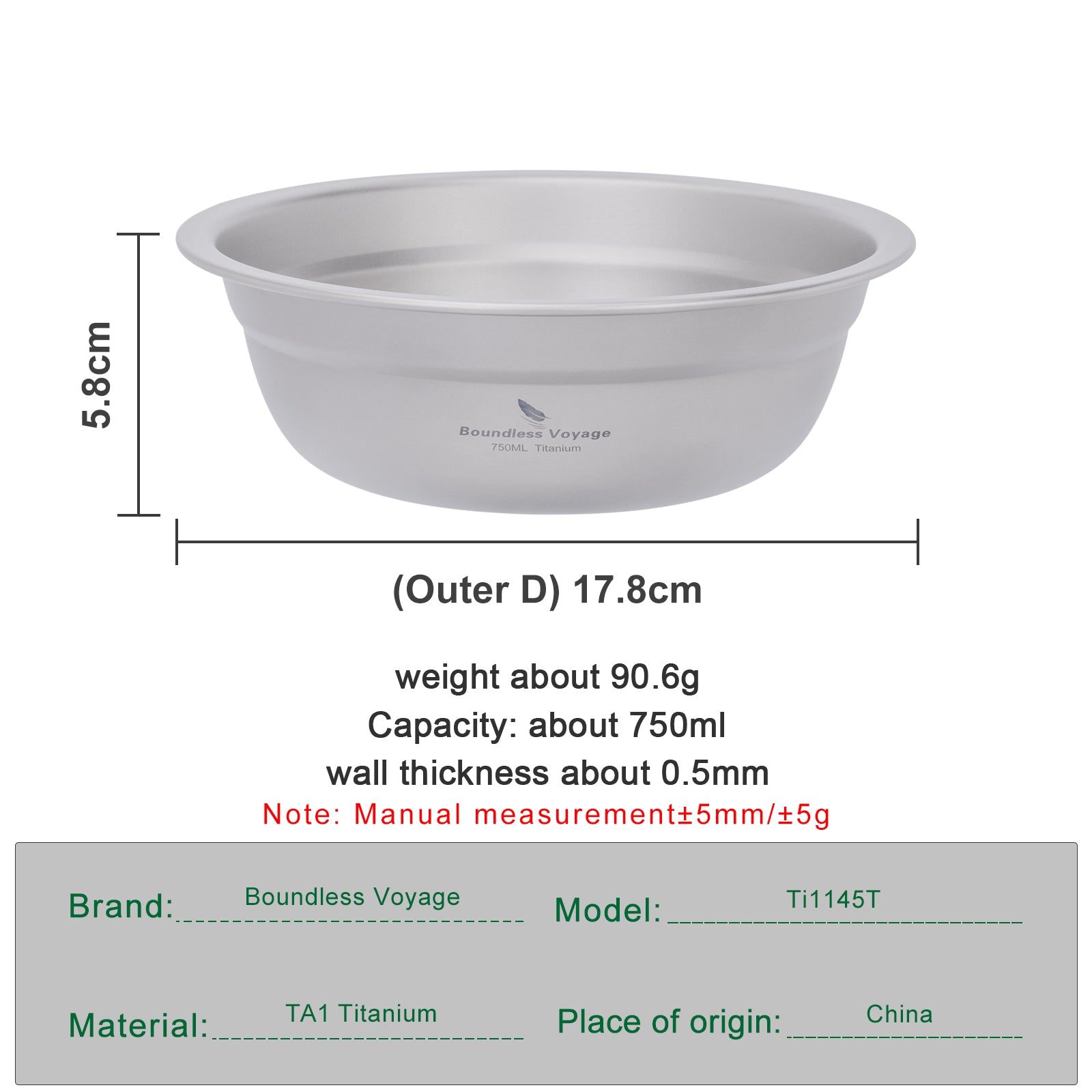Boundless Voyage 750ml Titanium Bowl Rice Soup Salad Serving Bowl Ultralight Outdoor Camping Travel Durable Portable Tableware