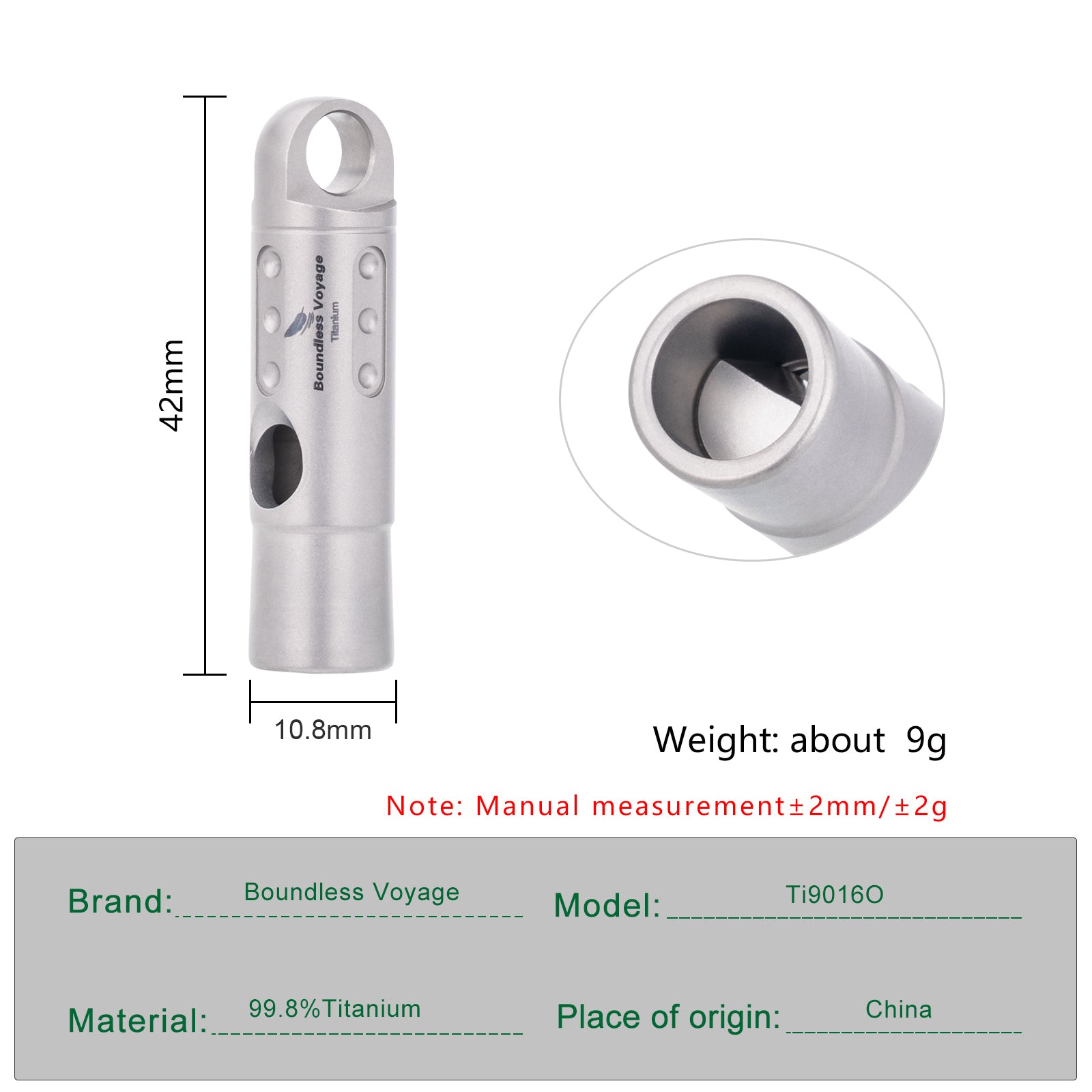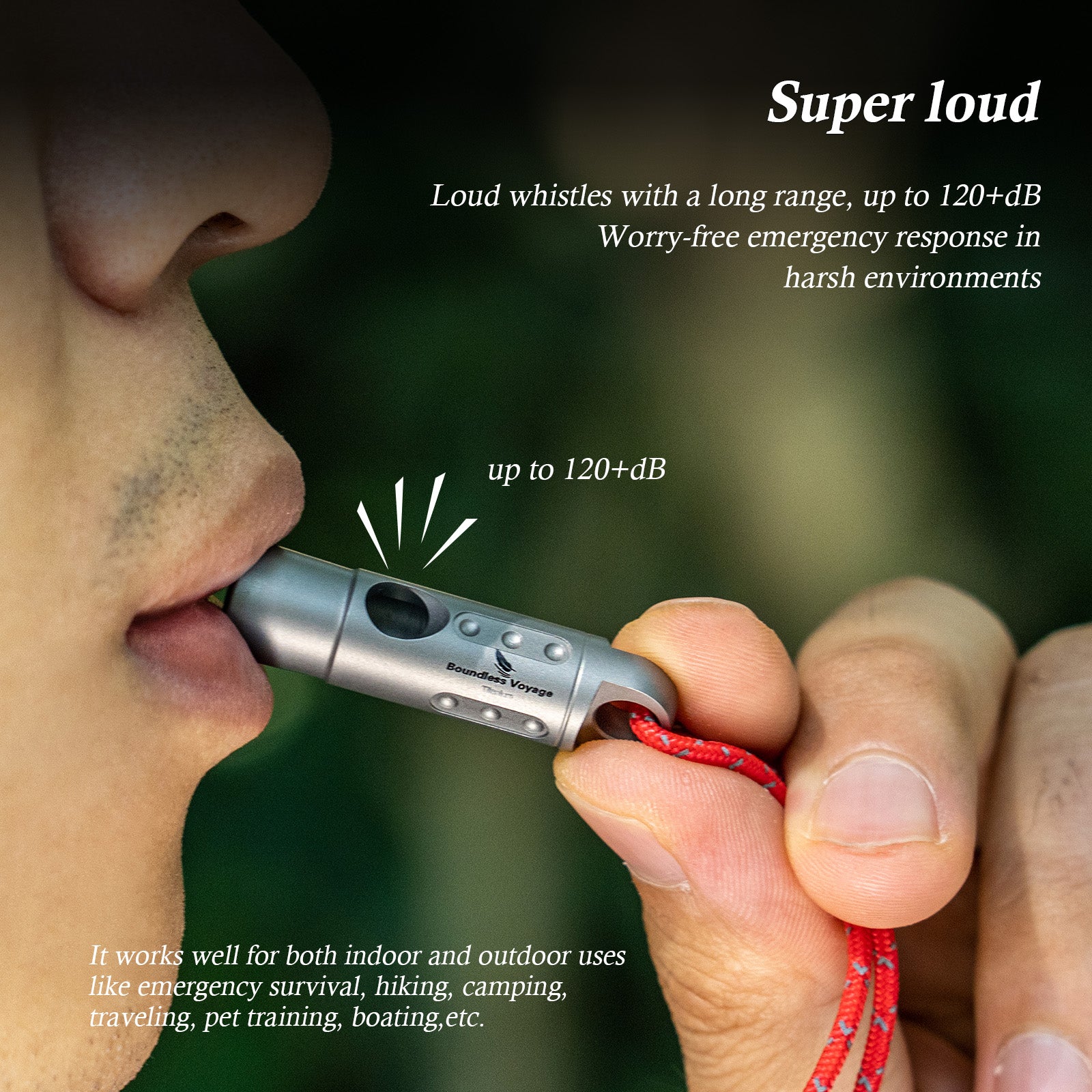 【Premium Material】Made of high quality Titanium. The waterproof, anti-corrosion material enable the whistle more durable and resistant to various complex environments.