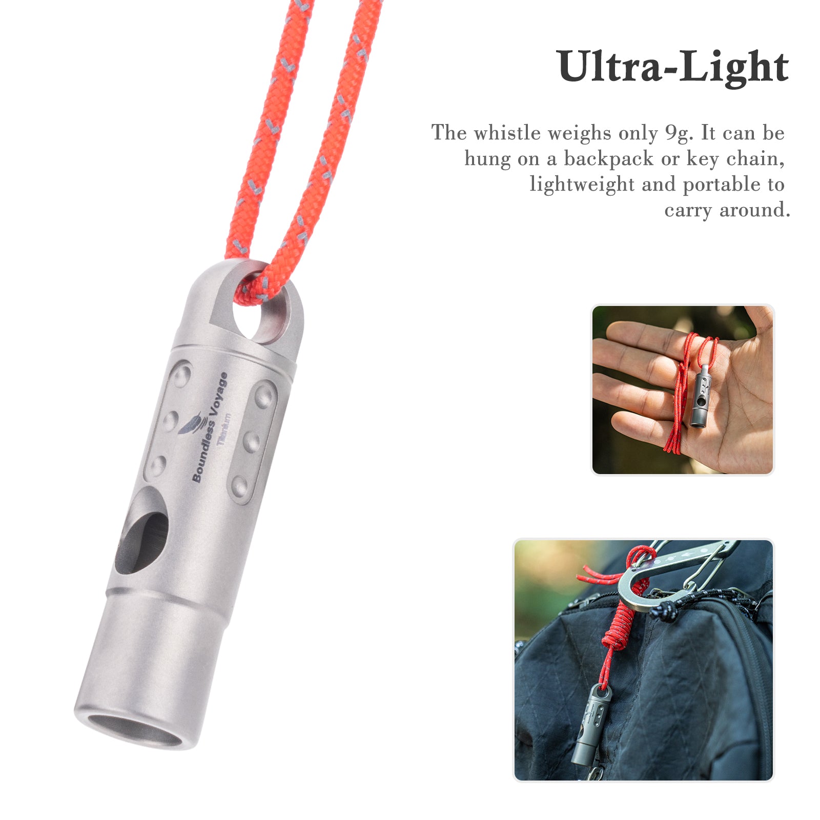 【Ultra-Light】The whistle weighs only 9g. It can be hung on a backpack or key chain, lightweight and portable to carry around.