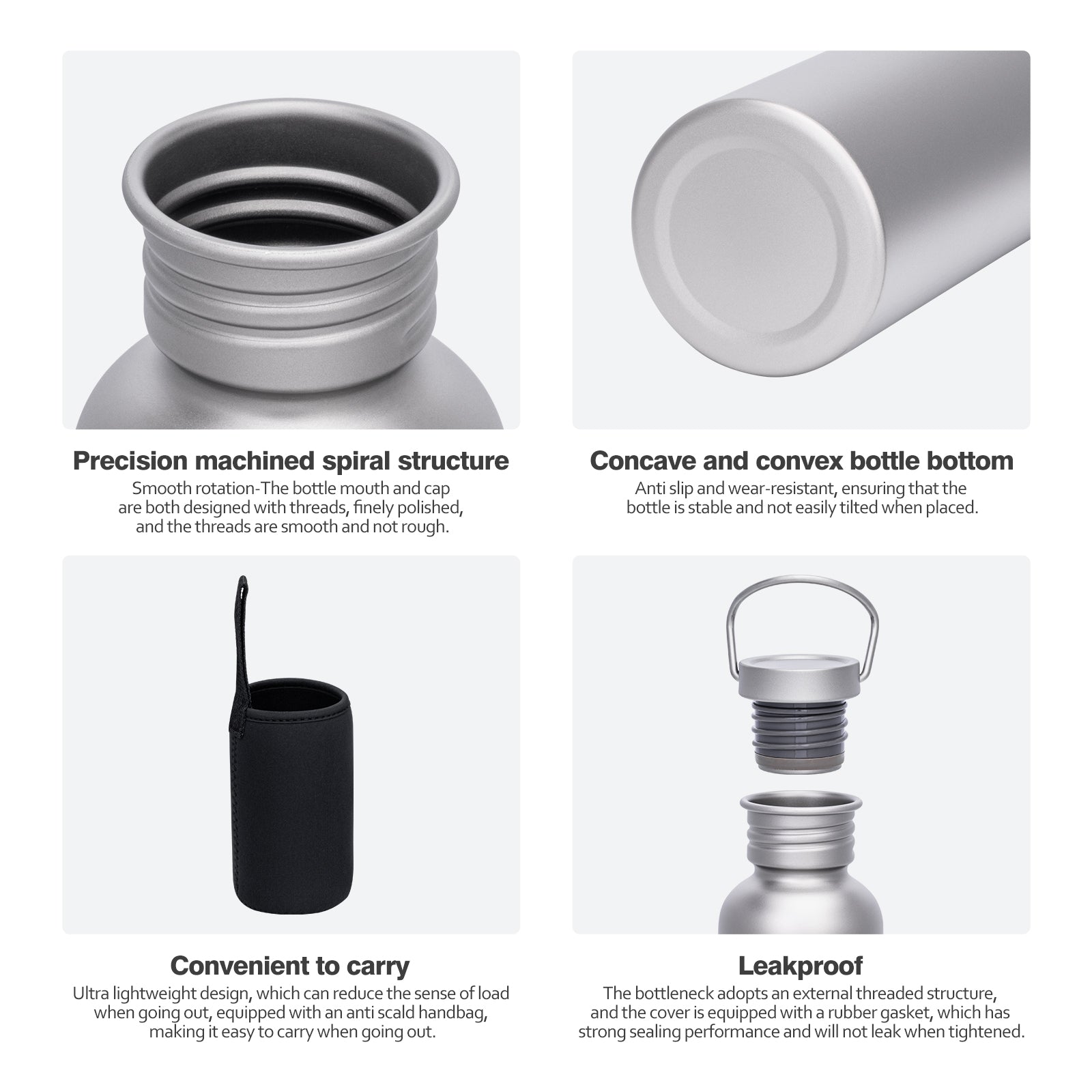 Boundless Voyage Titanium Water Bottle with Lid Wide Mouth Leak-Proof Reusable Sport Drinking Bottle for Camping Hiking Picnic Climbing Running Tea Coffee