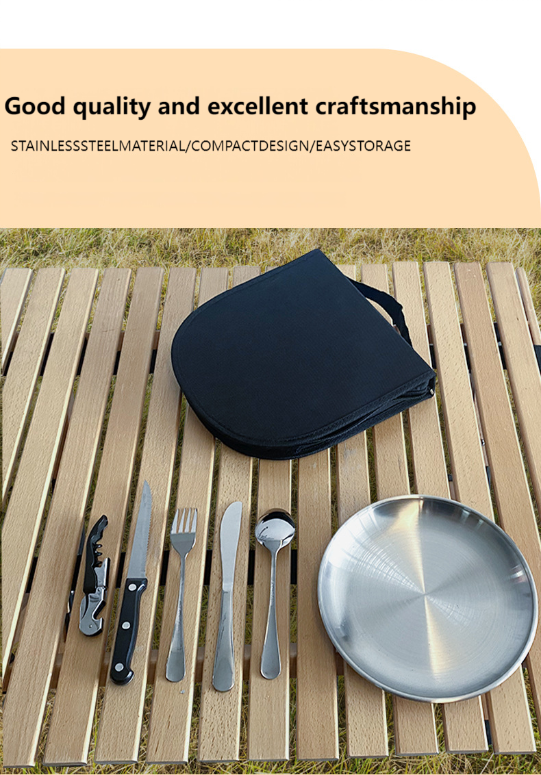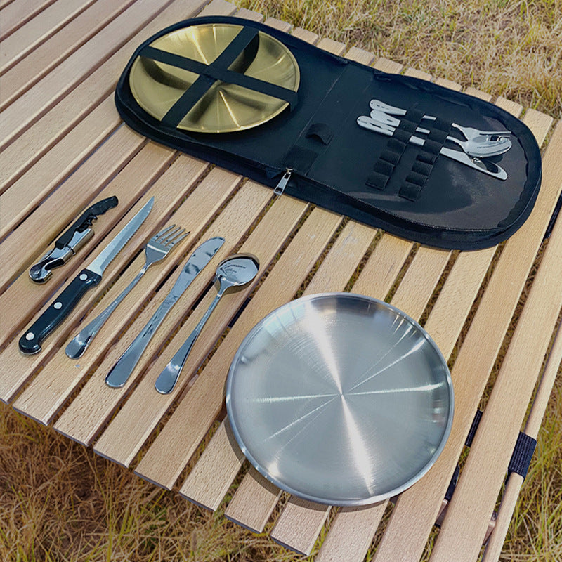 Outdoor Camping Picnic Cookware Bag – Portable Stainless Steel Tableware Organizer for Hiking & Travel