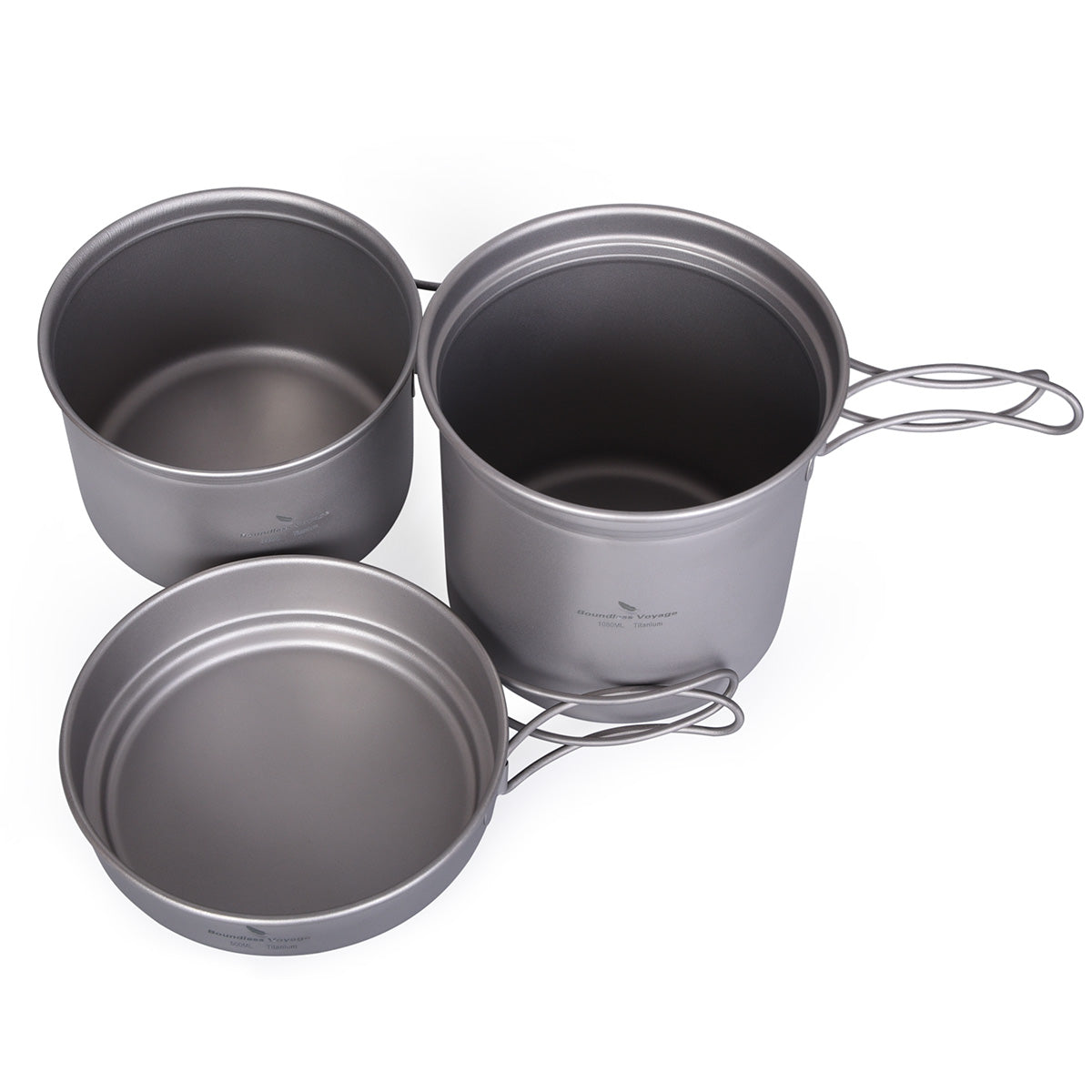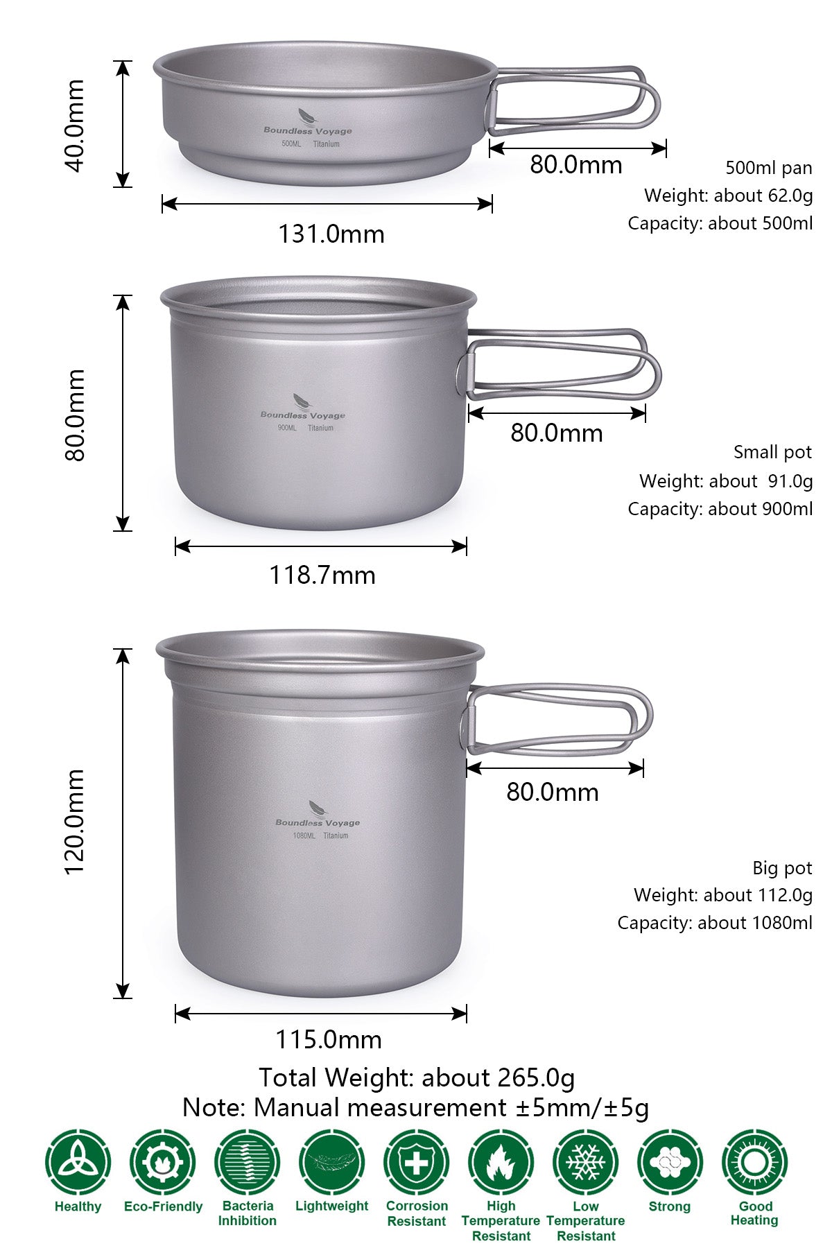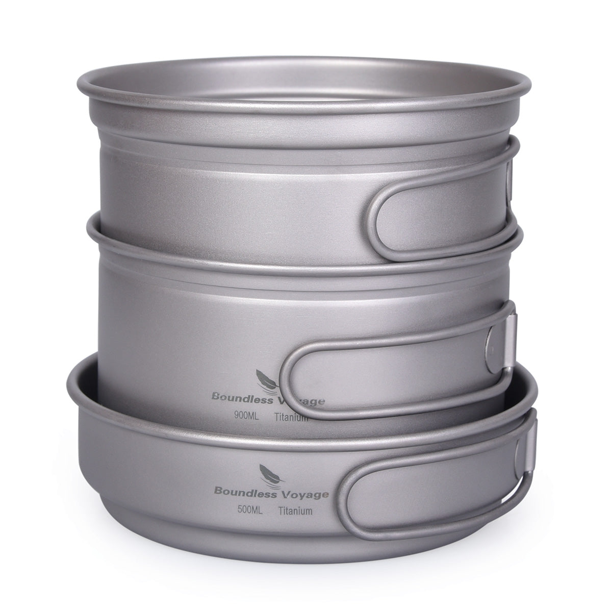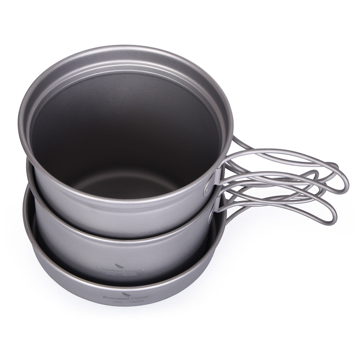 Titanium Pot Pan Set with Folding Handle Outdoor Camping Frying Pan