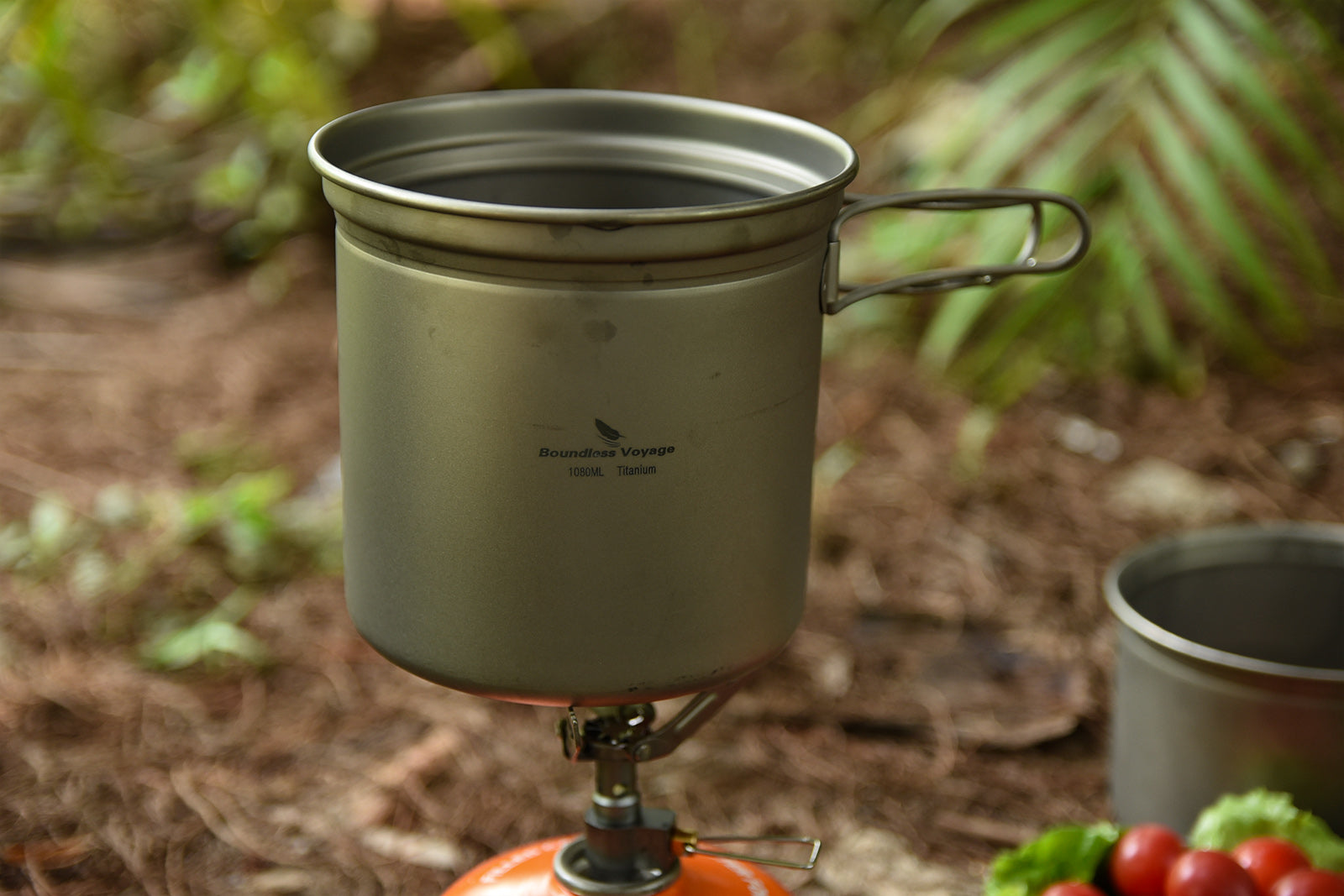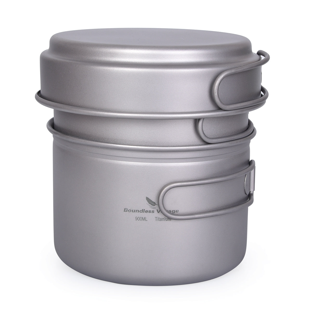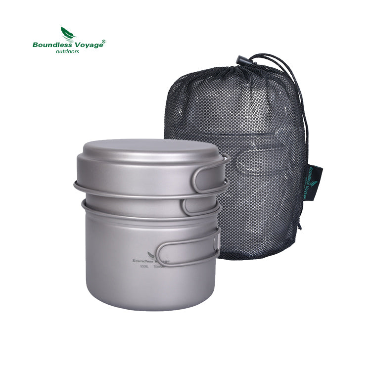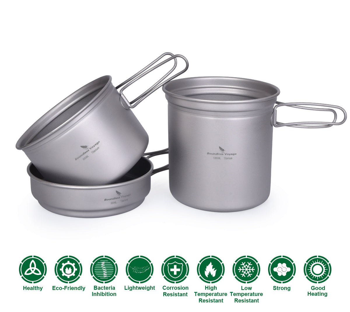Titanium Pot Pan Set with Folding Handle Outdoor Camping Frying Pan