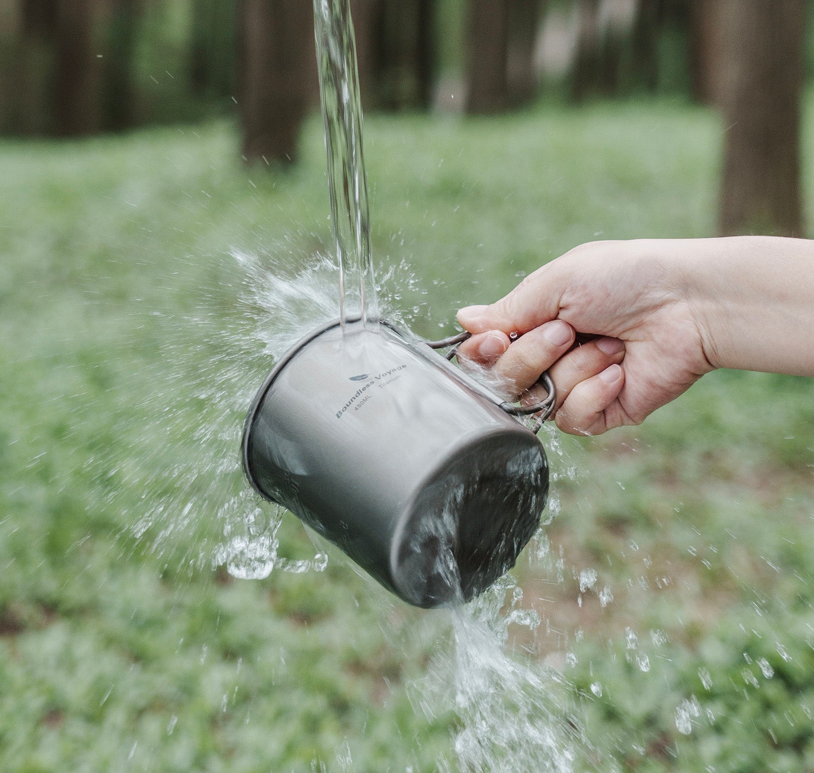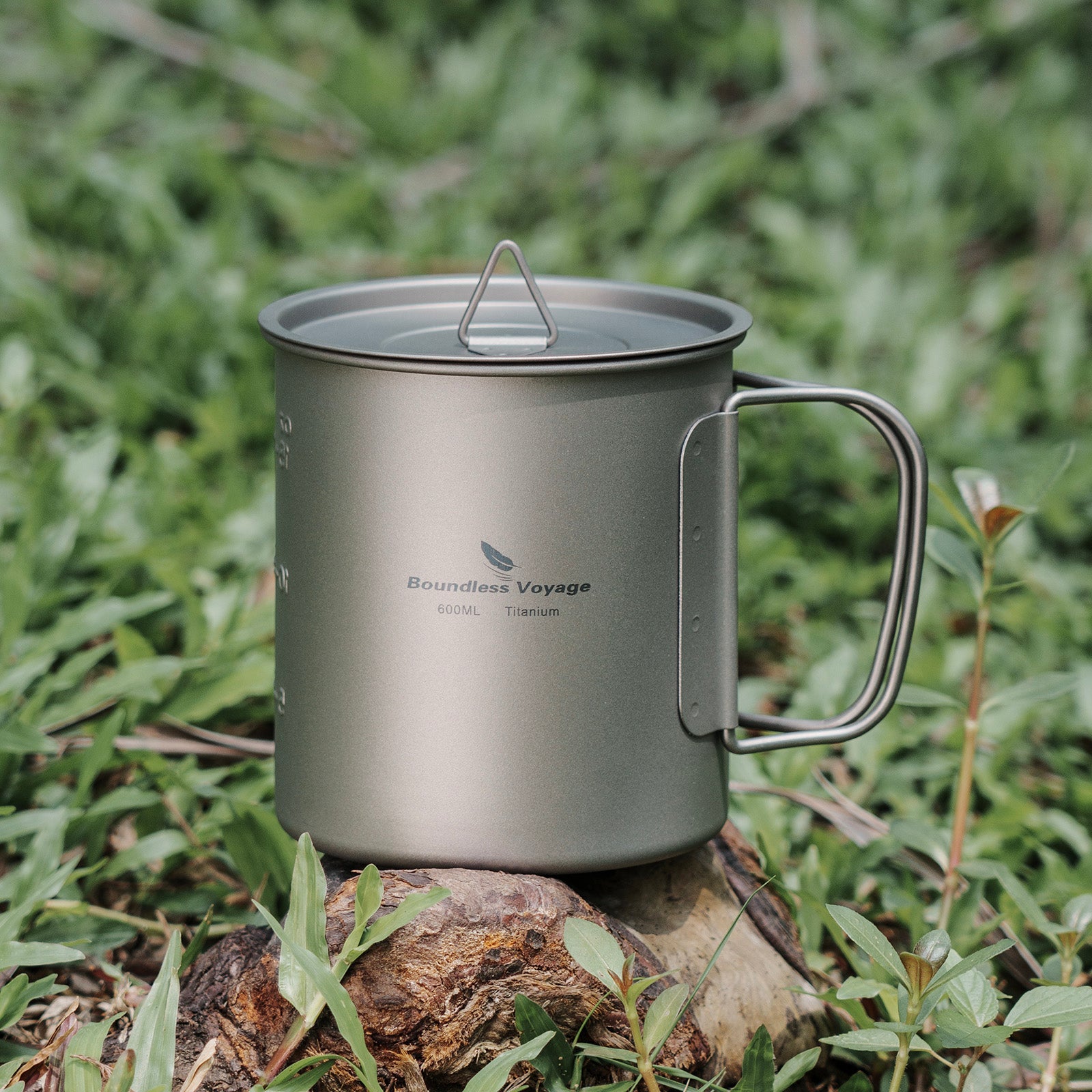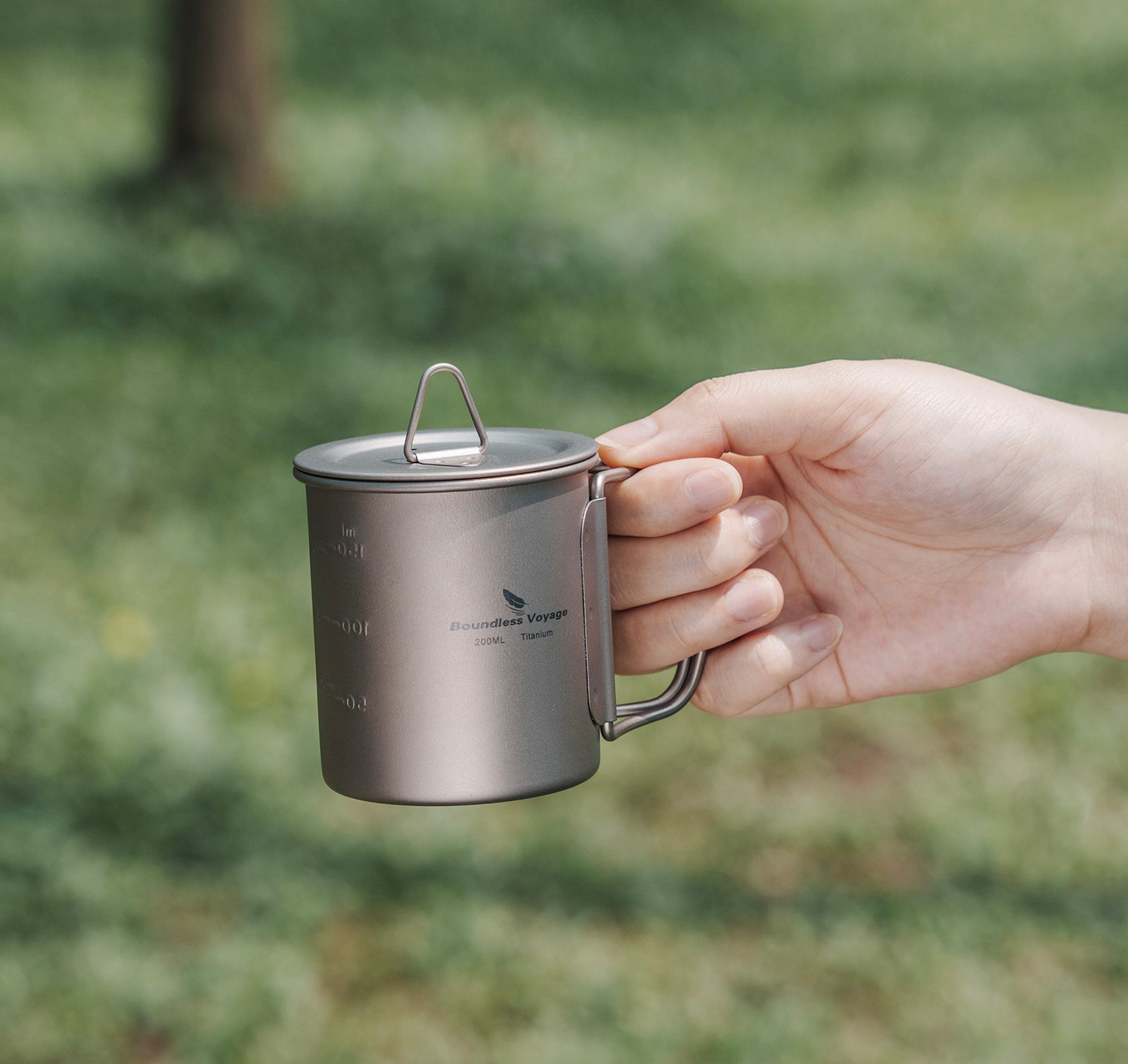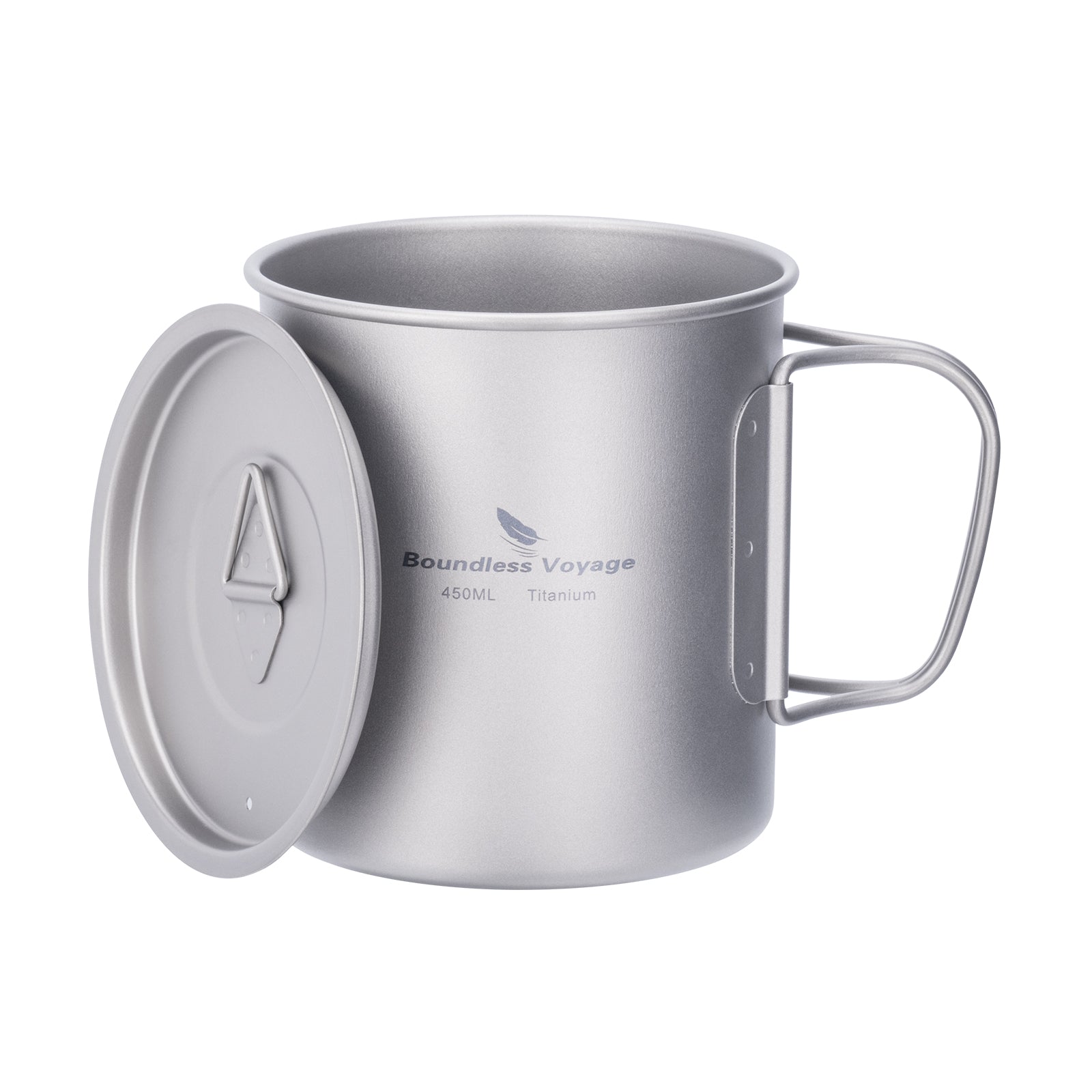 Unlimited Voyage 450ml Titanium Alloy Cup with Lid and Folding Handle for Outdoor Camping Ultra-Light Water Tea and Coffee Cup