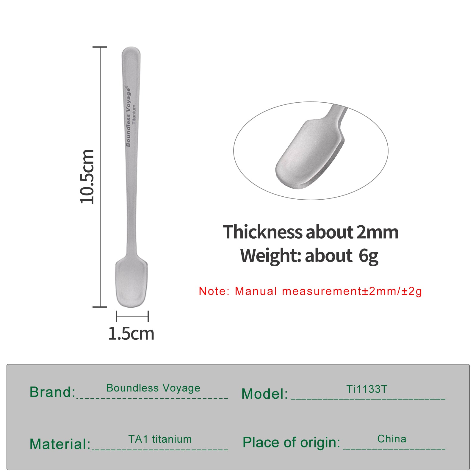 Boundless Voyage Pure Titanium Mini Coffee Spoon – Ultralight Rust-Free Espresso Spoon for Home, Travel & Camping
