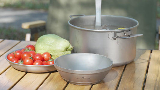 Boundless Voyage Titanium Bowl & Pan Set – Ultralight 5-Piece Camping Tableware Kit for Backpacking, Hiking & Outdoor Dining