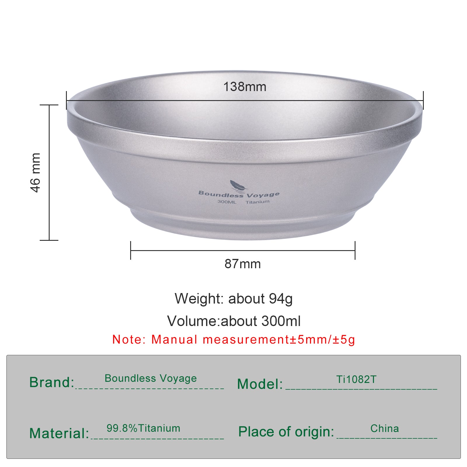 Boundless Voyage Titanium Double-Wall Bowl 300ml | Ultralight Insulated Camping Bowl | Portable Outdoor Food Bowl for Backpacking & Travel