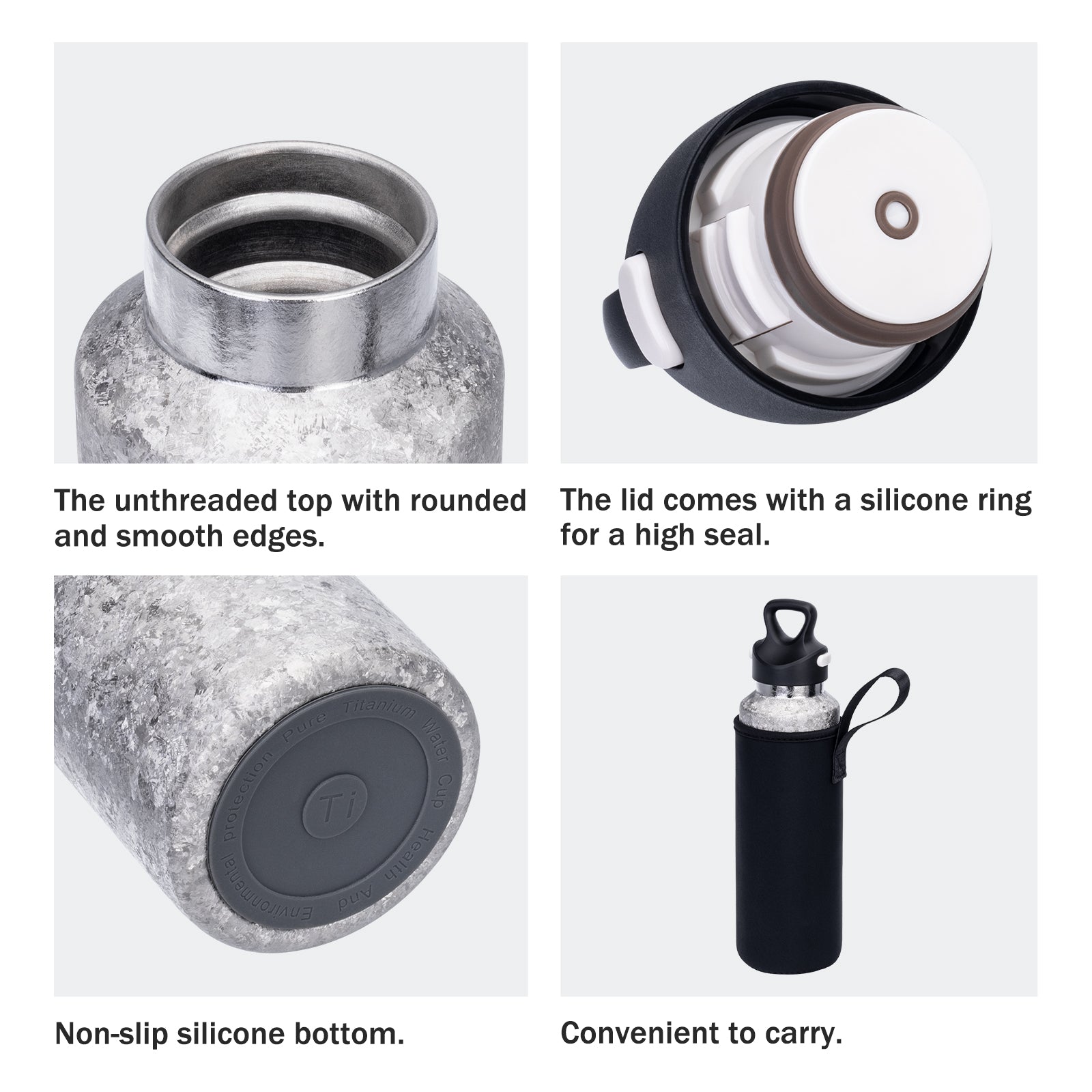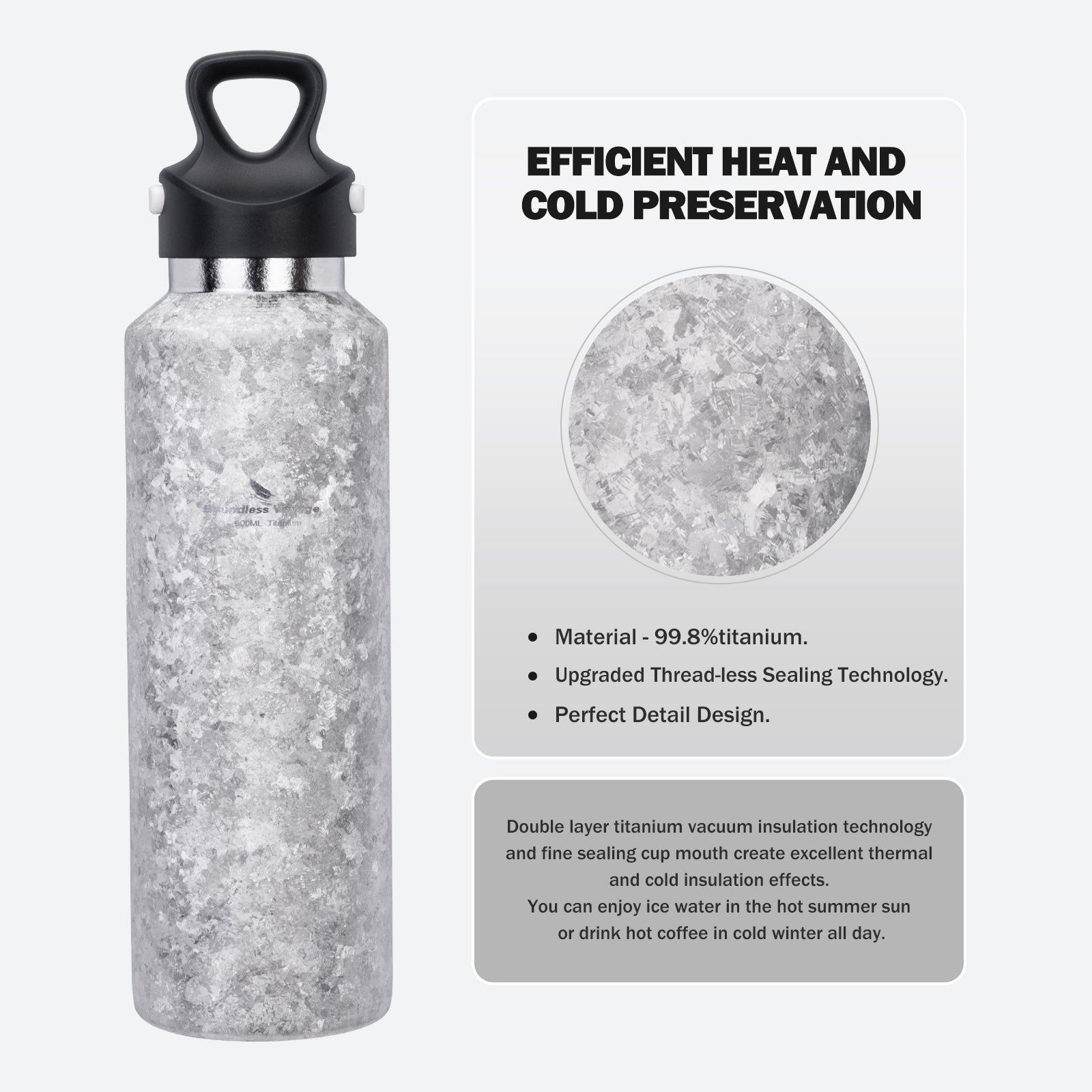 EFFICIENT HEAT AND COLD PRESERVATION - The inner and outer layers of this bottle are 99.8% titanium and the middle is a vacuum layer. Double layer titanium vacuum insulation technology and fine sealing cup mouth create excellent thermal and cold insulation effects. you can enjoy ice water in the hot summer sun or drink hot coffee in cold winter all day.