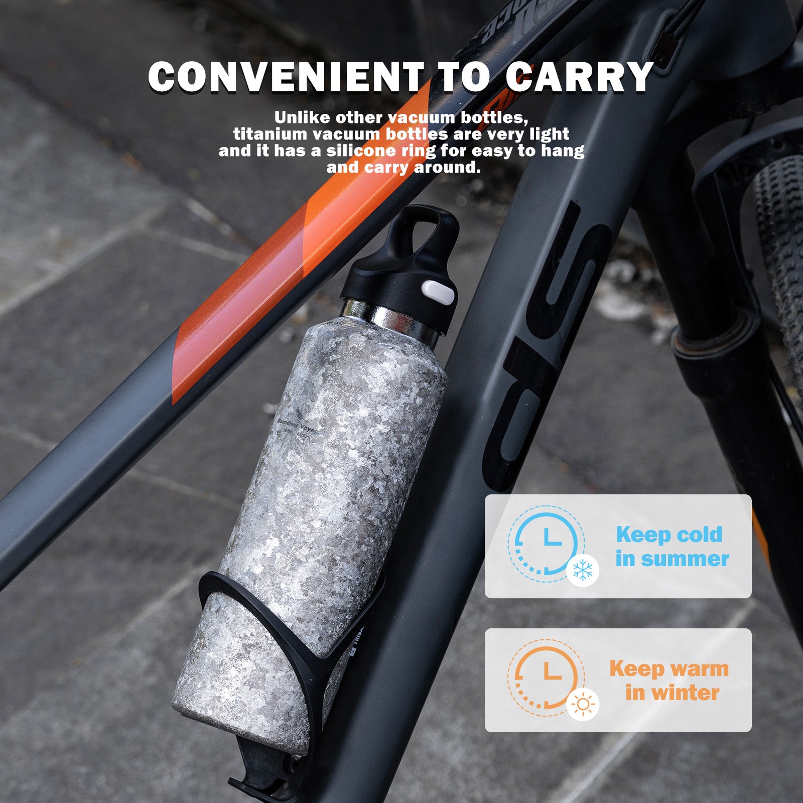 CONVENIENT TO CARRY - Unlike other vacuum bottles, titanium vacuum bottles are very light and it has a silicone ring for easy to hang and carry around. Perfect for school, work, travel and all sports & outdoor activities such as hiking, bicycling, camping, etc. Ideal for water, tea, coffee, carbonated drinks, wine and beer.
