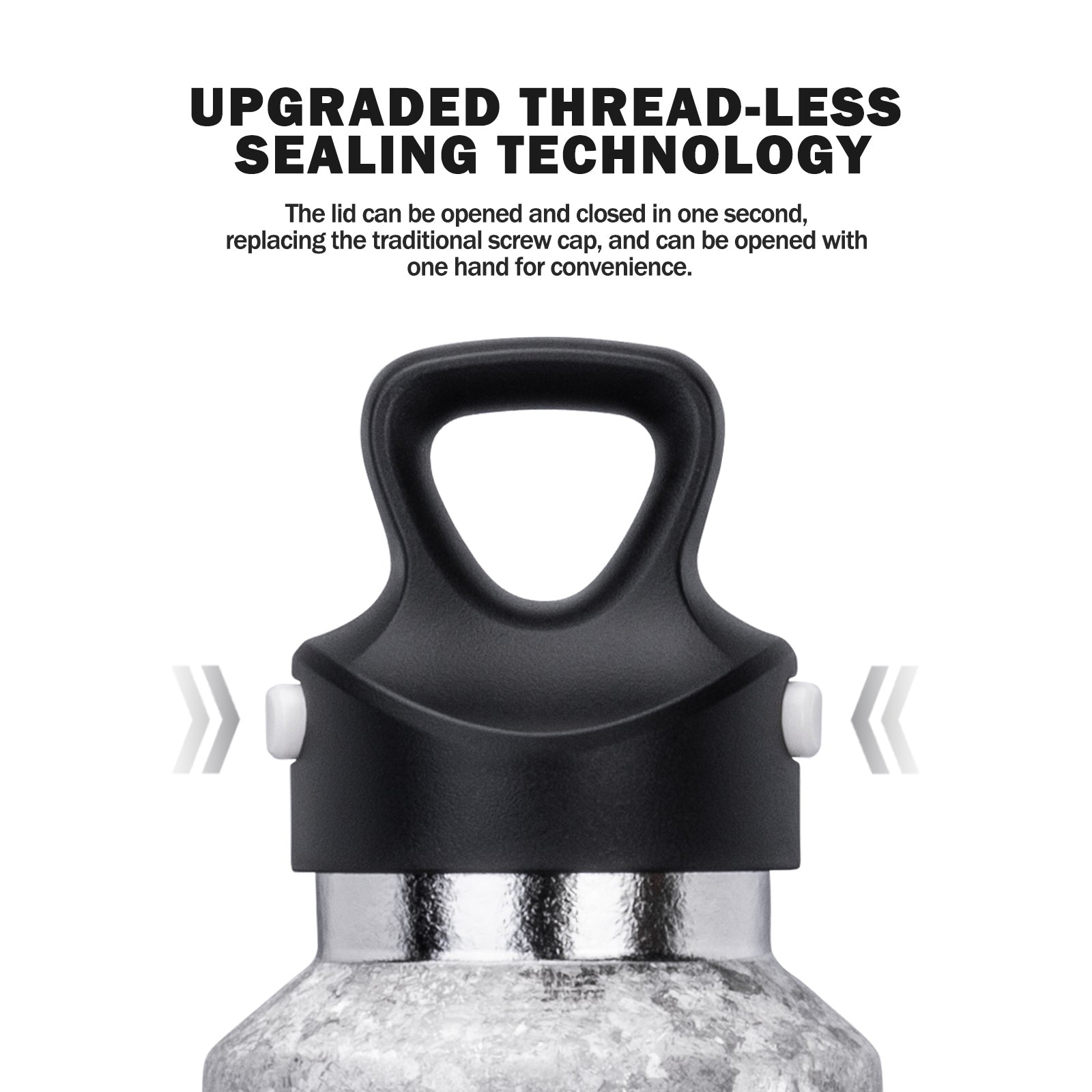 Upgraded Thread-less Sealing Technology - The lid can be opened and closed in one second, replacing the traditional screw cap, and can be opened with one hand for convenience.