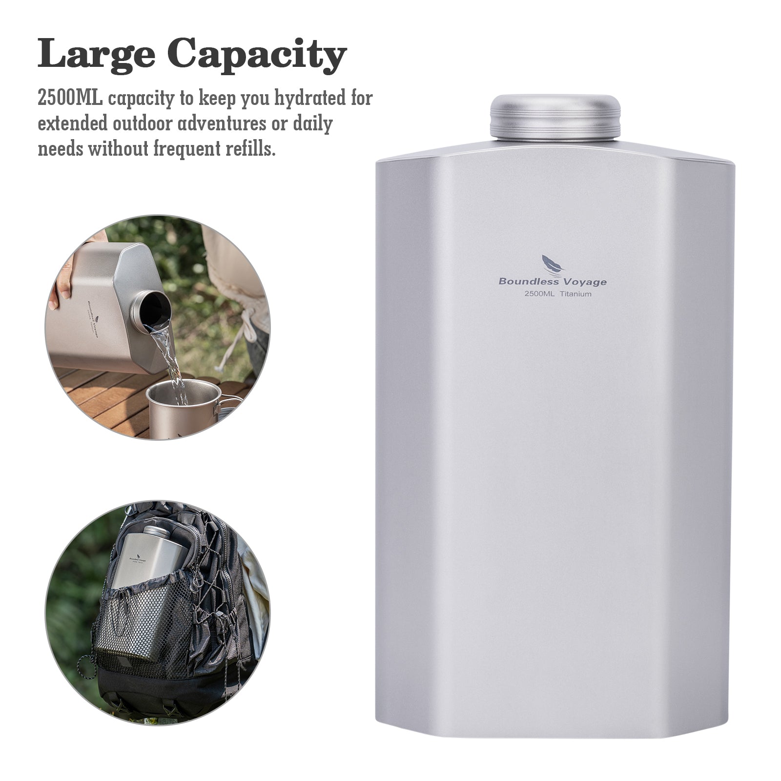 2500ML capacity to keep you hydrated for extended outdoor adventures or daily needs without frequent refills.
