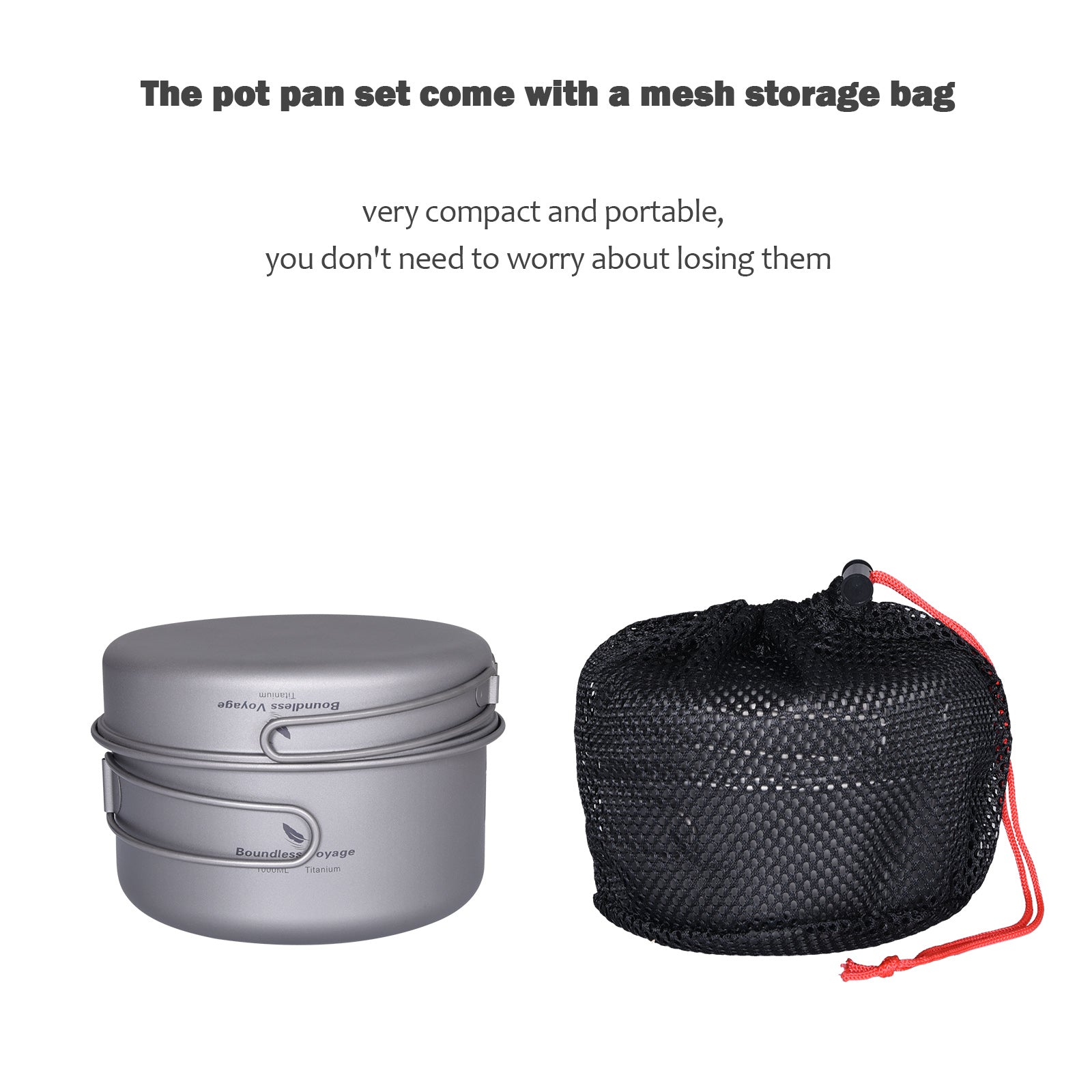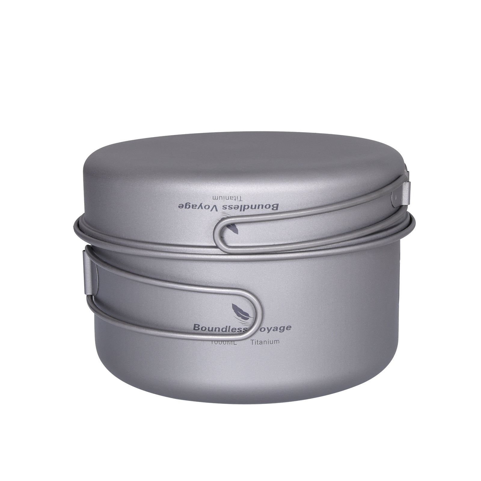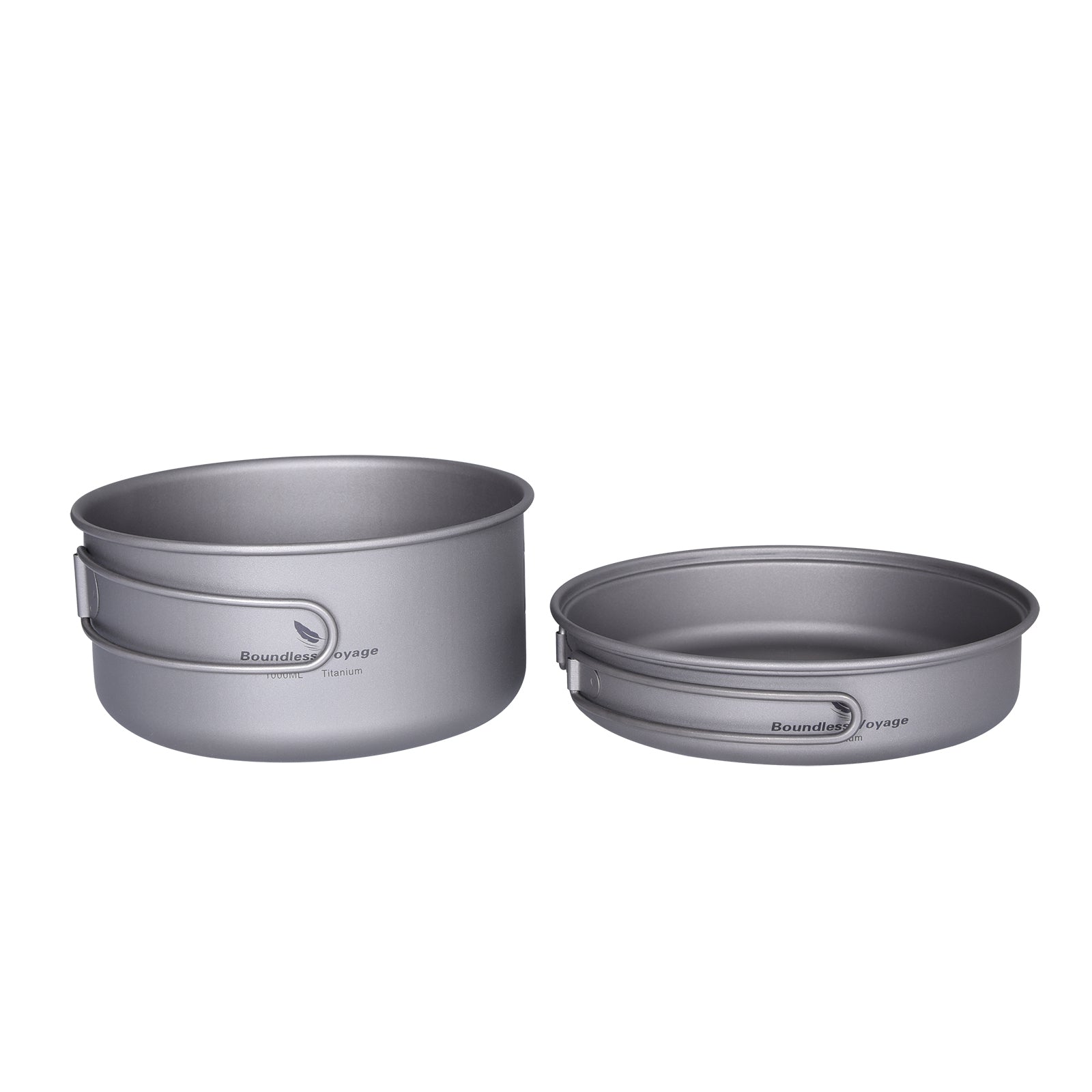 Boundless Voyage TA1 Titanium Pot & Pan Set 500ml + 1000ml with Lid – Ultralight Camping Cookware with Folding Handles for Hiking, Picnic & Outdoor Cooking