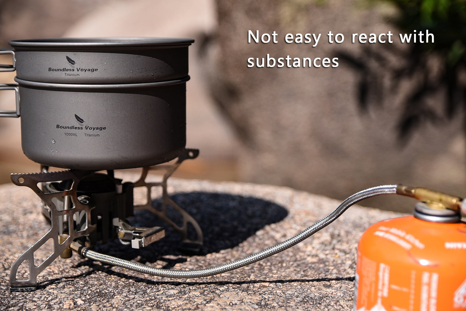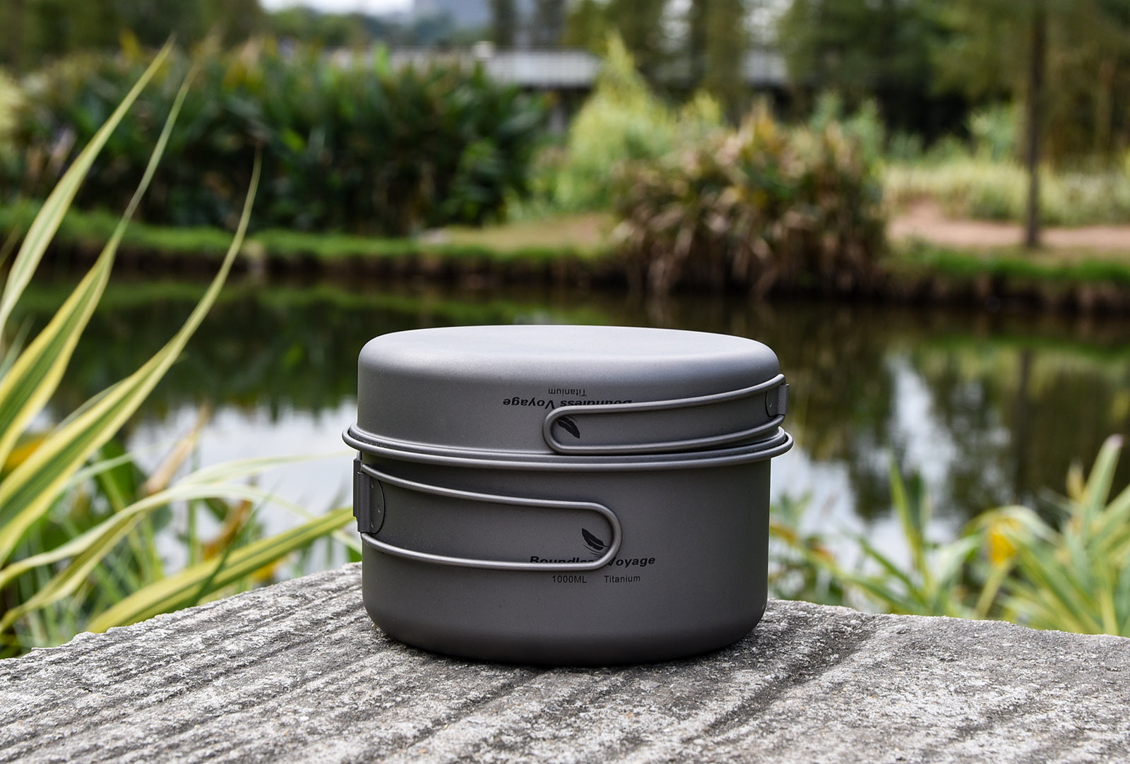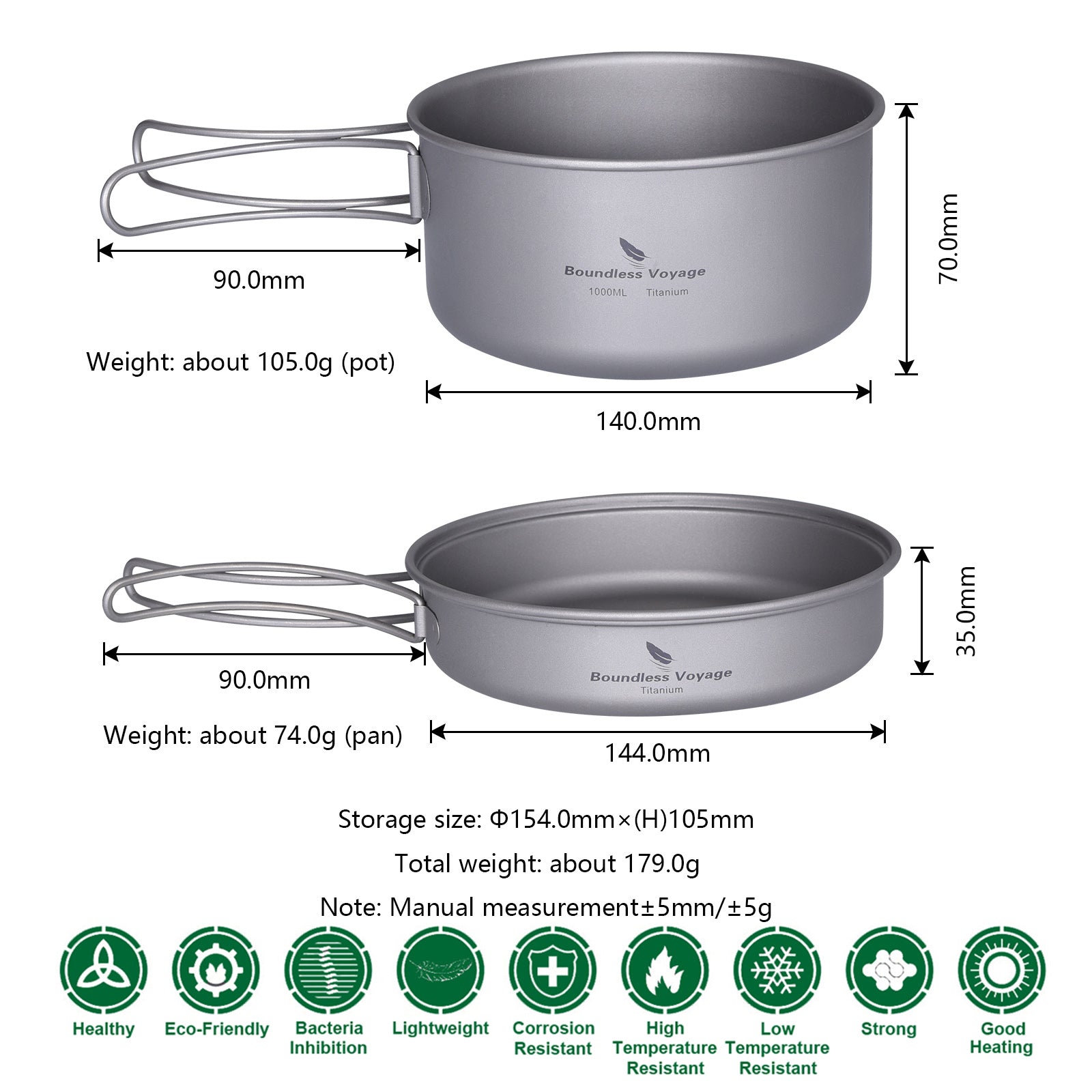 Boundless Voyage TA1 Titanium Pot & Pan Set 500ml + 1000ml with Lid – Ultralight Camping Cookware with Folding Handles for Hiking, Picnic & Outdoor Cooking