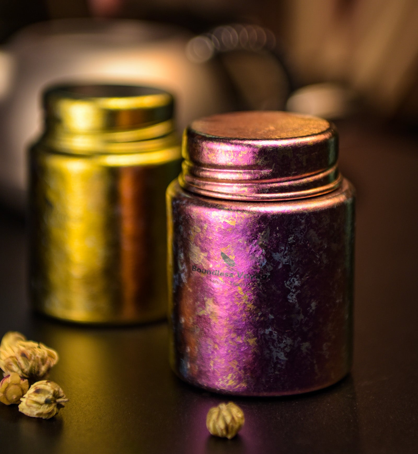 Boundless Voage Titanium Tea Canister Mini Tea Canister Ultralight Portable Tin Can Tea Coffee Spice Canister Colored Ice Flower Craft Tin Storage Container