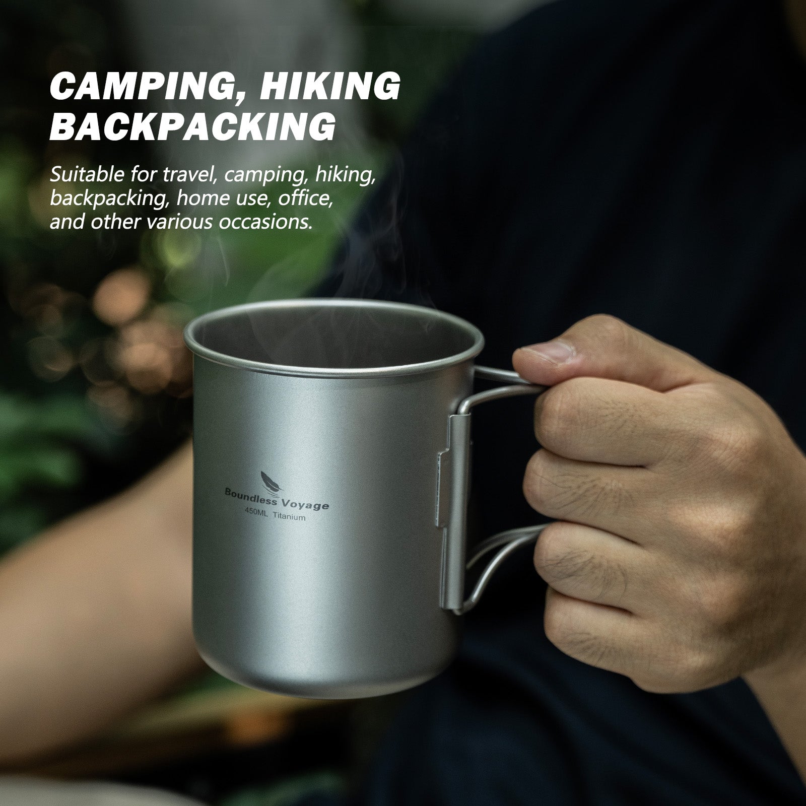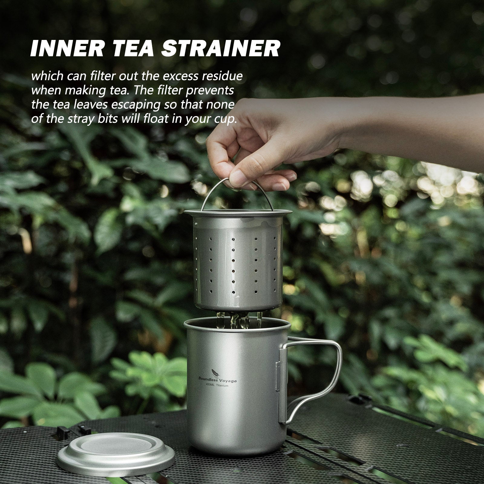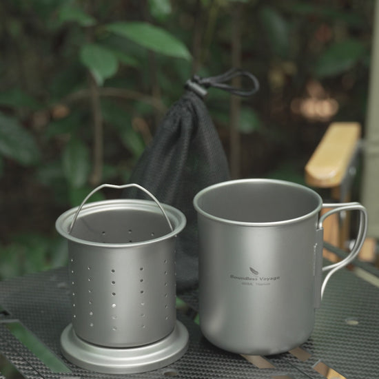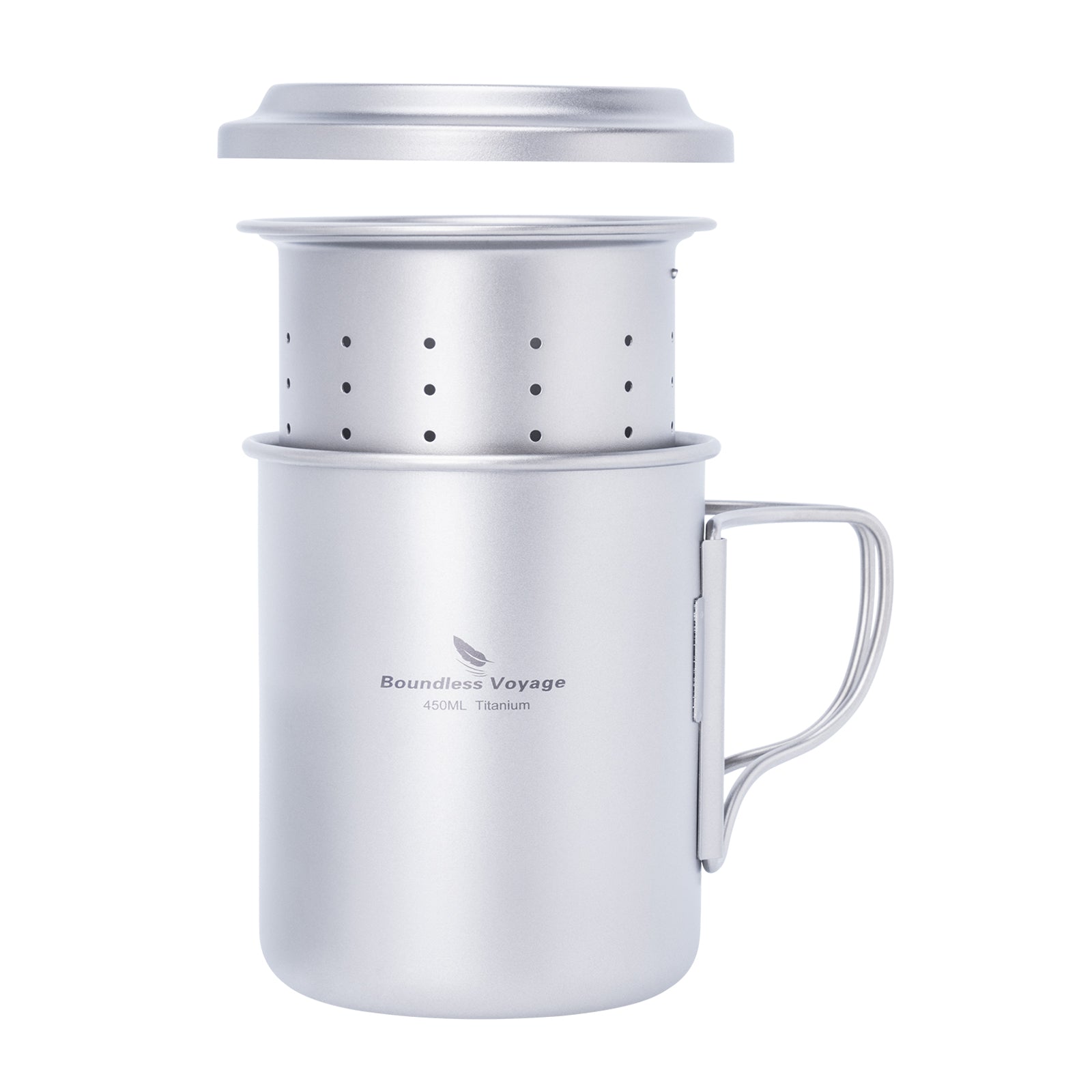 Boundless Voyage 450ml Titanium Cup with Filter Folding Handles Outdoor Camping Ti Tea Coffee Mug 15.2 fl oz Portable Lightweight Tea Maker Can Be Heated